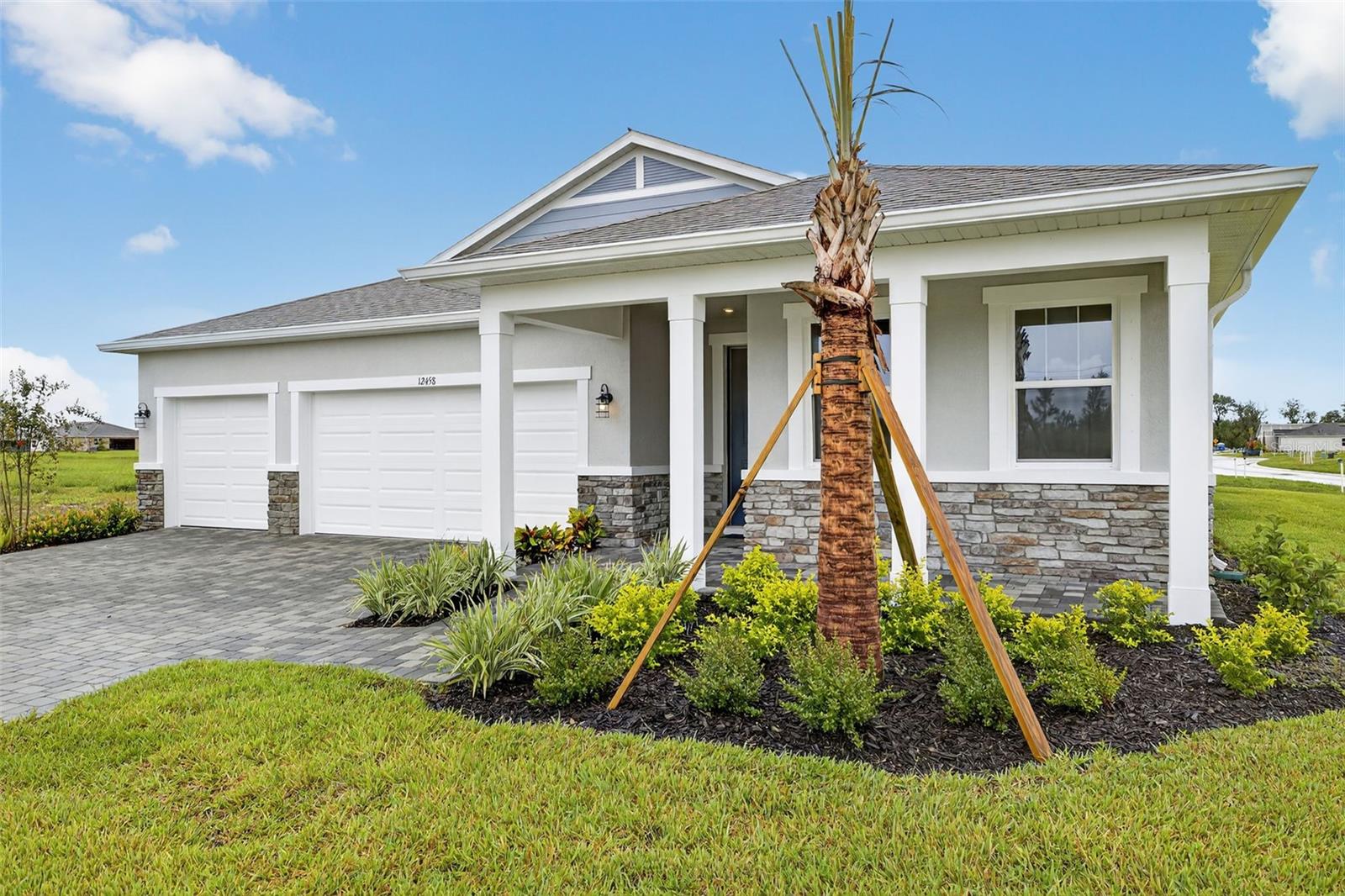Under Construction. Welcome to the Isle Royal Coastal Elevation, a luxurious home situated in the gated community of Windwater in Parrish, FL. This stunning property offers 2,867 square feet of meticulously designed living space, featuring 4 bedrooms, 3.5 bathrooms, a retreat, and a 3-car garage. Upon entering, you will be captivated by the open floor plan and the elegant design. The main living areas are adorned with Adamo 12x24 staggered wood-look tile flooring, providing a warm and stylish ambiance. The kitchen is a chef's dream, showcasing 42" Barnett Painted Lined cabinets and pristine New Carrara Marmi quartz countertops, perfect for culinary creations and entertaining and all appliances are included. The master suite is a private oasis, featuring a spacious bedroom and an en-suite bathroom with separate vanities and a separate shower. The additional bedrooms are generously sized, ensuring comfort and privacy. Outdoor living is truly exceptional with the screened in covered lanai, equipped with sliding glass doors that seamlessly blend indoor and outdoor spaces on a corner home site. This area is perfect for entertaining or simply relaxing while enjoying the beautiful Florida weather. Windwater is known for its serene ambiance and prime location. Residents have convenient access to schools, scenic parks, and a variety of shopping and dining options. The community's proximity to Tampa and Sarasota ensures you are never far from urban amenities and entertainment. Estimated completion April/May 2025. Photos, renderings and plans are for illustrative purposes only and should never be relied upon and may vary from the actual home. Pricing, dimensions and features can change at any time without notice or obligation. The photos are from a furnished model home and not the home offered for sale.