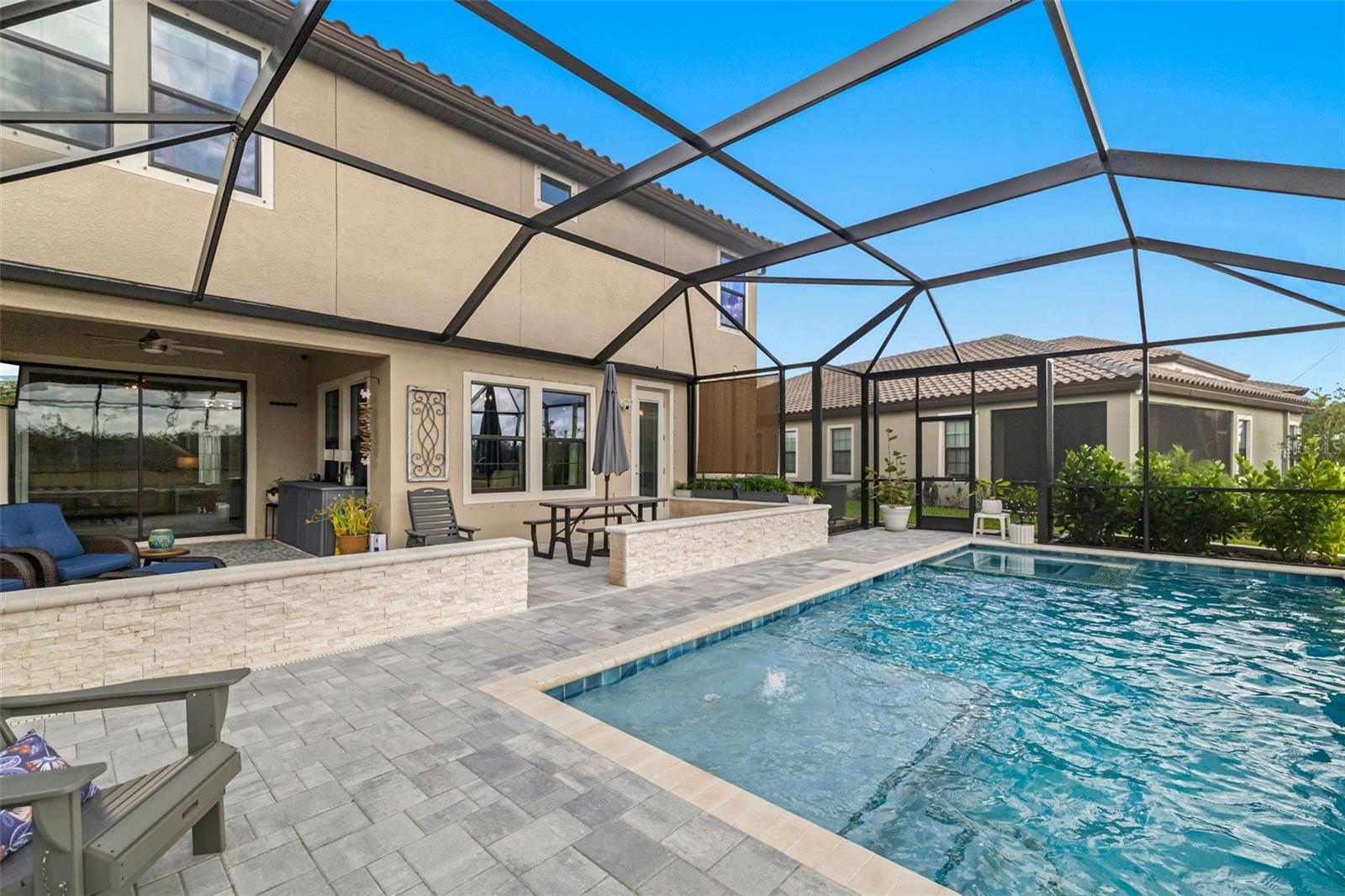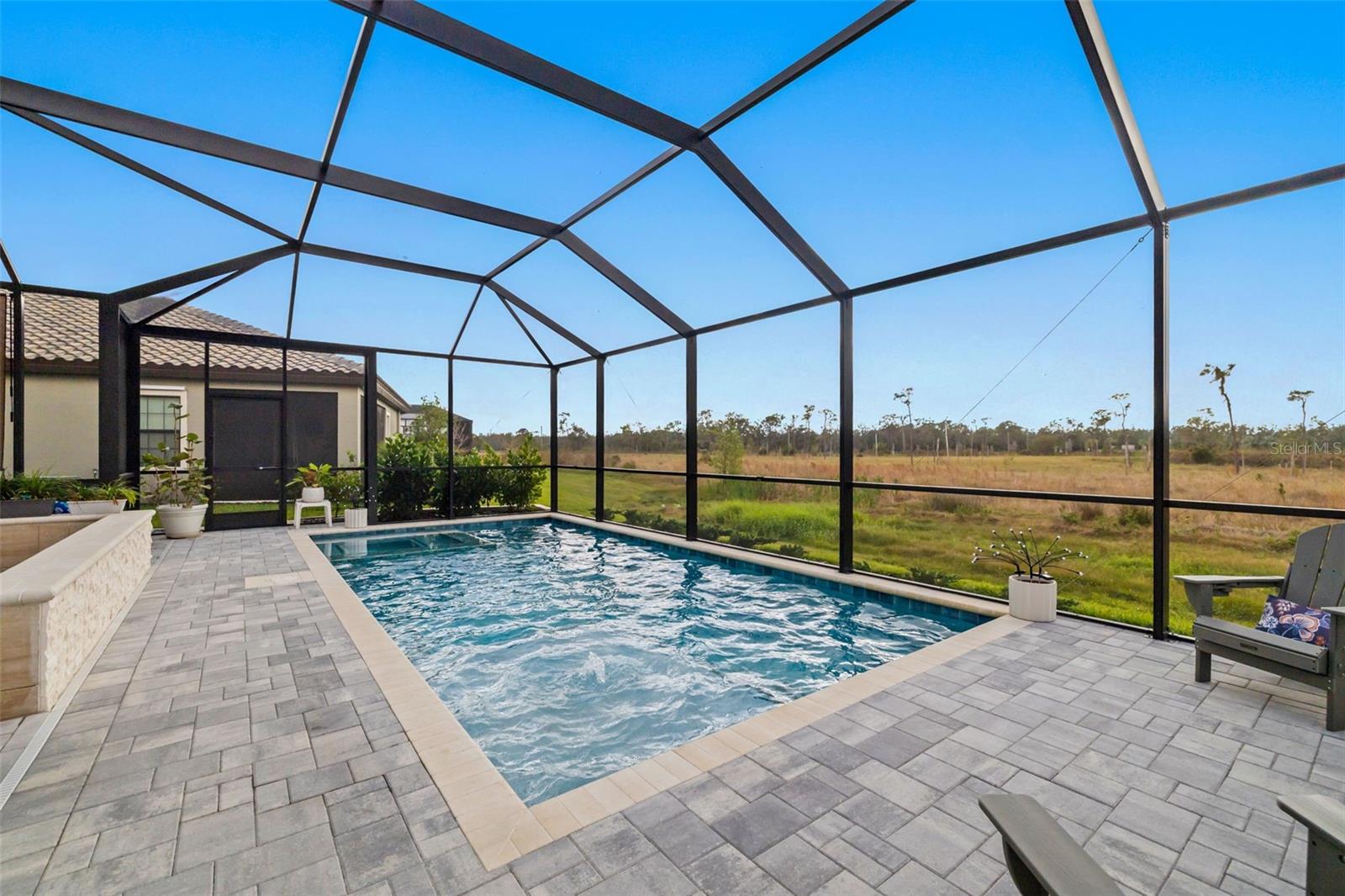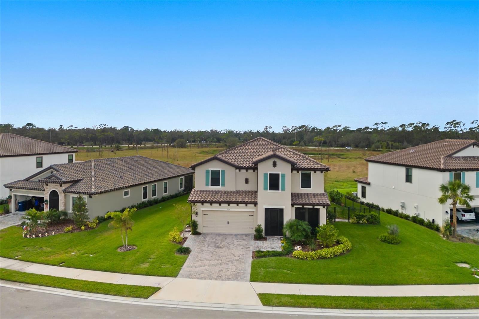 Stunning 2023 Luxury Home with Resort-Style Pool and Conservation Views. Discover unparalleled luxury in this meticulously crafted 5-bedroom, 3-bathroom home, complete with a dedicated office, expansive bonus room, and nearly 3,400 sq. ft. of living space. Located in the prestigious Crosswind Ranch community, this home offers a perfect blend of elegance, functionality, and modern upgrades. Spacious 5 bedrooms, including a luxurious owner’s retreat with sitting area, oversized walk-in closet, and an elegant ensuite bath featuring a custom vanity, shower enclosure, and separate water closet. The open-concept design includes a grand living room, dining area, and an incredible island kitchen, all with seamless access to the outdoor lanai. Beautiful Ventura Sand wood tile flooring (7"x22") graces the main living areas, adding warmth and sophistication. Gourmet kitchen boasting Kinsdale Maple Slate cabinets with crown molding, Snow Flurry Quartz countertops, subway tile backsplash, undermount lighting, gas range, walk-in pantry, and premium appliances. Custom landscaping, fencing, paver installations, screen enclosures, updated lighting, custom trim, cellular shades, vertiglide shade, and ceiling fans throughout. The crown jewel of this property is the recently completed (2024) custom swimming pool and Jacuzzi. Surrounded by an oversized lanai and overlooking serene conservation views, it’s the ideal space for entertaining or relaxing while soaking in breathtaking Florida sunsets. Additional highlights include 3-car garage with ample storage, front porch overlooking a tranquil pond and lower-level guest suite with pool access. Perfectly situated, Crosswind Ranch offers easy access to major hubs: 30 minutes to downtown St. Petersburg and Sarasota, 40 minutes to downtown Tampa. Exclusive community amenities currently available, include a pool, cabana, pocket parks, and scenic pond views. Future amenities coming soon to Crosswind Ranch to include Pickleball and more. This home is a testament to pride of ownership and offers the ultimate in luxury living. Don’t miss your chance to own this spectacular property in the heart of Parrish!
