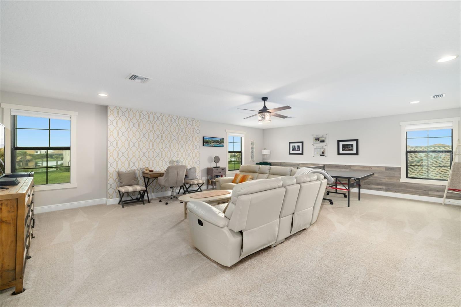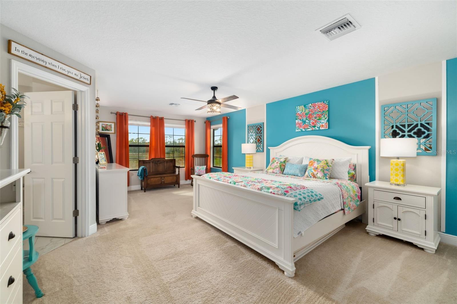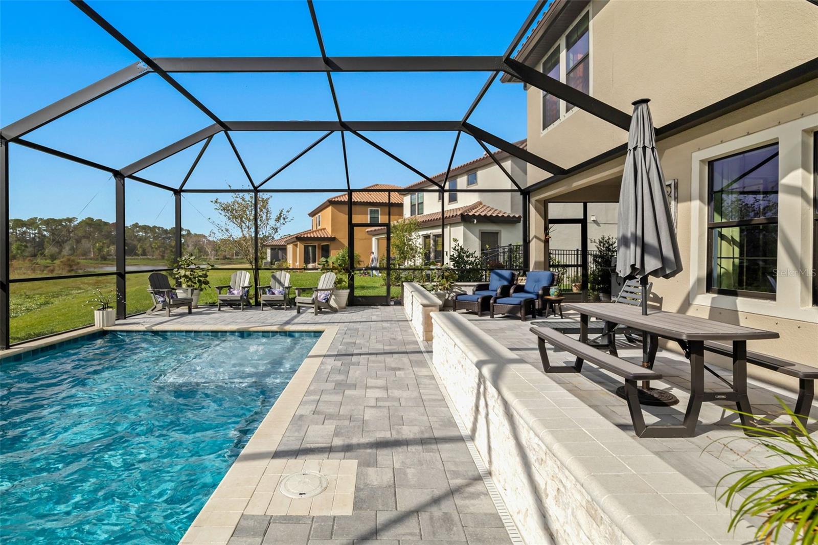 Stunning 2023 Luxury Home with Resort-Style Pool and Conservation Views. Discover unparalleled luxury in this meticulously crafted 5-bedroom, 3-bathroom home, complete with a dedicated office, expansive bonus room, and nearly 3,400 sq. ft. of living space. Located in the prestigious Crosswind Ranch community, this home offers a perfect blend of elegance, functionality, and modern upgrades. Spacious 5 bedrooms, including a luxurious owner’s retreat with sitting area, oversized walk-in closet, and an elegant ensuite bath featuring a custom vanity, shower enclosure, and separate water closet. The open-concept design includes a grand living room, dining area, and an incredible island kitchen, all with seamless access to the outdoor lanai. Beautiful Ventura Sand wood tile flooring (7"x22") graces the main living areas, adding warmth and sophistication. Gourmet kitchen boasting Kinsdale Maple Slate cabinets with crown molding, Snow Flurry Quartz countertops, subway tile backsplash, undermount lighting, gas range, walk-in pantry, and premium appliances. Custom landscaping, fencing, paver installations, screen enclosures, updated lighting, custom trim, cellular shades, vertiglide shade, and ceiling fans throughout. The crown jewel of this property is the recently completed (2024) custom swimming pool and Jacuzzi. Surrounded by an oversized lanai and overlooking serene conservation views, it’s the ideal space for entertaining or relaxing while soaking in breathtaking Florida sunsets. Additional highlights include 3-car garage with ample storage, front porch overlooking a tranquil pond and lower-level guest suite with pool access. Perfectly situated, Crosswind Ranch offers easy access to major hubs: 30 minutes to downtown St. Petersburg and Sarasota, 40 minutes to downtown Tampa. Exclusive community amenities currently available, include a pool, cabana, pocket parks, and scenic pond views. Future amenities coming soon to Crosswind Ranch to include Pickleball and more. This home is a testament to pride of ownership and offers the ultimate in luxury living. Don’t miss your chance to own this spectacular property in the heart of Parrish!