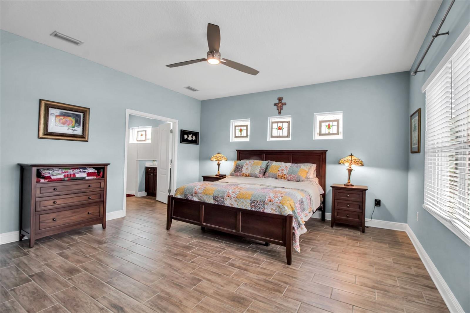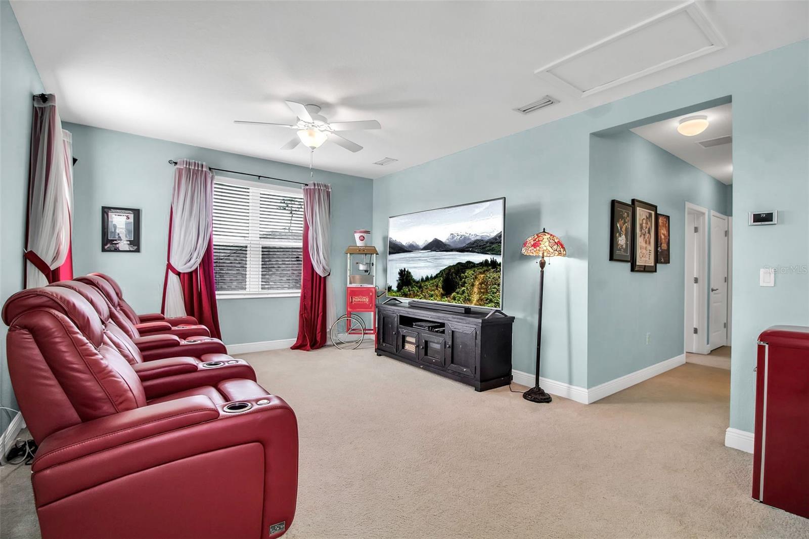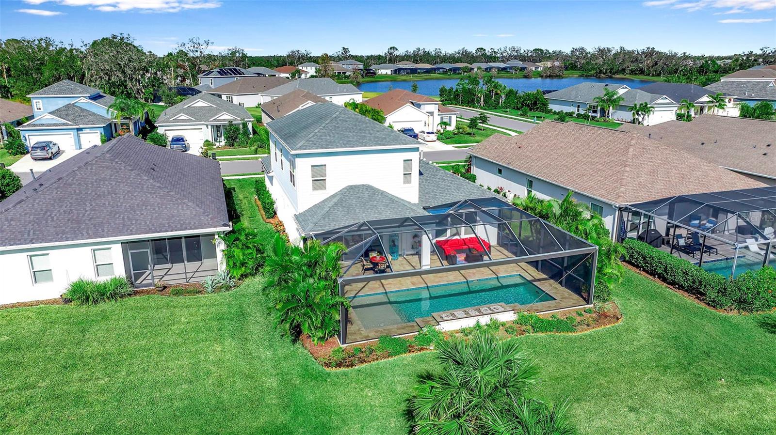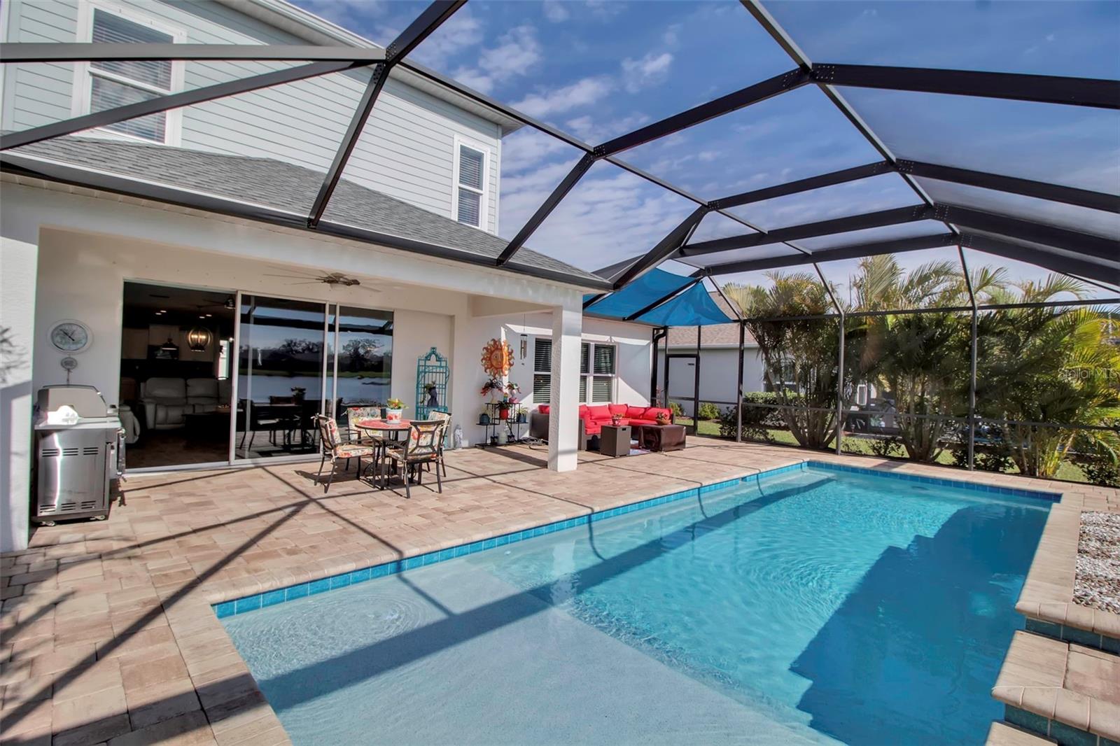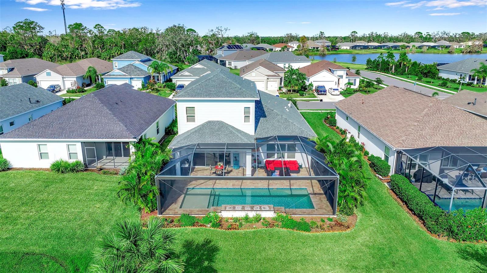 Dive into your own private oasis with this stunning heated pool home in the highly sought-after Silverleaf community in Parrish, FL! The pool features a panoramic screen overlooking a serene long view of a large pond, creating the perfect backdrop for relaxation or entertaining. The outdoor space is complete with a paver pool deck, covered lanai, and lush landscaping that enhances privacy and beauty. Inside, this meticulously maintained home offers a thoughtful layout designed for comfort and convenience. The owner’s suite is located on the first floor, providing privacy and ease of access. The gas kitchen is perfect for cooking enthusiasts, while the wood-look tile floors add elegance and durability throughout the main living areas. Upstairs, you’ll find a giant bonus room, currently set up as a private movie theater, ideal for family nights or entertaining guests. Two additional bedrooms share a Jack and Jill bathroom, making it a functional and versatile space. Living in Silverleaf means enjoying a vibrant community with a host of amenities, including a resort-style pool and hot tub, gym, basketball courts, walking trails, a playground, a BBQ pavilion, and two dog parks. This home comes fully equipped, with all appliances conveying, and has been meticulously maintained, ensuring a move-in-ready experience. Don’t miss the opportunity to own this incredible home in one of Parrish’s most desirable neighborhoods!