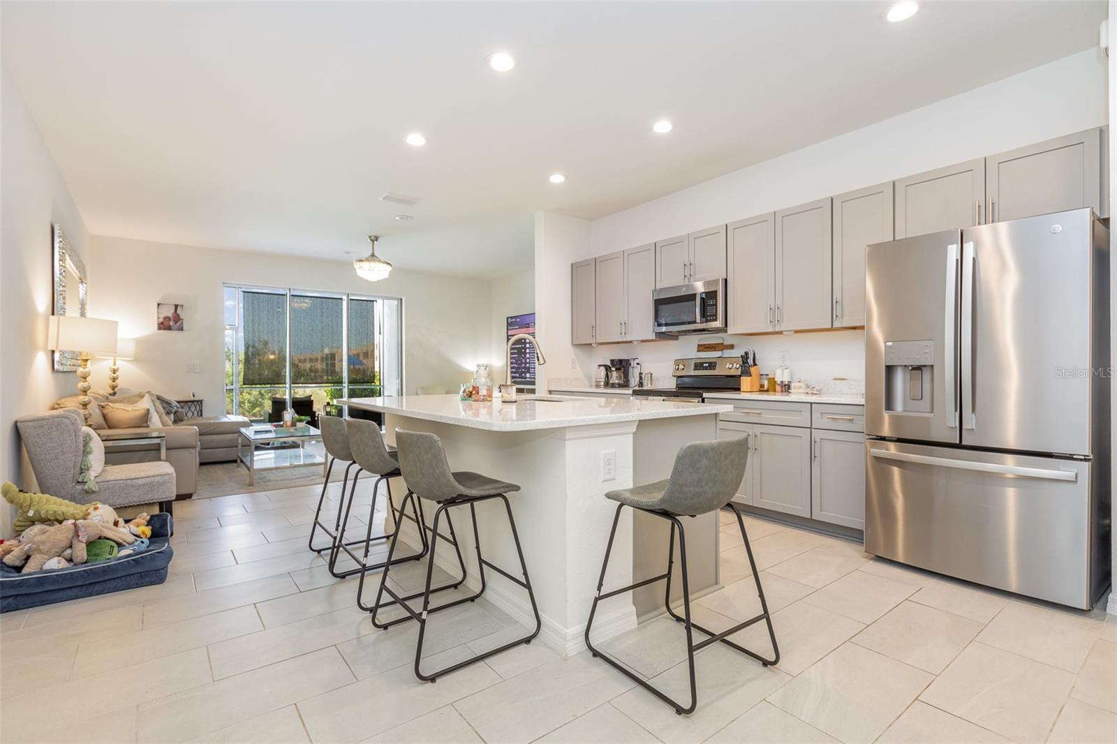 Discover modern living at its finest in this 2023-built town home nestled in the highly desirable North River Ranch community. Thoughtfully designed with contemporary finishes and a spacious layout, this home offers the perfect blend of style and comfort. The main level features an open-concept design where the kitchen, living, and dining areas have title floors and quartz counter tops flow seamlessly together. Glass sliding doors lead from the living room area to a screened-in lanai, creating an inviting indoor-outdoor living space. The kitchen is outstanding, offering ample cabinet storage, a spacious pantry, and a large quartz island. A half-bath for guests and ceramic tile flooring complete the first floor. Upstairs, the primary suite is a relaxing retreat, with an suite bathroom with dual sinks, a tiled shower, and two spacious walk-in closets. Two additional bedrooms for family, guests, or a home office, with a full bathroom with a tub-shower combo. A loft area at the top of the stairs adds extra functionality, while the laundry room, complete with a washer and dryer, provides ultimate convenience. The home includes a one-car attached garage with an extended driveway for extra parking. Located in the master-planned North River Ranch community, residents enjoy access to resort-style pools with cabanas, playgrounds, walking trails, a fitness center, social spaces, two dog parks, and a bike share program, and driving gulf carts around the community a new public amphitheater/splash park is a quarter mile away with even more amenities on the way. Only a couple of miles away are two beautiful public gulf course and RC park. Located five miles away is a park with boat access to the Manatee River with great fishing and leads to the gulf cost, bathrooms, picnic area the tables and grills.