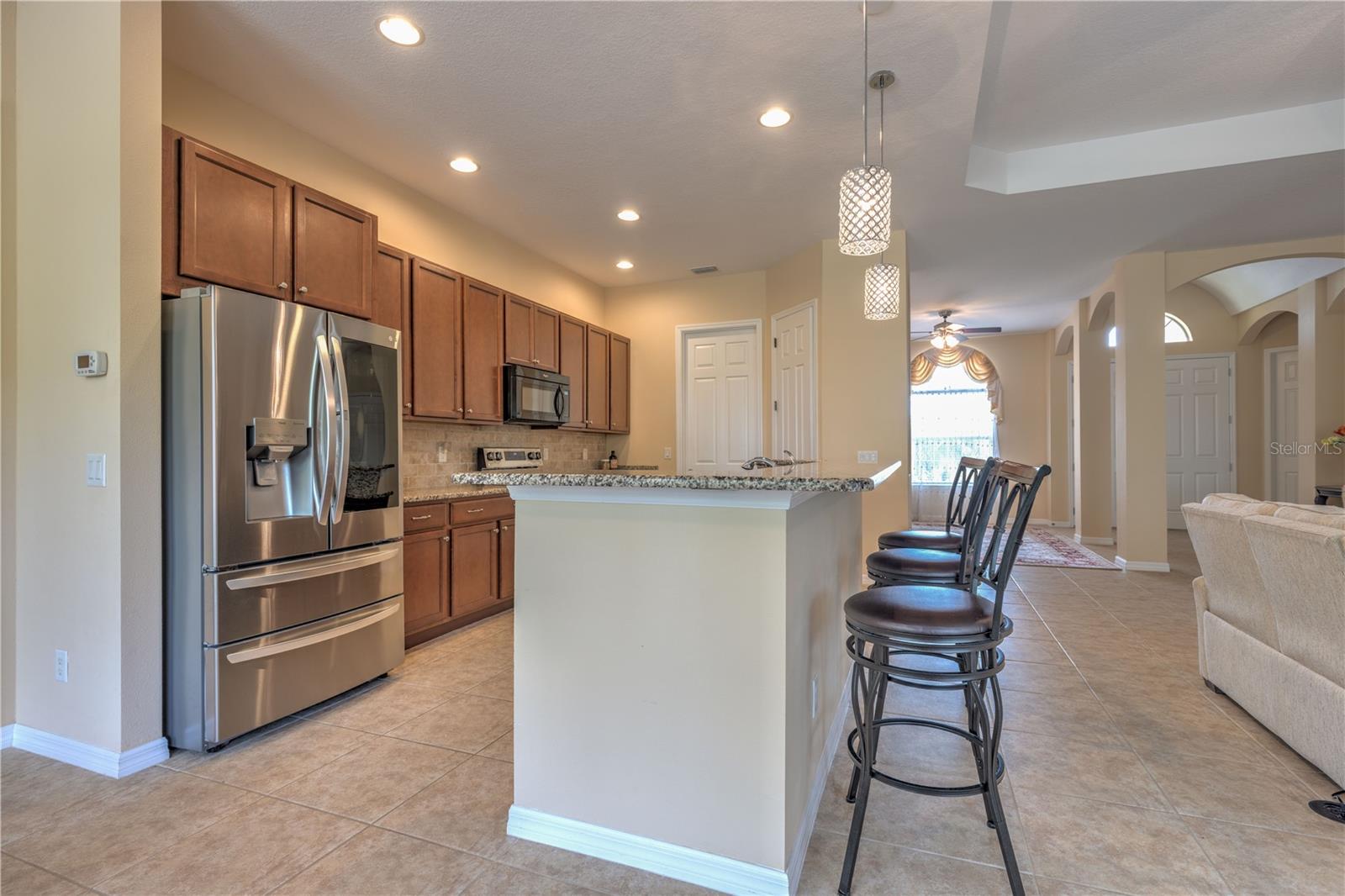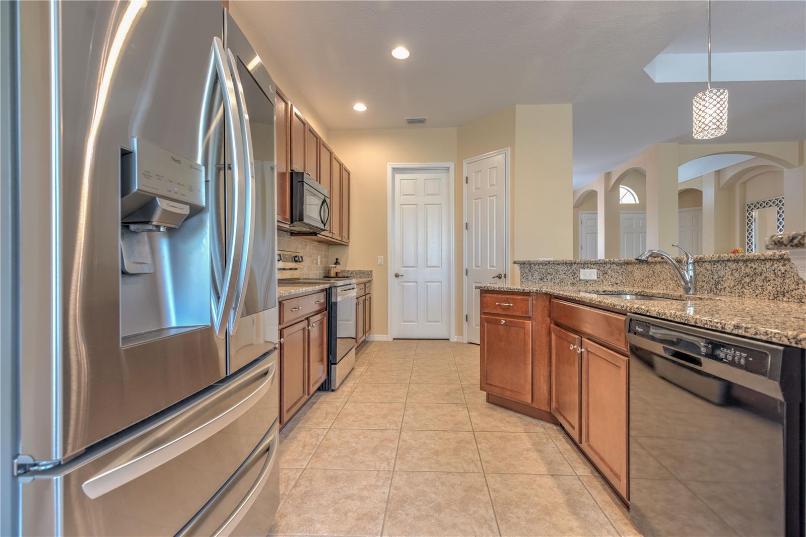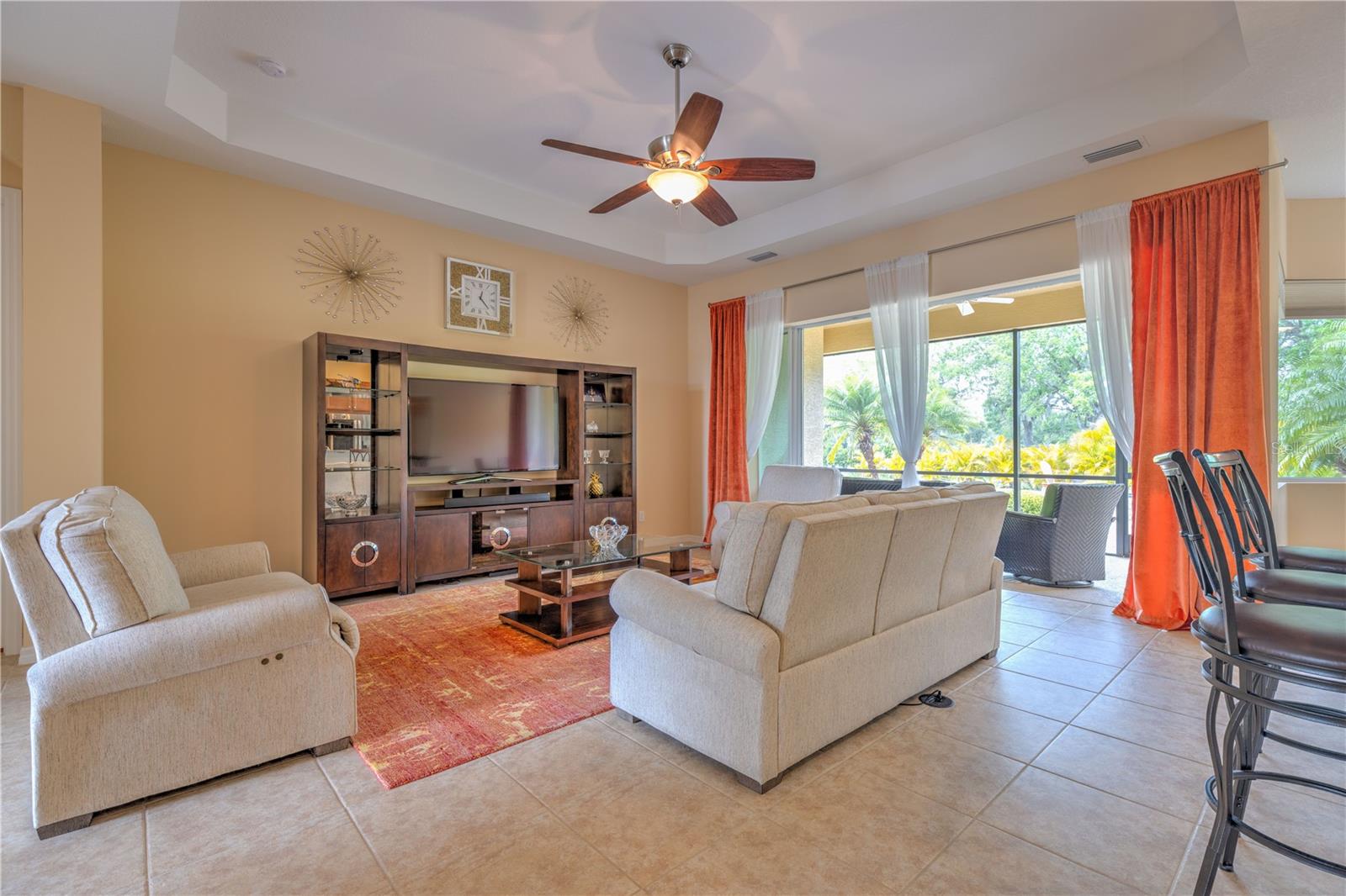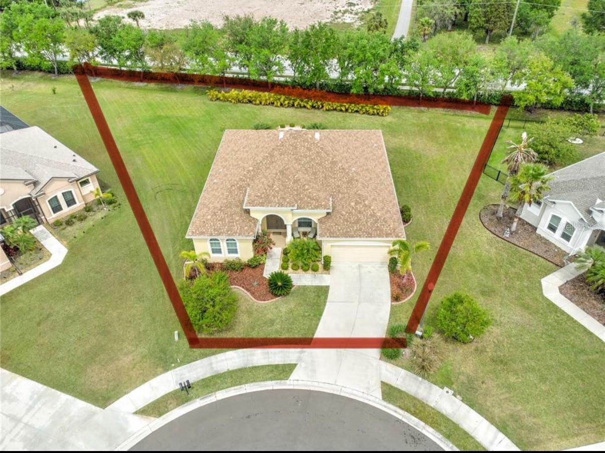 Stunning Aruba Model on the Largest Lot in River Plantation – Quiet Cul-de-Sac Location! If you’re looking for privacy and tranquility while still enjoying the amenities of a vibrant community—this is it! Nestled in a peaceful cul-de-sac, this 3-bedroom, 2-bathroom home with a spacious office (easily convertible into a 4th bedroom) offers both flexibility and comfort. Perfectly positioned on a premium 0.4-acre lot—the largest in the neighborhood—you’ll enjoy an oversized backyard with plenty of room to relax, entertain, or even add a pool. A brand-new roof, fresh interior and exterior paint, and energy-efficient upgrades ensure low maintenance and lower utility costs for years to come. Step onto the welcoming front porch, where tall double entry doors lead into a bright foyer with a soaring arched ceiling. The open floor plan is made for entertaining, featuring a spacious Great Room with tray ceilings and triple sliding doors that open to the oversized lanai. From here, enjoy breathtaking views of the lush backyard and cozy fire pit area—the perfect place to unwind in the evenings. The gourmet kitchen is truly the heart of the home, featuring a huge island, solid wood cabinetry with pull-out drawers, modern slick stainless steel appliances, and granite countertops. The dining area seats eight comfortably, with large windows overlooking the backyard, while a breakfast bar provides additional seating. The Owner’s Retreat is a private oasis, complete with tray ceilings, two large walk-in closets, and a spa-like en-suite with a soaking tub, dual vanities, a spacious walk-in shower with custom niches, ample storage, and a built-in medicine cabinet. A private door leads directly to the lanai. The guest wing includes two bedrooms with a Jack and Jill bath, separated by a pocket door for added privacy and featuring another convenient medicine cabinet. Additional Features: • Large den/office with wood flooring – perfect for working from home, a fitness space, or an easy conversion into a fourth bedroom • Granite countertops throughout • Crown molding and ceiling fans in every room • Hurricane shutters & irrigation system • Spacious 2-car garage Located in the highly desirable River Plantation community, residents enjoy access to a 2-mile nature trail, canoe & kayak launch, tennis & basketball courts, a playground, large community pool, fitness center, and clubhouse. Conveniently close to I-75, Fort Hamer Bridge, Lakewood Ranch, shopping, dining, and the beautiful beaches of Bradenton and Clearwater. No CDDs and no flood insurance required.