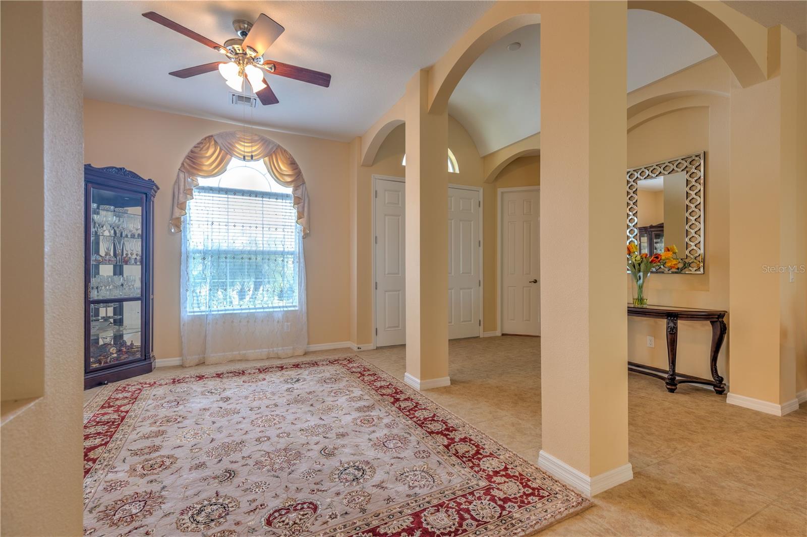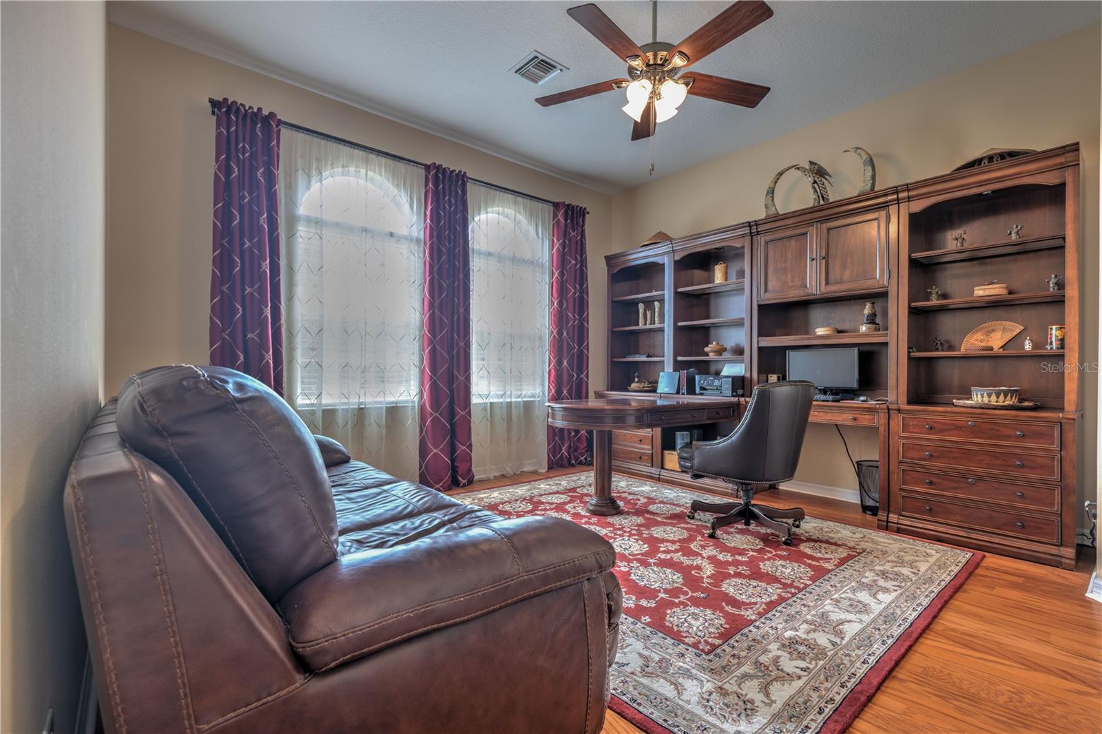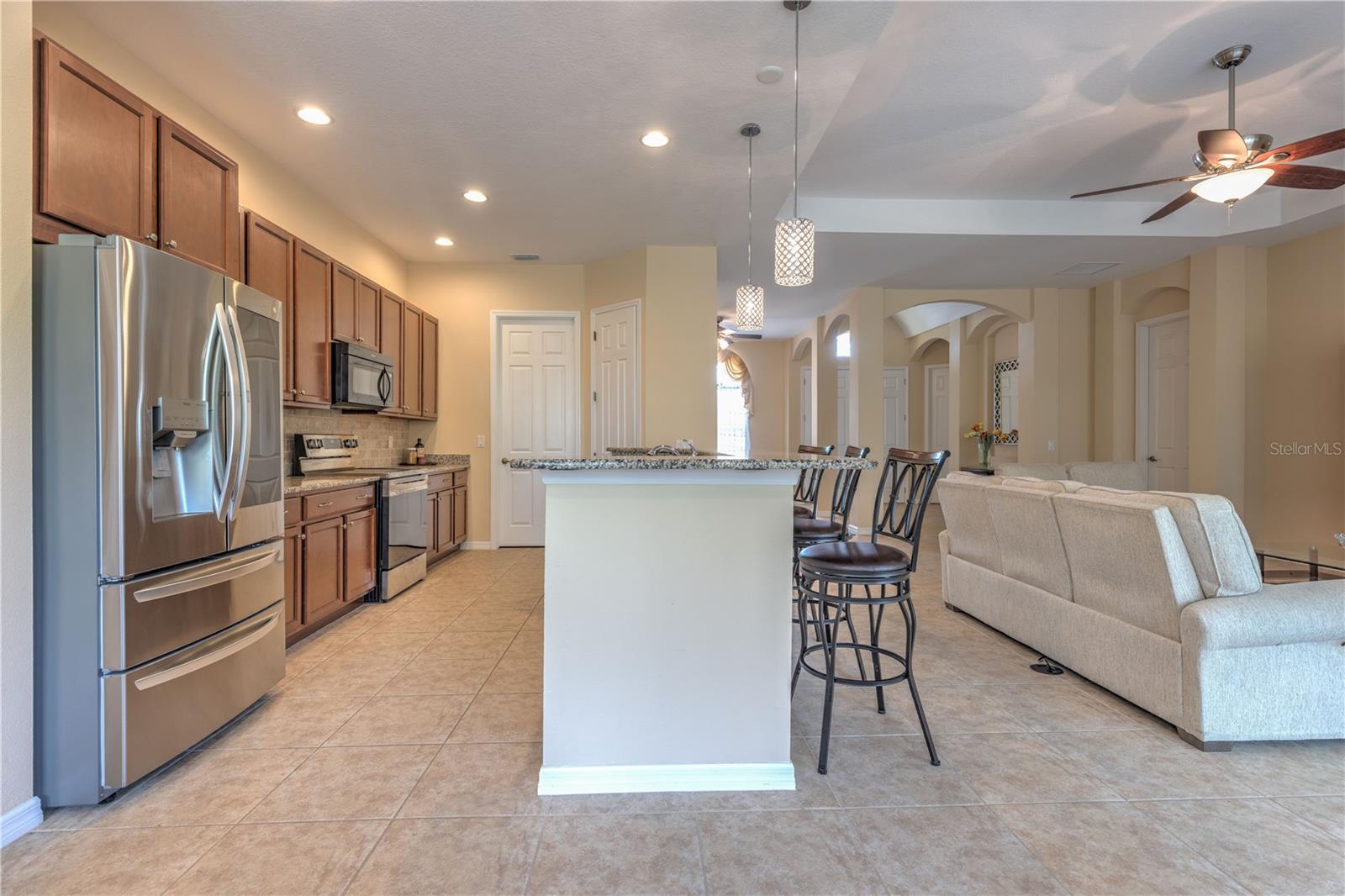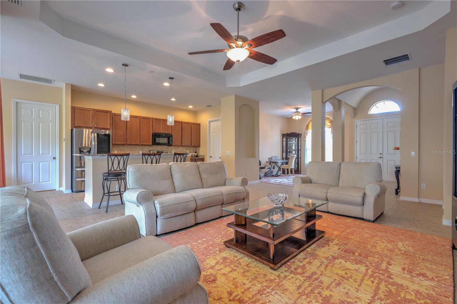 Stunning Aruba Model on the Largest Lot in River Plantation – Quiet Cul-de-Sac Location! If you’re looking for privacy and tranquility while still enjoying the amenities of a vibrant community—this is it! Nestled in a peaceful cul-de-sac, this 3-bedroom, 2-bathroom home with a spacious office (easily convertible into a 4th bedroom) offers both flexibility and comfort. Perfectly positioned on a premium 0.4-acre lot—the largest in the neighborhood—you’ll enjoy an oversized backyard with plenty of room to relax, entertain, or even add a pool. A brand-new roof, fresh interior and exterior paint, and energy-efficient upgrades ensure low maintenance and lower utility costs for years to come. Step onto the welcoming front porch, where tall double entry doors lead into a bright foyer with a soaring arched ceiling. The open floor plan is made for entertaining, featuring a spacious Great Room with tray ceilings and triple sliding doors that open to the oversized lanai. From here, enjoy breathtaking views of the lush backyard and cozy fire pit area—the perfect place to unwind in the evenings. The gourmet kitchen is truly the heart of the home, featuring a huge island, solid wood cabinetry with pull-out drawers, modern slick stainless steel appliances, and granite countertops. The dining area seats eight comfortably, with large windows overlooking the backyard, while a breakfast bar provides additional seating. The Owner’s Retreat is a private oasis, complete with tray ceilings, two large walk-in closets, and a spa-like en-suite with a soaking tub, dual vanities, a spacious walk-in shower with custom niches, ample storage, and a built-in medicine cabinet. A private door leads directly to the lanai. The guest wing includes two bedrooms with a Jack and Jill bath, separated by a pocket door for added privacy and featuring another convenient medicine cabinet. Additional Features: • Large den/office with wood flooring – perfect for working from home, a fitness space, or an easy conversion into a fourth bedroom • Granite countertops throughout • Crown molding and ceiling fans in every room • Hurricane shutters & irrigation system • Spacious 2-car garage Located in the highly desirable River Plantation community, residents enjoy access to a 2-mile nature trail, canoe & kayak launch, tennis & basketball courts, a playground, large community pool, fitness center, and clubhouse. Conveniently close to I-75, Fort Hamer Bridge, Lakewood Ranch, shopping, dining, and the beautiful beaches of Bradenton and Clearwater. No CDDs and no flood insurance required.