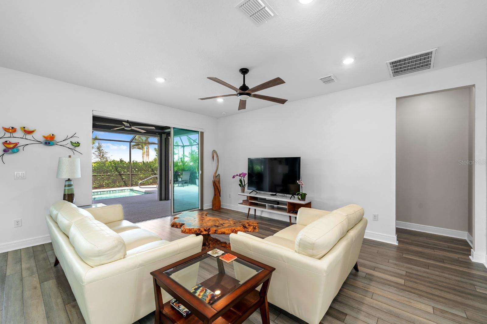 Motivated sellers, all reasonable offers considered! Plus, they’re offering $5,000 toward buyer’s closing costs to make your move even easier. This beautifully upgraded Prosperity Model pool home in Del Webb BayView is packed with value, including a golf cart, natural gas generator, and grill, all included in the sale. As a pristine resale with all builder warranty work already completed, this home offers significantly lower closing costs compared to new construction and is available for a quick close. Meticulously maintained, this two-bedroom plus den residence offers the perfect blend of comfort, style, and Florida living. Relax in your private heated saltwater pool surrounded by tropical landscaping and enjoy unforgettable western sunsets from the lanai. Inside, you’ll love the open-concept layout with luxury plank flooring throughout (no carpet), double sliding glass doors, custom window treatments, upgraded lighting and fans, and a spacious owner’s suite with a walk-in shower. The bright kitchen and living spaces are ideal for entertaining or quiet everyday living. Additional highlights include a screened front entry, extra insulation over the garage and garage door for energy efficiency, retractable storm shades on the lanai, and a generator hookup. The refrigerator, washer, and dryer stay with the home, and all grout has been professionally sealed. Located on one of the most welcoming streets in Del Webb BayView, this home is part of a vibrant 55+ community with resort style amenities, including a full-service restaurant, state of the art fitness center, pickleball courts, social clubs, and nonstop community events. Don’t miss this rare opportunity to own a move in ready pool home in one of the area’s most desirable active adult communities. Schedule your private tour today!