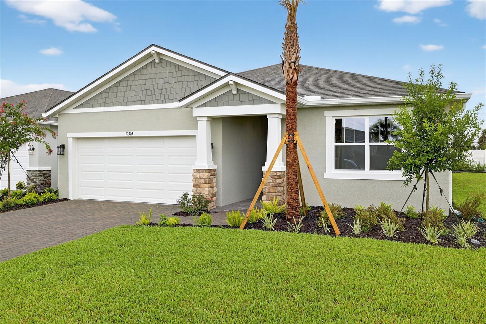 Under Construction. Welcome to the Glades with a Craftsman Elevation. This stunning home is located in the sought-after gated community of Windwater in Parrish, FL. This exceptional property offers 2,005 square feet of elegant living space, featuring 4 bedrooms, 3 full bathrooms, and a 2-car garage. As you step inside, you'll immediately notice the open and inviting floor plan, 8' door throughout. Enhanced by the beautiful Drayton 7x22 wood plank 70/30 Stagger tile that flows through the main living areas. The kitchen is a chef's dream, showcasing 42" Barnett Maple Latte cabinets. Exquisite Carrara Breve quartz countertops, providing both functionality and style. All appliances are included. The spacious master suite offers a peaceful retreat with a well-appointed en-suite bathroom, complete with dual sink raised vanity, and a glassed enclosed shower. The additional bedrooms are thoughtfully designed to provide comfort and privacy. Bedrooms 2 and 3 share a full hallway bath and bedroom 4 has a bathroom located just outside the bedroom door. Outdoor living is equally impressive, with a covered screen in lanai with Sliders perfect for entertaining or simply enjoying the serene surroundings. The expansive backyard offers plenty of room to add a pool, creating a tranquil and picturesque setting with that has no rear neighbors for privacy. Windwater is a beautiful community that combines the charm of suburban living with convenient access to schools, parks, shopping, and dining. Ready July/August 2025. All illustrations are artist concept. All dimensions and square footage are approximate. Photos and renderings are for illustrative purposes and should never be relied upon. The photos are from a furnished model home and not the home offered for sale.