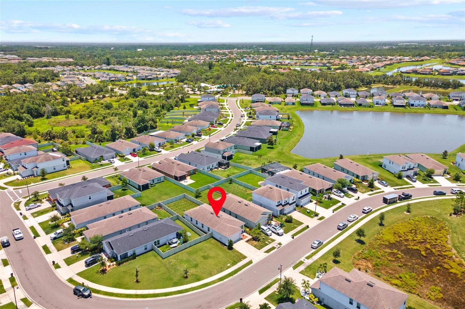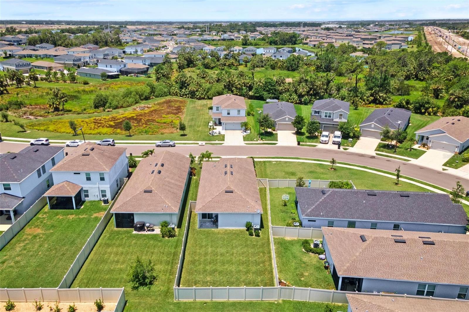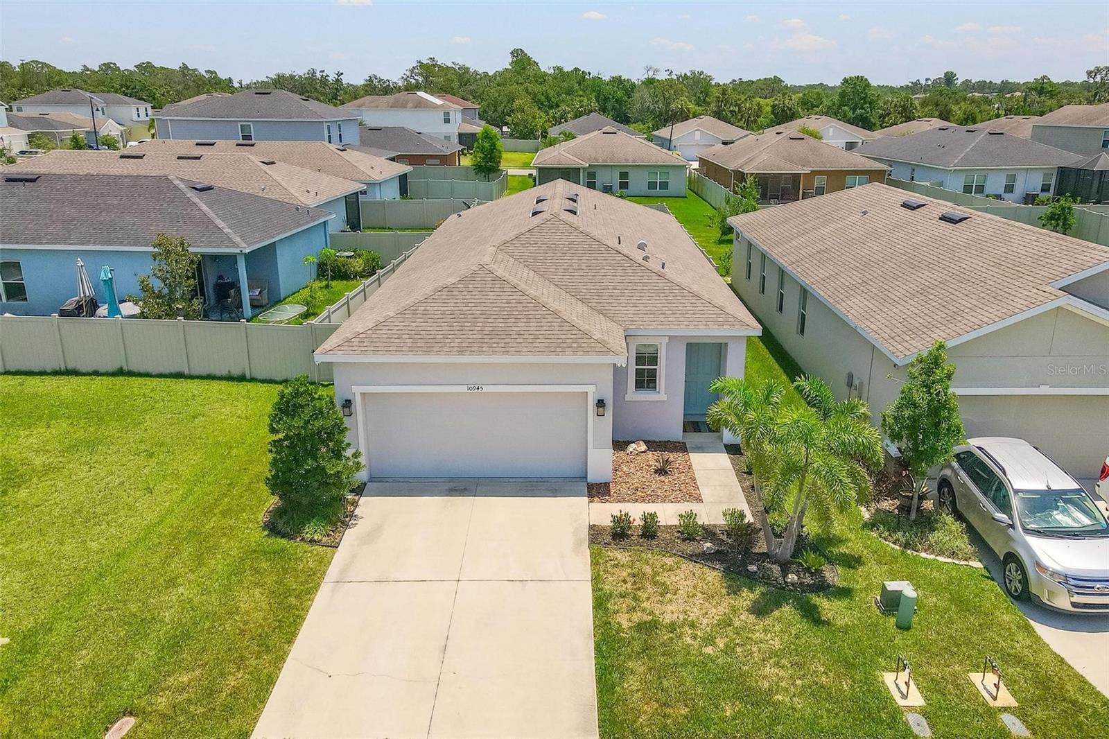 Welcome to your dream home in beautiful Parrish, Florida! This stunning 3-bedroom, 2-bathroom residence is just five years old, in a non flood zone, and packed with upgrades, style, and comfort. Located in a vibrant community offering top-tier amenities including a clubhouse, pool, playground, dog park, and scenic sidewalks, this home has it all! Step inside to an open-concept floor plan featuring tile flooring throughout the main living areas and carpeted bedrooms for cozy comfort. The modern kitchen boasts a brand-new LG refrigerator and dishwasher, granite countertops, and a large center island perfect for entertaining. The adjacent dining area and great room provide the ideal space for gathering with family and friends. Retreat to the spacious owner’s suite, complete with a walk-in closet and a luxurious en-suite bath featuring dual vanities and a private water closet. Two additional bedrooms share a full bath, offering flexibility for guests, a gym, home office, or a growing family. Enjoy peace of mind with hurricane shutters already in place and the convenience of an LG washer and dryer. Step outside to a huge, fully fenced backyard with a gated entry—ideal for pets, play, privacy, or even a future pool. The covered patio is the perfect spot to relax and enjoy Florida’s year-round sunshine. Don’t miss your chance to own this beautifully upgraded, move-in-ready home in one of Parrish’s most desirable neighborhoods!