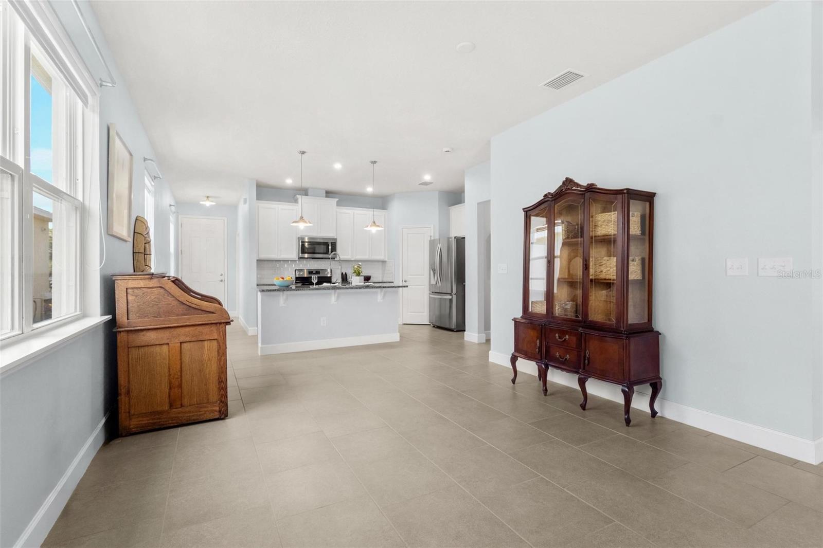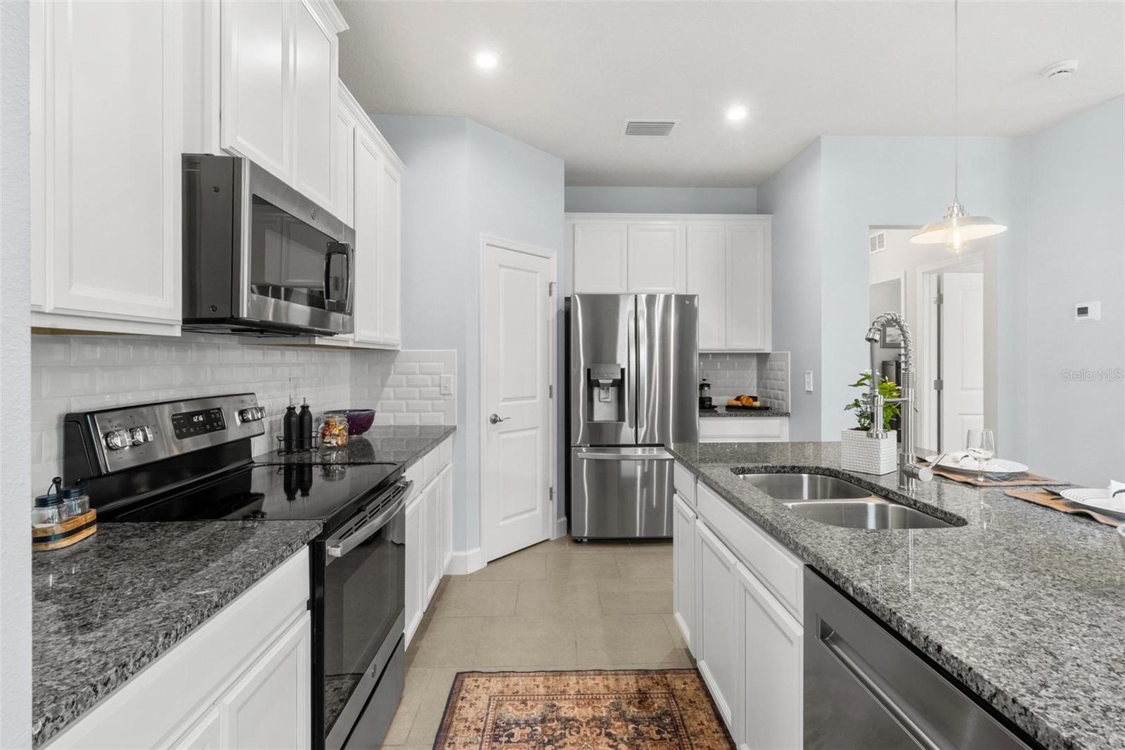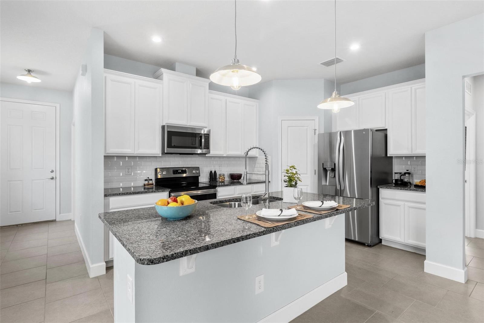 Welcome to your dream home in beautiful Parrish, Florida! This stunning 3-bedroom, 2-bathroom residence is just five years old, in a non flood zone, and packed with upgrades, style, and comfort. Located in a vibrant community offering top-tier amenities including a clubhouse, pool, playground, dog park, and scenic sidewalks, this home has it all! Step inside to an open-concept floor plan featuring tile flooring throughout the main living areas and carpeted bedrooms for cozy comfort. The modern kitchen boasts a brand-new LG refrigerator and dishwasher, granite countertops, and a large center island perfect for entertaining. The adjacent dining area and great room provide the ideal space for gathering with family and friends. Retreat to the spacious owner’s suite, complete with a walk-in closet and a luxurious en-suite bath featuring dual vanities and a private water closet. Two additional bedrooms share a full bath, offering flexibility for guests, a gym, home office, or a growing family. Enjoy peace of mind with hurricane shutters already in place and the convenience of an LG washer and dryer. Step outside to a huge, fully fenced backyard with a gated entry—ideal for pets, play, privacy, or even a future pool. The covered patio is the perfect spot to relax and enjoy Florida’s year-round sunshine. Don’t miss your chance to own this beautifully upgraded, move-in-ready home in one of Parrish’s most desirable neighborhoods!