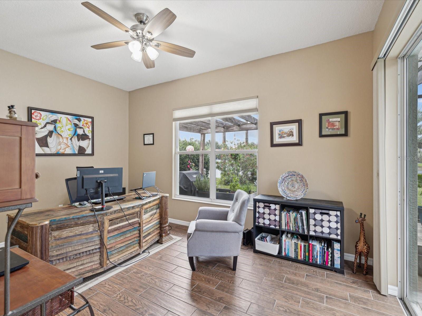 Enjoy tranquil water views and abundant wildlife from the lanai of this beautifully updated 4-bedroom plus office home in the established River Woods community. The kitchen was fully renovated in 2023 with new cabinetry, quartz countertops, and stainless-steel appliances, offering a true move-in-ready alternative to waiting on new construction. A heated pool overlooks the water and was resurfaced in 2022 with new pavers, new pool equipment installed in 2024, and a bronze cage was installed in 2025, creating a private outdoor retreat rarely found in newer builds. Inside, plantation shutters, refreshed bathrooms, and a desirable split-bedroom layout provide comfort, privacy, and timeless appeal. The primary suite features dual closets, a garden tub, separate shower, and two vanities. Additional highlights include attic storage and a 3-car garage with an extra refrigerator. Major systems have been thoughtfully maintained, including a roof replaced in November 2018, an HVAC system installed in 2016 with the A/C compressor replaced in August 2021, and a 50-gallon hot water heater installed in July 2022 with a thermal expansion tank, providing peace of mind for the next owner. River Woods is a well-established neighborhood with mature landscaping, known commute patterns, and community amenities already in place. Residents enjoy a clubhouse, pool, fitness room, and tennis/pickleball courts, all with low HOA dues and no CDD fees. With no construction delays, no hidden builder add-ons, and a true sense of community, this home offers immediate enjoyment in one of Parrish’s most desirable neighborhoods.