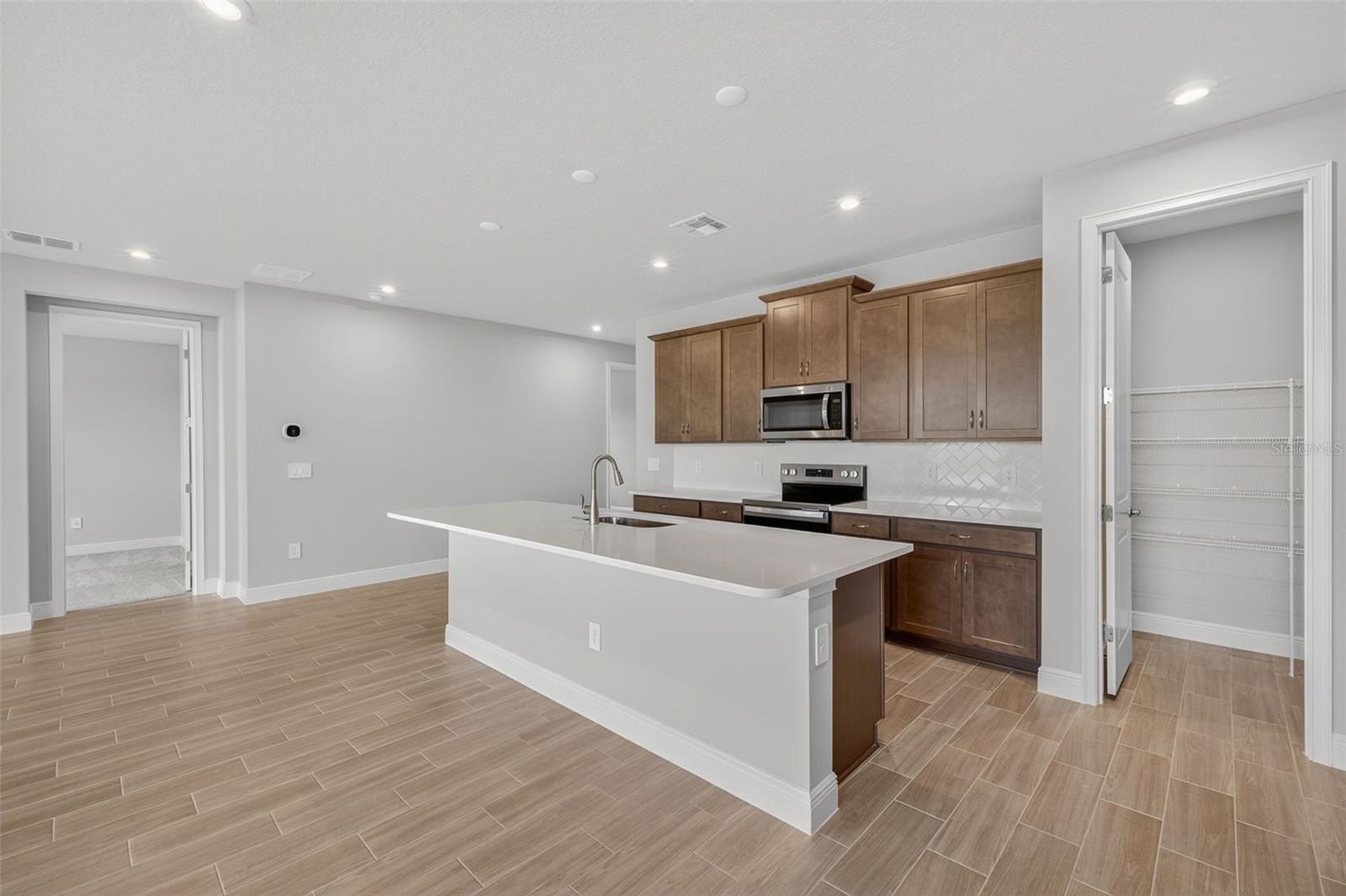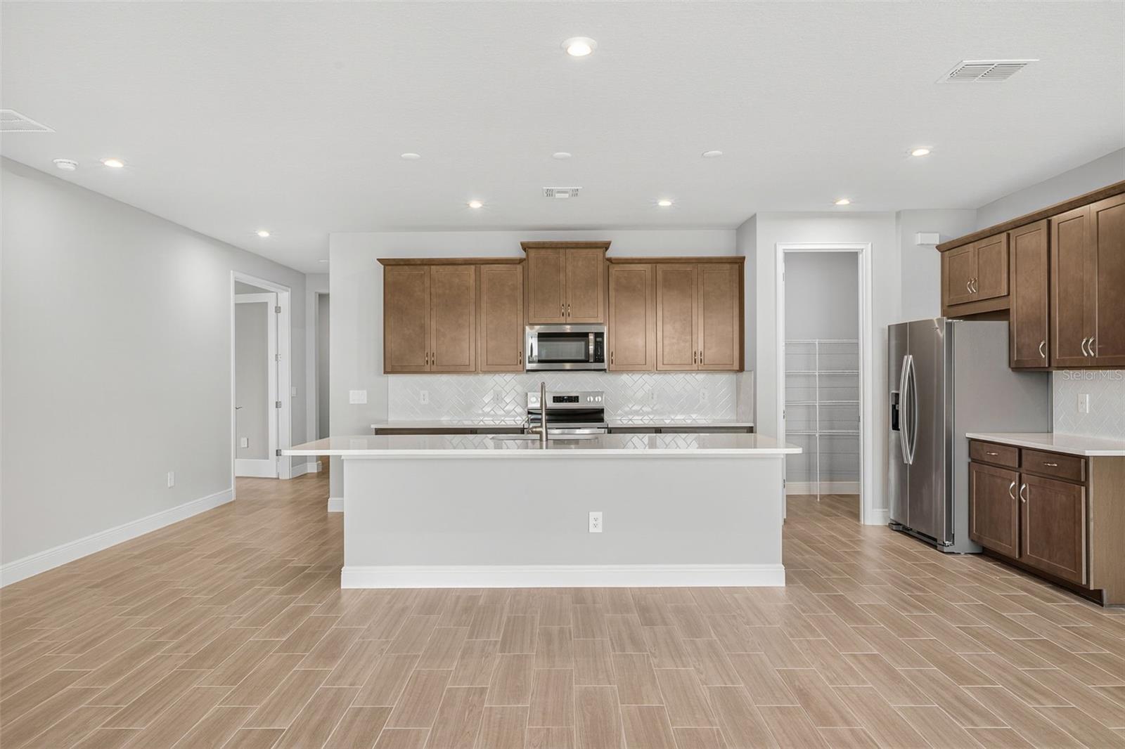 Welcome to the Caledon, a beautifully Coastal Elevation home in the highly desirable gated community of Windwater in Parrish, FL. This exceptional property offers 1,731 square feet of stylish living space, featuring 3 bedrooms, 2 bathrooms, and a 2-car garage. All 8' doors throughout. As you enter, you will be greeted by an open floor plan with Orion's Way 7x22 staggered plank flooring throughout the main living areas, creating a modern and inviting atmosphere. The kitchen is a chef's delight, showcasing 42"" Barnett Maple Latte Cabinets and elegant Carrara Breve quartz countertops, providing both beauty and functionality. All appliances are included. The master suite serves as a peaceful retreat, with a spacious bedroom and a luxurious en-suite bathroom equipped with dual vanities and a separate shower. The additional bedrooms are generously sized, offering comfort and versatility. Step outside to the screened in covered screened in lanai, perfect for outdoor entertaining or simply relaxing. The expansive backyard has plenty of room allowing you to customize your own outdoor oasis. Windwater is known for its serene ambiance and prime location. Residents enjoy easy access to schools, scenic parks, and a variety of shopping and dining options. With its convenient proximity to Tampa and Sarasota, you can enjoy the best of both worlds: peaceful suburban living with quick access to urban amenities. Photos, renderings and plans are for illustrative purposes only and should never be relied upon and may vary from the actual home. Pricing, dimensions and features can change at any time without notice or obligation.