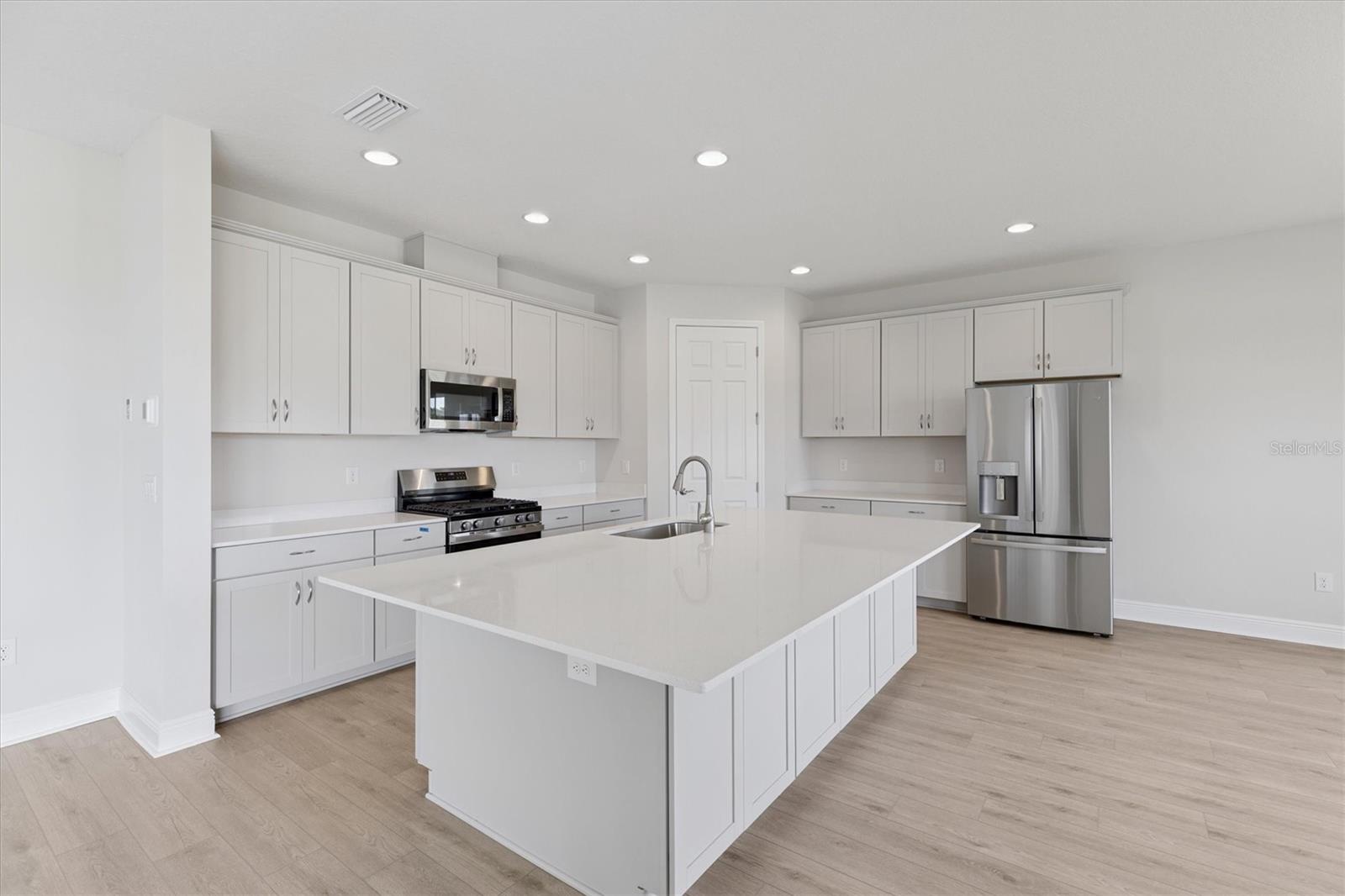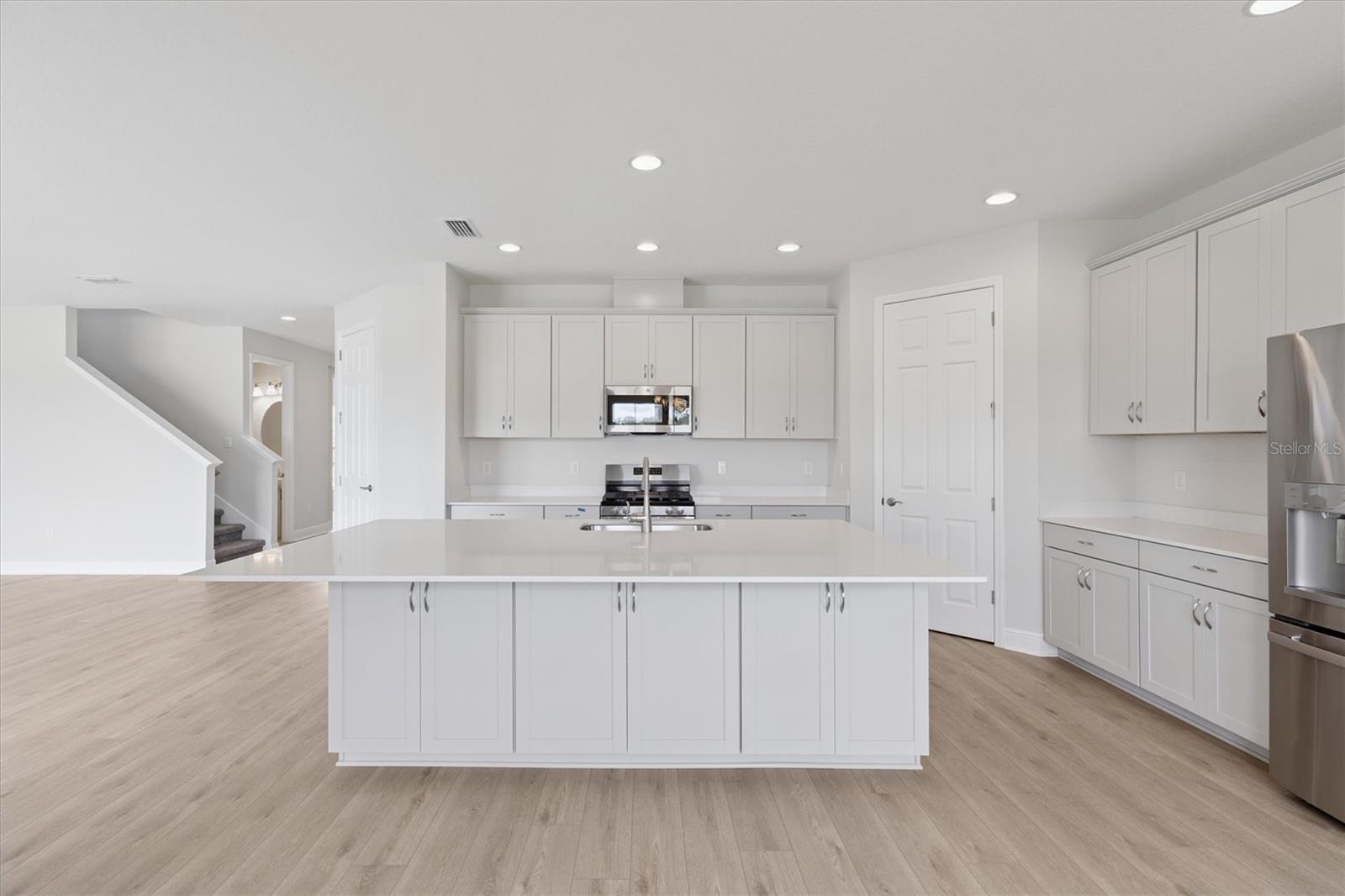 Kingfisher - This Kingfisher is move-in-ready! This home is an exciting design fit for a variety of lifestyles and families, capturing true Florida style. The expansive and open two-story floor plan begins with the dining room, which flows seamlessly into the grand room. This space is filled with natural light and features a sliding door that opens to a large lanai, perfect for enjoying the beautiful weather. From the grand room, you'll find the stunning kitchen, complete with Sonoma Duraform Harbor cabinets, Frost Whte MSI Quartz countertops, and Polaris Plus LVP flooring. The kitchen features a large island, plenty of counter space, and a walk-in pantry, all overlooking a spacious and bright breakfast room. All four bedrooms, the laundry room, and a versatile bonus room are located upstairs. The owner's retreat is a private haven, featuring an oversized walk-in closet and a luxurious bathroom with dual vanities, a large walk-in shower, for ultimate relaxation. This home is designed for comfort, style, and making lasting memories. Don't miss the chance to make this home yours!