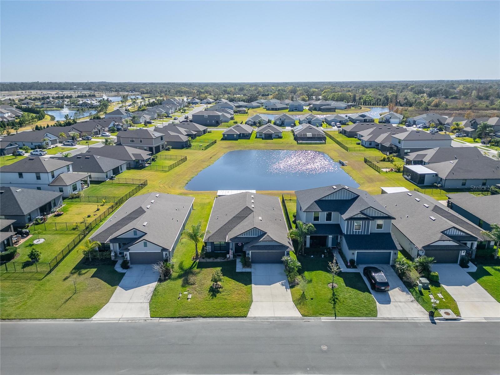 Welcome home to Aviary at Rutland Ranch—an inviting Gulf Coast community where comfort, style, and Florida living come together beautifully. Start your mornings on the front porch with a cup of coffee, then unwind in the evenings on the spacious covered lanai overlooking a peaceful pond—perfect for entertaining or simply relaxing and enjoying the view. Built by Adams Homes in 2020, this thoughtfully designed 4-bedroom, 3-bath home offers a bright, open layout and standout curb appeal with attractive stone accents. Step inside to a welcoming hallway and a spacious dining room, ideal for hosting gatherings with room for an eight-seat table. The stylish and functional kitchen features granite countertops, white cabinetry, pantry, island, breakfast bar, and a sunny side window that fills the space with natural light. Up front, two bedrooms share a well-appointed bathroom with double sinks, a private water closet, and a tiled tub/shower combo—perfect for family or guests. At the heart of the home, the open living area showcases gorgeous views through double glass doors leading to an extended lanai, and tranquil pond beyond—your own private backyard retreat. The spacious primary suite offers pond views, a tray ceiling, walk-in closet, and an ensuite bath with double vanities, private water closet, and a beautifully tiled walk-in shower. Additional highlights include a utility/laundry room plus a two-car garage. Residents of The Aviary enjoy top-notch amenities including a resort-style pool with covered seating and pond views, two pickleball/tennis courts, a half-court basketball area with additional gathering spaces, playground, and scenic walking paths. Conveniently located near top-rated schools, shopping, and Fort Hamer Park—where you can launch your boat and enjoy the Manatee River, Tampa Bay, and the Gulf. You’re also ideally situated between St. Pete and Sarasota, close to Lakewood Ranch, Anna Maria Island, and just about an hour to Tampa for sports, dining, and city life. And yes—some of the nation’s best beaches are right here waiting for you. Don’t miss your chance to make this Florida dream home yours!