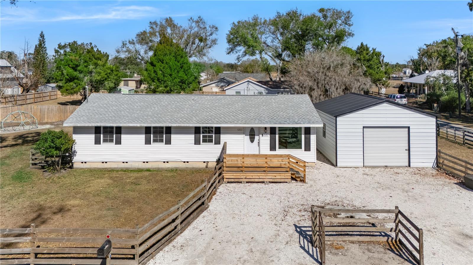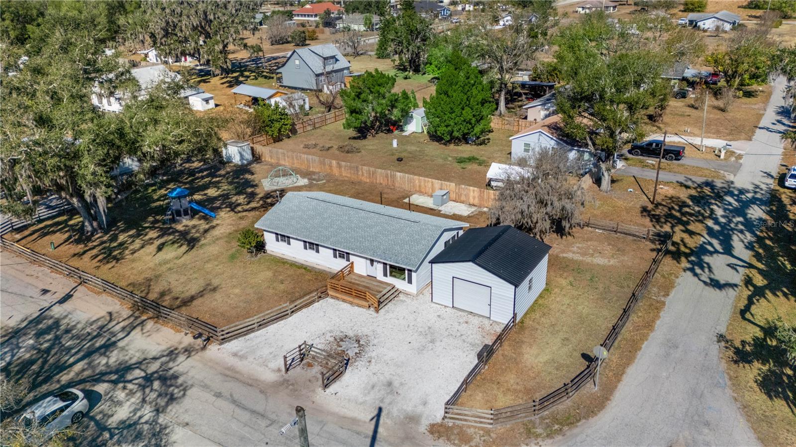 Welcome Home! This beautifully updated 4-bedroom, 2-bath home is situated on an oversized, fully fenced .29-acre corner lot in the heart of fast-growing Parrish. It offers the perfect balance of comfortable living today and exciting possibilities for the future. With no HOA and no CDD, you’ll enjoy the freedom to truly make this property your own. The spacious yard offers plenty of room to relax, entertain, garden, or expand, while the corner-lot setting provides for future uses and excellent visibility. There’s ample space to bring your toys, with room to store a boat, RV, or BOTH. A detached two-car garage/workshop adds even more versatility—ideal for storage, hobbies, projects, or a functional workspace. One of the most unique features of this property is its location within the Parrish Commercial Village Overlay (Village / RES-6 zoning), offering flexibility for potential residential, live-work, or commercial use. This added versatility makes the property especially attractive as Parrish continues to grow and develop, providing both lifestyle appeal and long-term value. Inside, the home is completely move-in ready with all new flooring, stainless steel appliances, fully updated bathrooms, complete repiping, newer windows and a roof replacement in 2023. You'll be able to settle in with confidence. The thoughtful 4-bedroom floor plan provides flexibility for a variety of lifestyles. Whether you need extra space for guests, a home office, or a creative studio, the opportunities are potentially endless. This home is in an excellent central location, just minutes from Fort Hamer Park and boat launch and the new, vibrant Parrish Community Park, which offers a splash pad, state-of-the-art playground, and an amphitheater with band shell for community events and live entertainment. Brand new Hidden Harbor Park, featuring a BMX pump track, playground, and scenic walking trails. There are everyday conveniences close at hand, including shopping, dining, schools, and major commuter routes all just minutes away. The property is surrounded by ongoing and future development in one of Manatee County’s most desirable and rapidly expanding communities, making this an ideal location to enjoy today while benefiting from Parrish’s continued growth. Opportunities like this—combining space, updates, and zoning flexibility in a prime Parrish location—are rare. Schedule your private showing today!