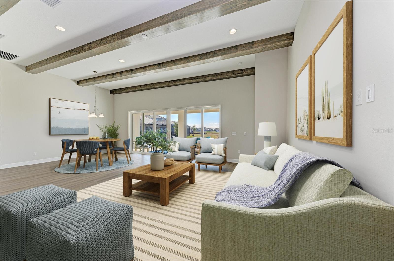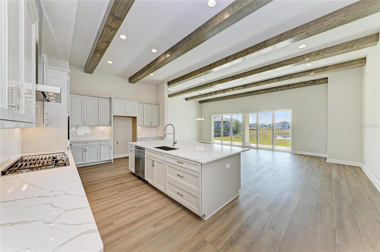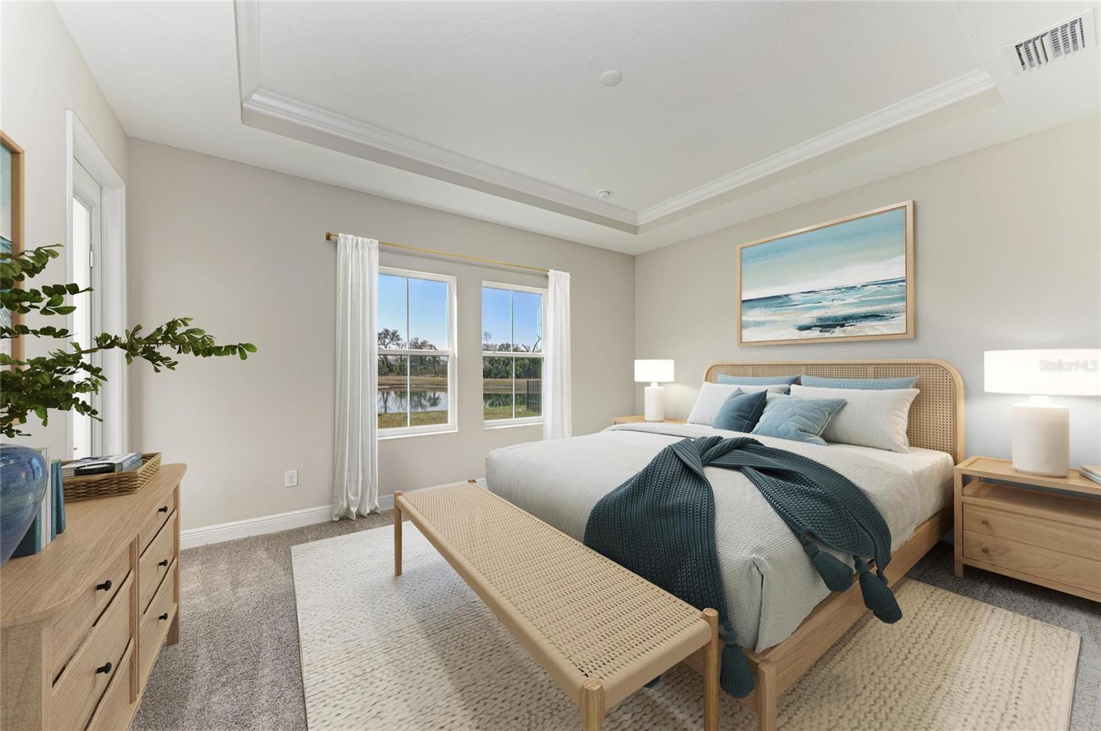 One or more photo(s) has been virtually staged. Islamorada II - This Islamorada II is ready now! Maddox Painted Harbor cabinetry pairs with Calacatta Laza MSI Quartz countertops to create a kitchen that anchors the home in style. Rich Nutmeg flooring flows across the main level, grounding the interior with warmth and durability. Spanning 3,144 square feet, this floorplan provides five bedrooms and four bathrooms, complemented by a three car garage. The open layout merges the kitchen, dining, and Great Room into one expansive area, maximizing both utility and ease of movement. Outside, the covered and extended lanai serves as a front row seat to beautiful water views, making the landscape a constant part of the living experience. The main floor prioritizes privacy with a secluded owner's retreat and a dedicated den, while the second level offers a versatile bonus room and a guest suite for extra flexibility. Listing Price amount for this Pending Sale includes Design and Structural Options. Exterior image shown for illustrative purposes only and may differ from actual home.