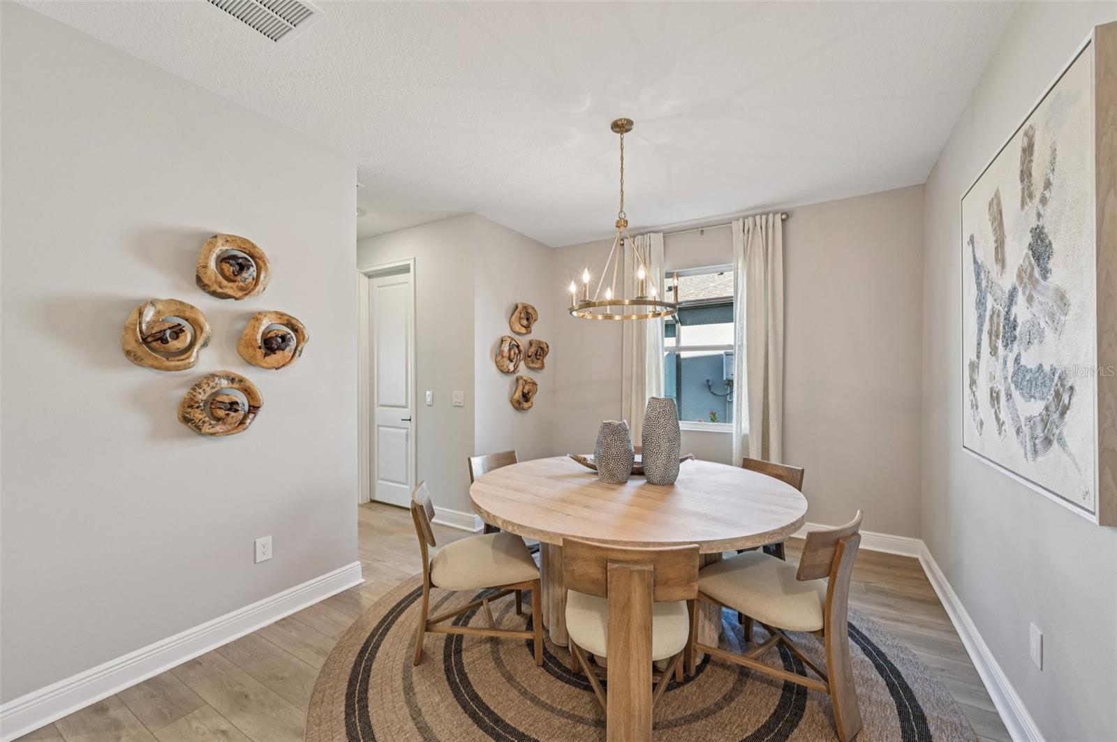 Under Construction. Discover the Duval home plan—a modern, thoughtfully designed five-bedroom, four and half-bathroom layout that blends comfort and functionality. The open living and dining areas flow effortlessly, while the spacious primary suite features a tray ceiling, walk-in closet, and on-suite bath. A perfect work-from-home setup, and a large, covered lanai with sliding glass doors creates a peaceful outdoor retreat. Home will be ready to close in June/July Featuring our AW Roosevelt Collection, this home is a cozy, light-filled sanctuary with warm floors, polished quartz countertops, and brush nickel finishes—perfect for lively evenings or quiet, restful weekends.