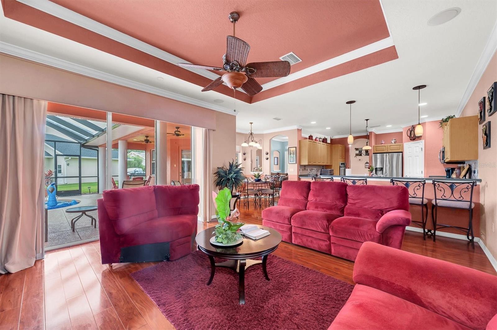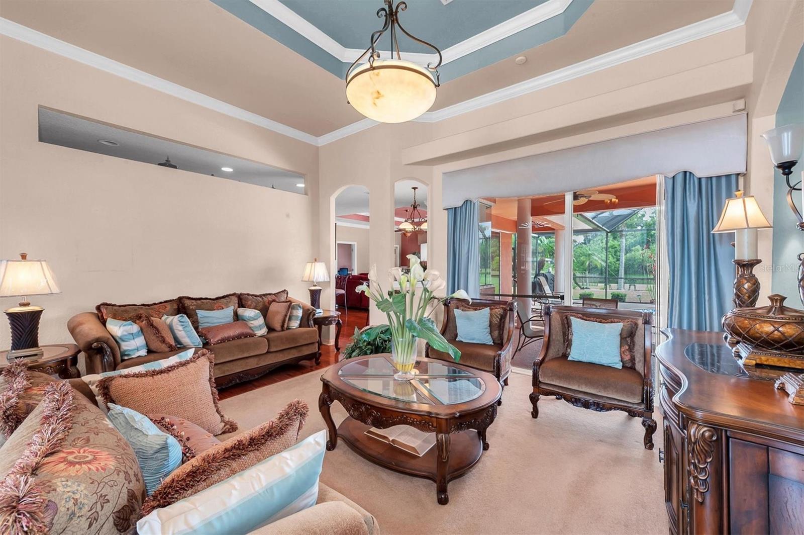 Welcome to your dream home in the coveted Ancient Oaks neighborhood in Parrish! This stunning property offers the perfect blend of luxury, comfort, and convenience. Step inside to discover a spacious 3-bedroom, 3-bathroom layout plus bonus space that includes a 3-car garage. Meticulously maintained by its sole owner, this home radiates pride of ownership from every corner. Situated on a generous .36-acre lot with a lovely pond view, this place is perfect for those who love to relax and entertain outdoors. Step out to your own private retreat featuring a refreshing pool and a spacious lanai – the ultimate spot for pool parties or lazy Sunday afternoons. Inside you'll find a cozy retreat with 2 guest bedrooms, and an addtional bonus space for a den or home office. the 3rd full bath is also accessible from the pool making rinsing off after a swim easy and convenient. A large kitchen with ample counter space, living room, family room and formal dining. Then Step into the expansive owner's suite that offers luxury and comfort like no other. Enjoy stunning views of the pool and pond from oversized windows. The beautiful en suite bathroom features a jetted tub, walk-in shower, and his and hers sinks. and with his and hers walk-in closets, there's ample space for your wardrobe. What more can you ask for? and have peace of mind knowing you are under a new roof replaced in 2022. So call today for a private showing and make this beautifull home yours!