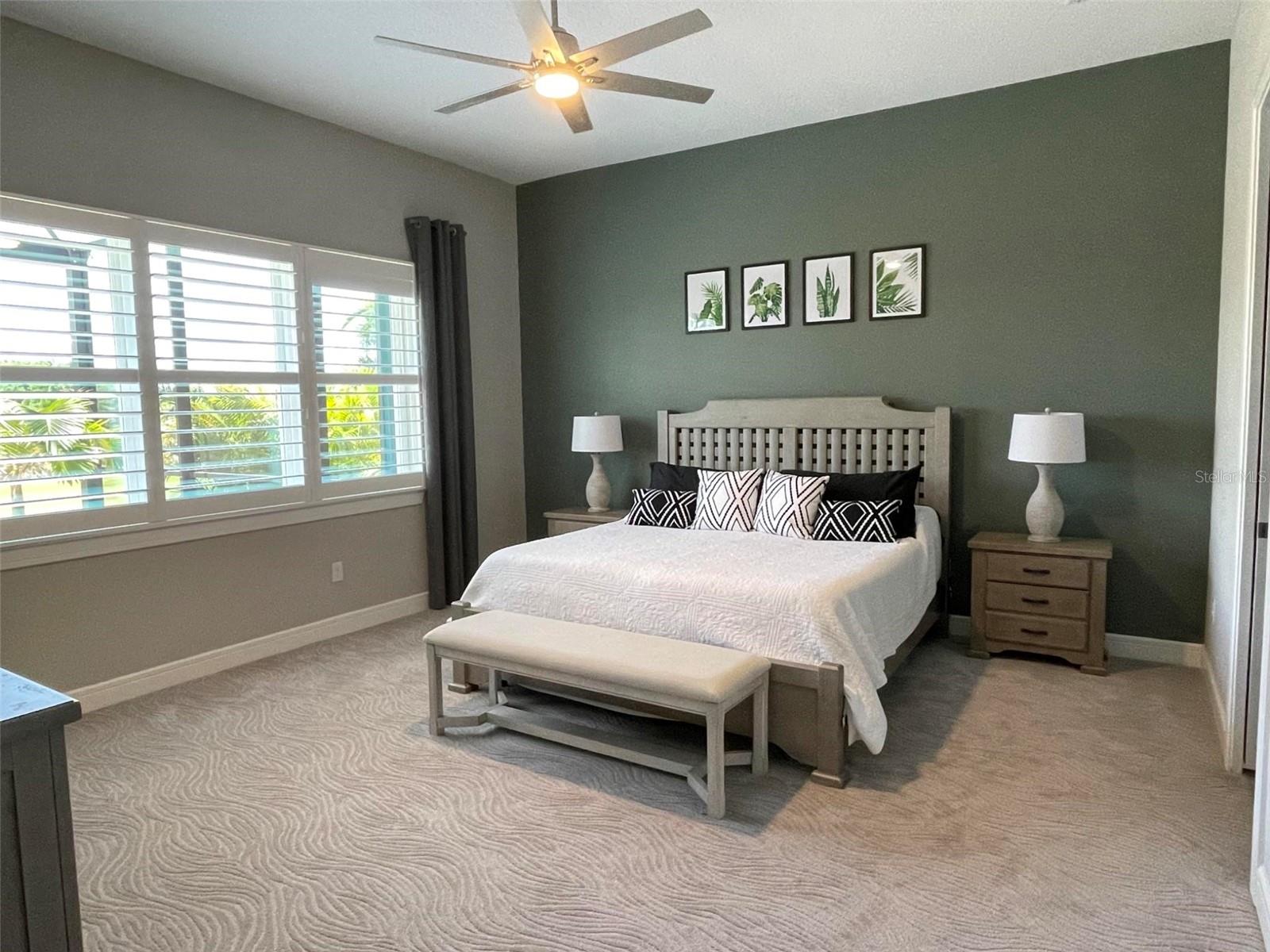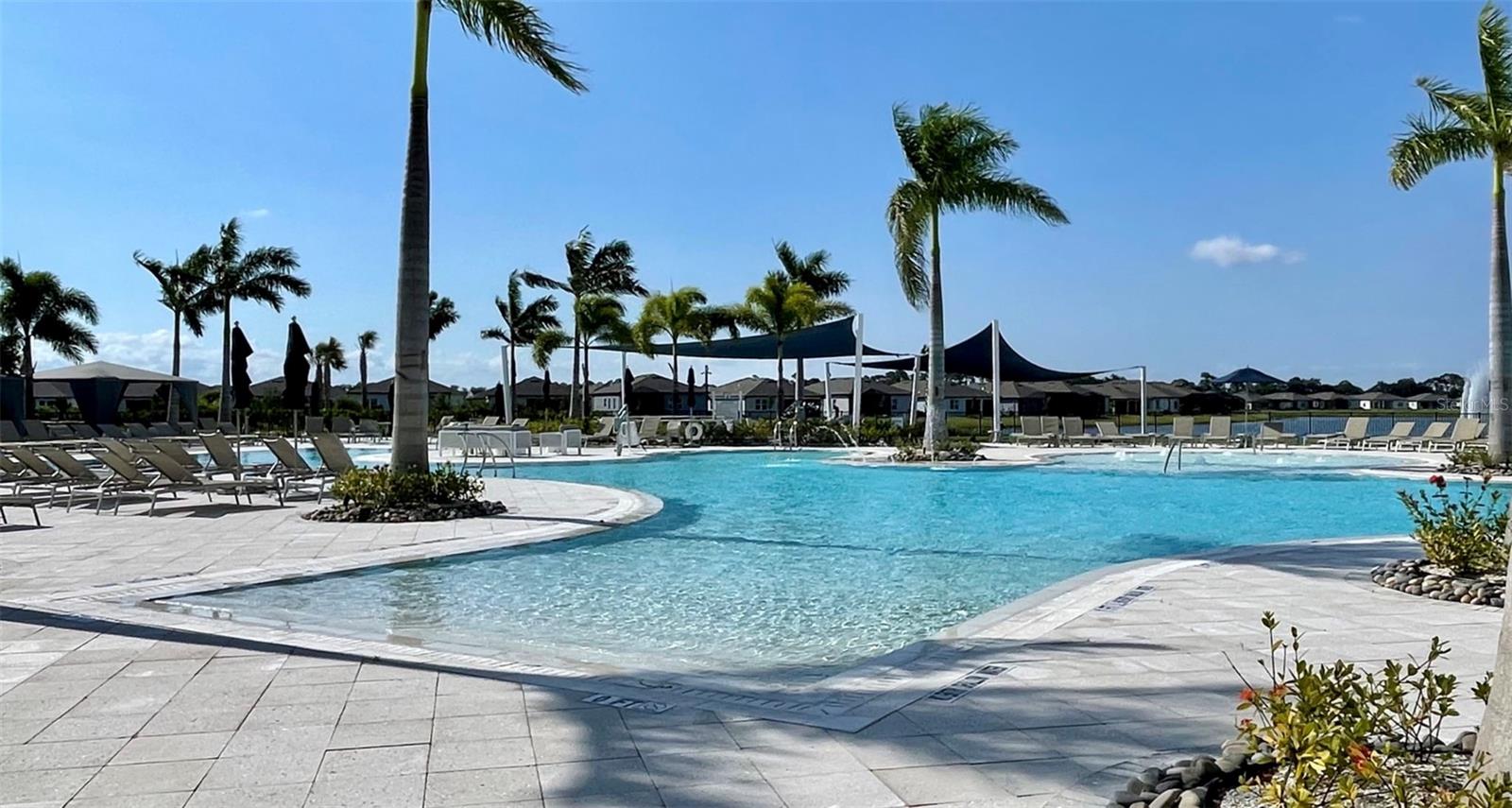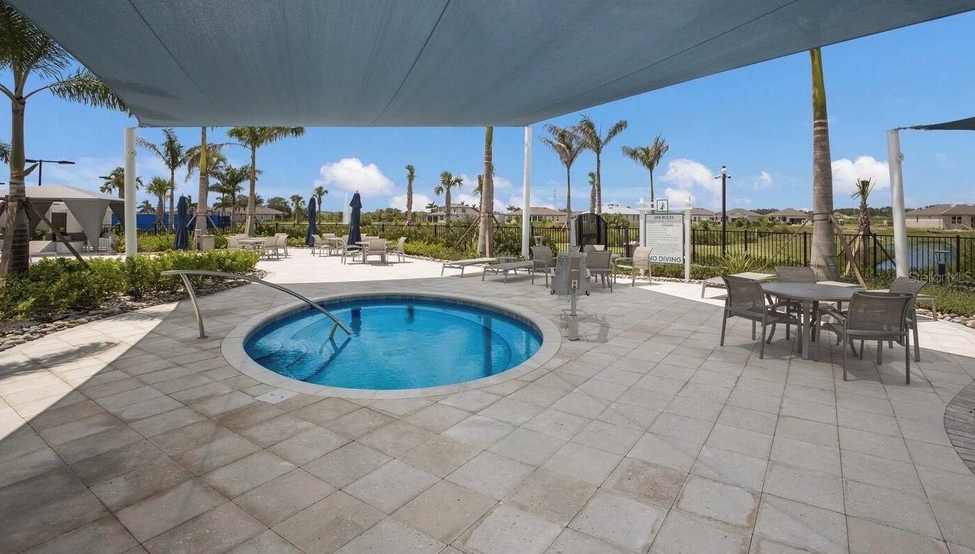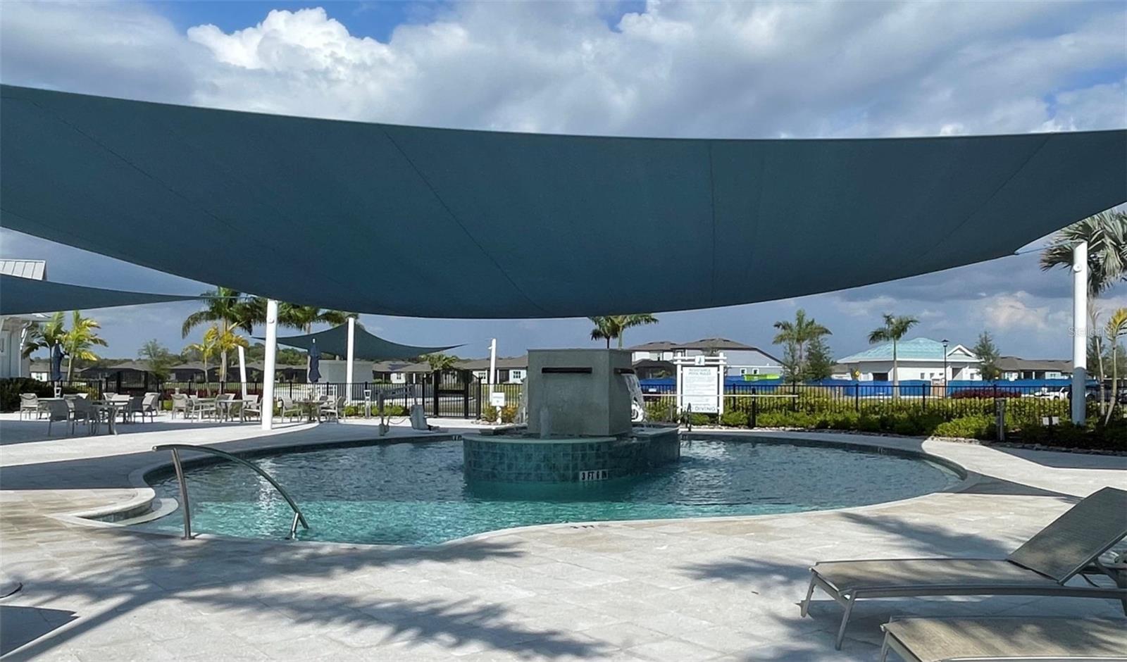 Welcome to this exquisite Stellar model home that boasts 3 bedrooms,3 bathrooms, flex room and a 3-car garage complete with a beautifully spacious paver lanai with fountain and powered hurricane shades/shields! The exterior of this home is truly captivating with its beautiful stoned garage frontage,driveway pavers,elegant landscaping and curbing,enchanting outdoor uplighting and meticulously maintained beds. As you step up to the front door,you’ll notice a professionally enclosed screened in porch and a decorative glass front door leading to an inviting open foyer. To the right,you will find a versatile flex room,that includes glass French doors and plantation shutters. The living room is a perfect space for relaxation and entertainment,featuring a tray ceiling, canned lighting, 72” ceiling fan &floor plug. The kitchen is a chef’s/baker’s dream,offering 42” cabinets with pullouts,soft-close drawers,upgraded KitchenAid stainless steel appliances,of which includes built in oven/microwave and cooktop,stunning quartz countertops,an oversized eat-at countertop island,ROS (under sink) and professionally built walk-in pantry. The guest suite bedroom is a haven of comfort for guests,boasting large windows with plantation shutters, a professionally built spacious closet and a private bathroom. The third bedroom offers privacy and features plantation shutters and closet with a full bathroom in close proximity. The owner’s suite is a tranquil retreat filled with natural light streaming through the multiple windows. The suite showcases plantation shutters, 9 speed modern ceiling fan,upgraded decorative carpet and a generously sized master closet that has been professionally designed with built in shelves and drawers.The owner’s suite bathroom is complete with a framed mirror,quartz counters,custom cabinets and a walk-in shower with a bench.The laundry room is both functional and stylish,featuring upper and lower cabinets and sink. Throughout the home, you will find additional upgrades,such as wood plank tile flooring and an upgraded Lennox pure air system that removes germs and odors from the air. The garage is equipped with 4’ extension,water softener,ceiling hung organizational rack,and the garage floor features a polyaspartic coating that provides durability and aesthetic appeal. Step outside to the covered lanai,which boasts 18x48 of caged tranquility and serene views,as this home is set against the backdrop of a preserved conservation. Picture yourself relaxing on a lounge chair under the included Grand Patio 10' cantilever umbrella,watching and listening to the nature and sound of the fountain waterfall. Within this tranquil area,you’ll find bottle palms at each corner of the lanai,motorized shields(hurricane/sun) outdoor ceiling fan, and a gas line. Enjoy peace of mind with a structural builder warranty still in effect. Del Webb Bayview is a 55+ gated community offers a wealth of amenities for your low monthly HOA fee.Amenities include a clubhouse which offers residents a fitness center,ballroom,clubs,interest groups,planned activities,and an on-site restaurant. Outdoors you will enjoy pickleball,tennis,bocce ball,shuffleboard,community garden,amphitheater,resort style zero entry heated pool,resistance pool,spa,fire pit,and even a dog park!