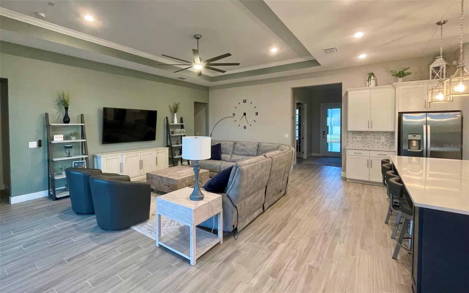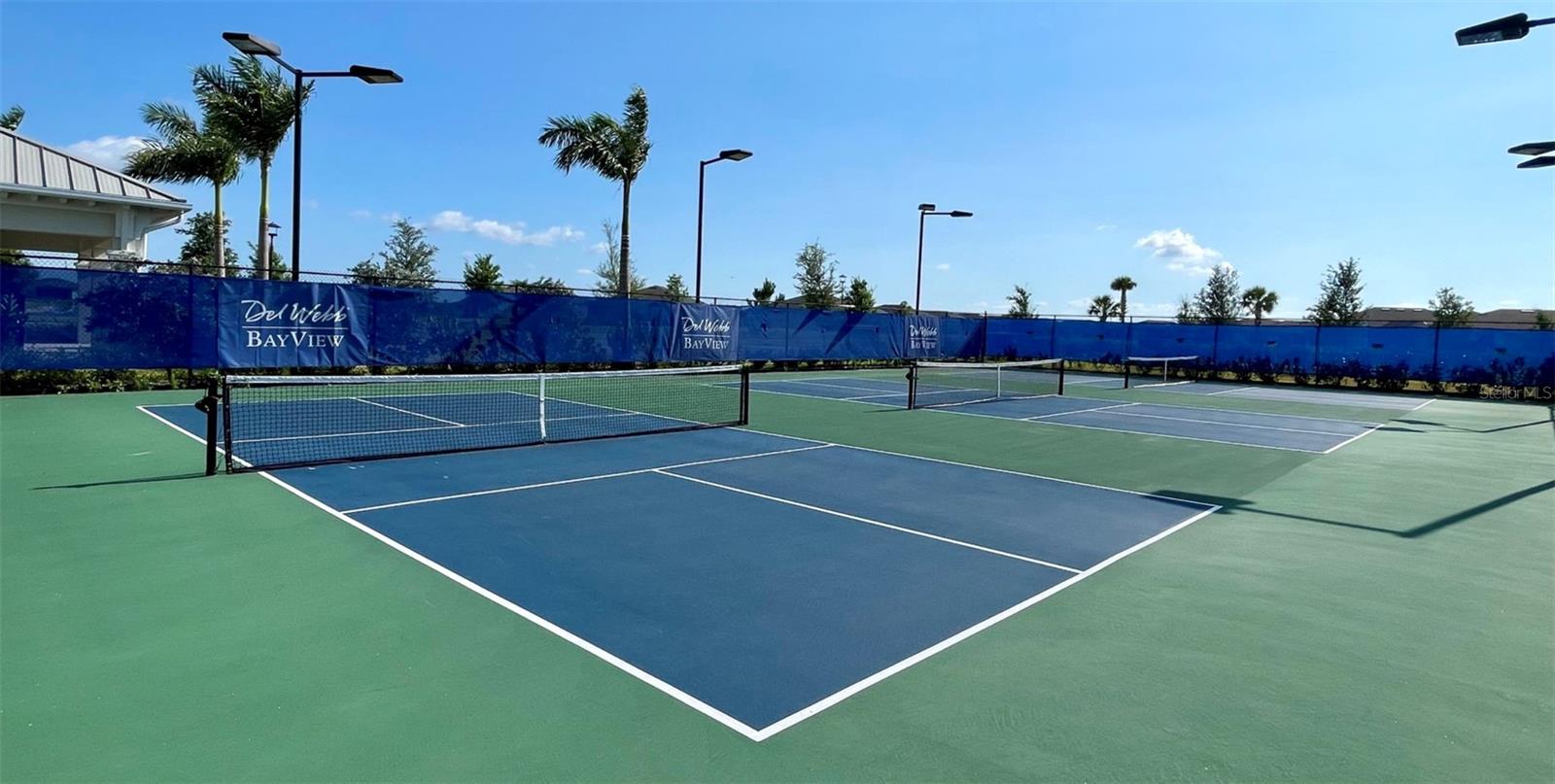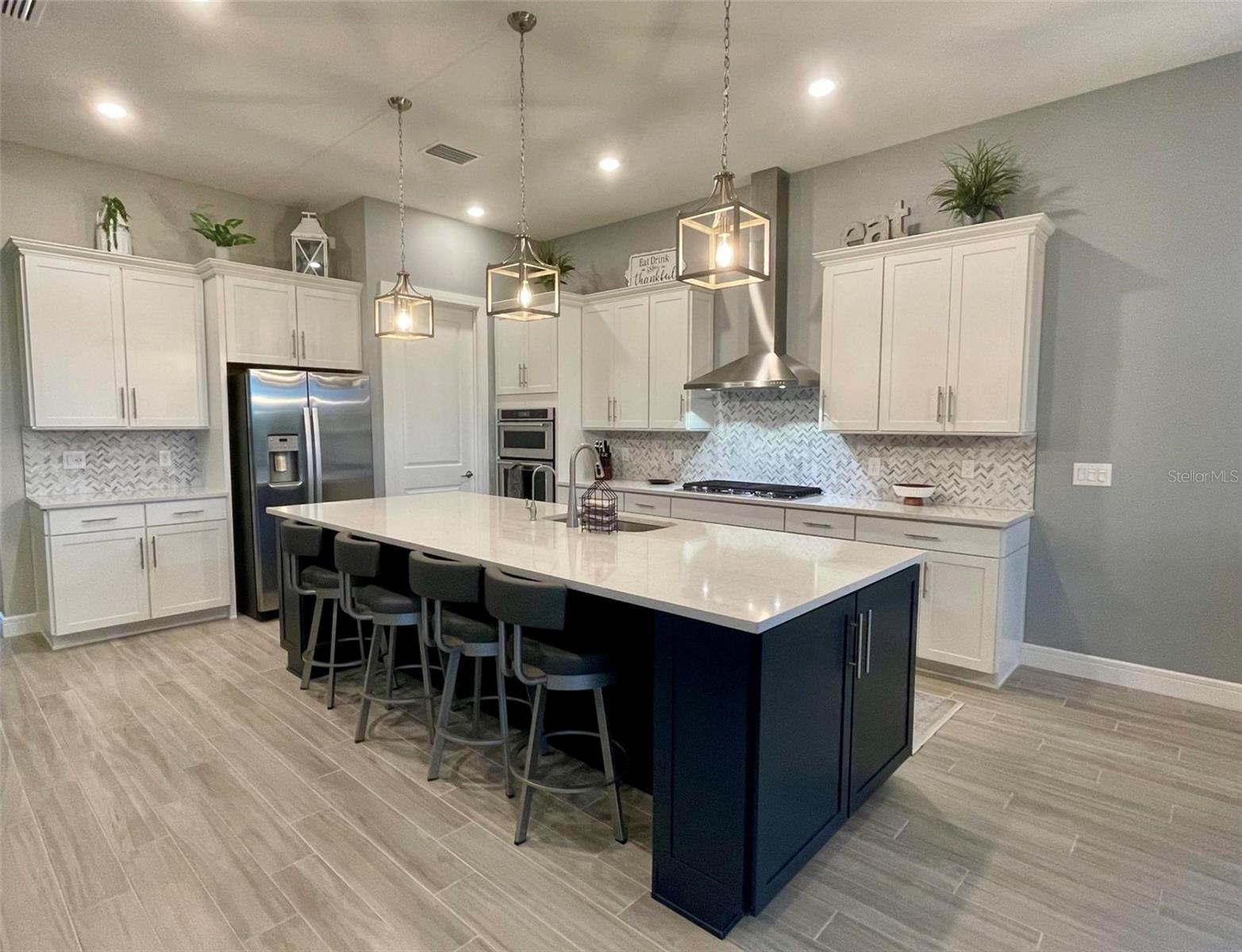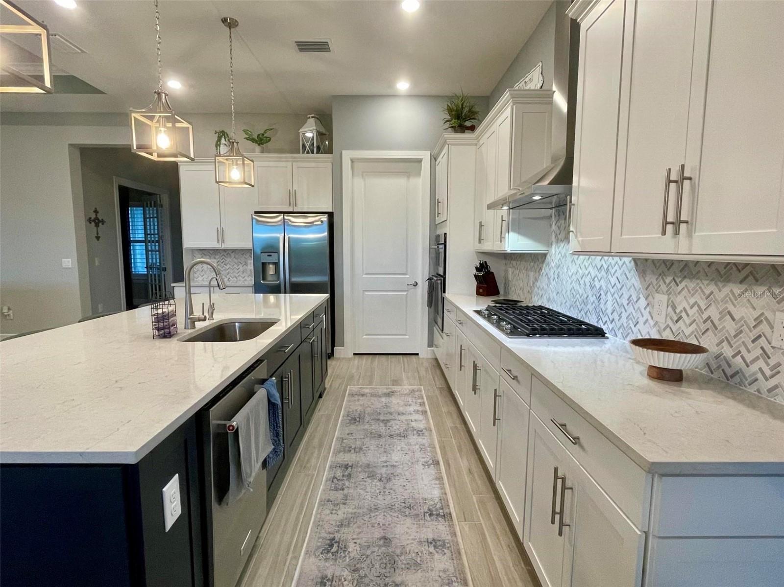 Welcome to this exquisite Stellar model home that boasts 3 bedrooms,3 bathrooms, flex room and a 3-car garage complete with a beautifully spacious paver lanai with fountain and powered hurricane shades/shields! The exterior of this home is truly captivating with its beautiful stoned garage frontage,driveway pavers,elegant landscaping and curbing,enchanting outdoor uplighting and meticulously maintained beds. As you step up to the front door,you’ll notice a professionally enclosed screened in porch and a decorative glass front door leading to an inviting open foyer. To the right,you will find a versatile flex room,that includes glass French doors and plantation shutters. The living room is a perfect space for relaxation and entertainment,featuring a tray ceiling, canned lighting, 72” ceiling fan &floor plug. The kitchen is a chef’s/baker’s dream,offering 42” cabinets with pullouts,soft-close drawers,upgraded KitchenAid stainless steel appliances,of which includes built in oven/microwave and cooktop,stunning quartz countertops,an oversized eat-at countertop island,ROS (under sink) and professionally built walk-in pantry. The guest suite bedroom is a haven of comfort for guests,boasting large windows with plantation shutters, a professionally built spacious closet and a private bathroom. The third bedroom offers privacy and features plantation shutters and closet with a full bathroom in close proximity. The owner’s suite is a tranquil retreat filled with natural light streaming through the multiple windows. The suite showcases plantation shutters, 9 speed modern ceiling fan,upgraded decorative carpet and a generously sized master closet that has been professionally designed with built in shelves and drawers.The owner’s suite bathroom is complete with a framed mirror,quartz counters,custom cabinets and a walk-in shower with a bench.The laundry room is both functional and stylish,featuring upper and lower cabinets and sink. Throughout the home, you will find additional upgrades,such as wood plank tile flooring and an upgraded Lennox pure air system that removes germs and odors from the air. The garage is equipped with 4’ extension,water softener,ceiling hung organizational rack,and the garage floor features a polyaspartic coating that provides durability and aesthetic appeal. Step outside to the covered lanai,which boasts 18x48 of caged tranquility and serene views,as this home is set against the backdrop of a preserved conservation. Picture yourself relaxing on a lounge chair under the included Grand Patio 10' cantilever umbrella,watching and listening to the nature and sound of the fountain waterfall. Within this tranquil area,you’ll find bottle palms at each corner of the lanai,motorized shields(hurricane/sun) outdoor ceiling fan, and a gas line. Enjoy peace of mind with a structural builder warranty still in effect. Del Webb Bayview is a 55+ gated community offers a wealth of amenities for your low monthly HOA fee.Amenities include a clubhouse which offers residents a fitness center,ballroom,clubs,interest groups,planned activities,and an on-site restaurant. Outdoors you will enjoy pickleball,tennis,bocce ball,shuffleboard,community garden,amphitheater,resort style zero entry heated pool,resistance pool,spa,fire pit,and even a dog park!