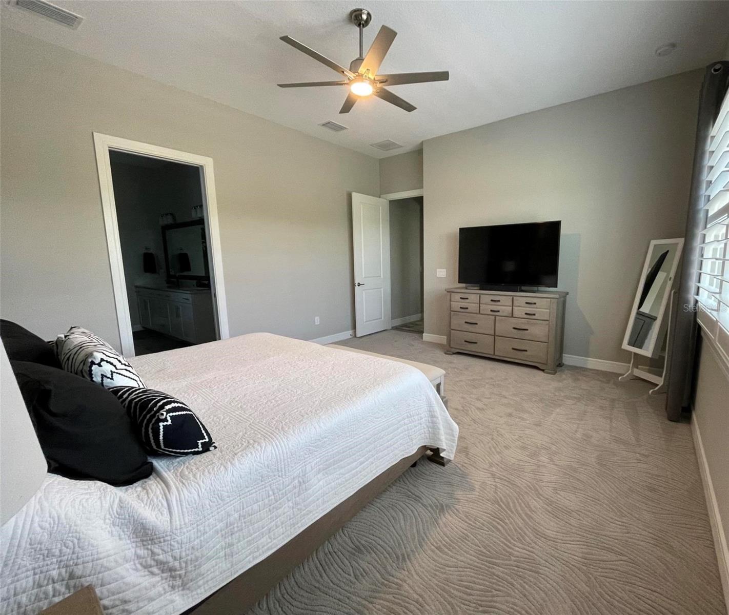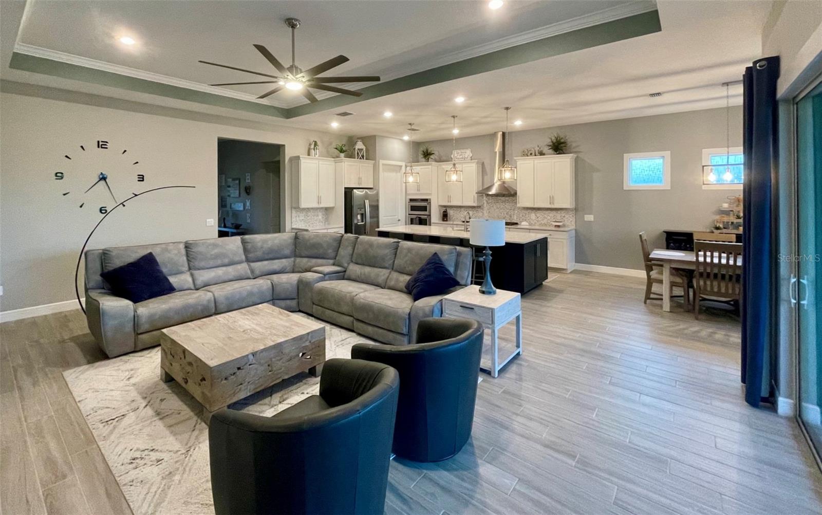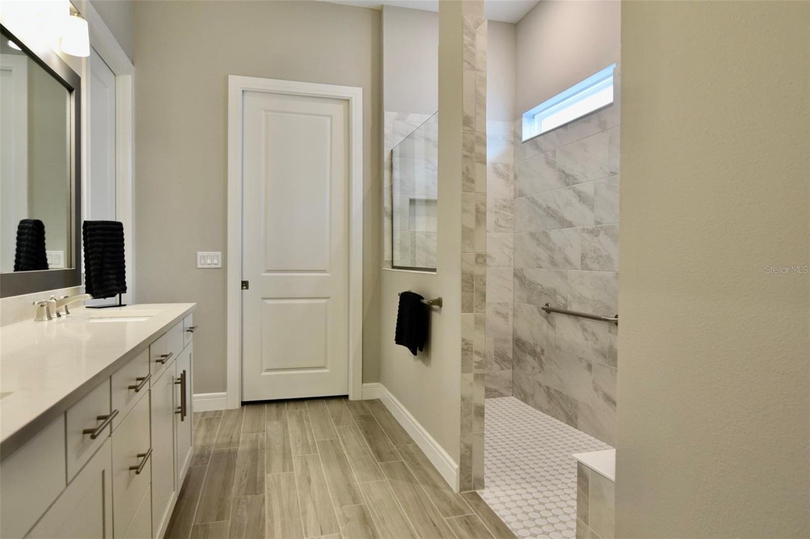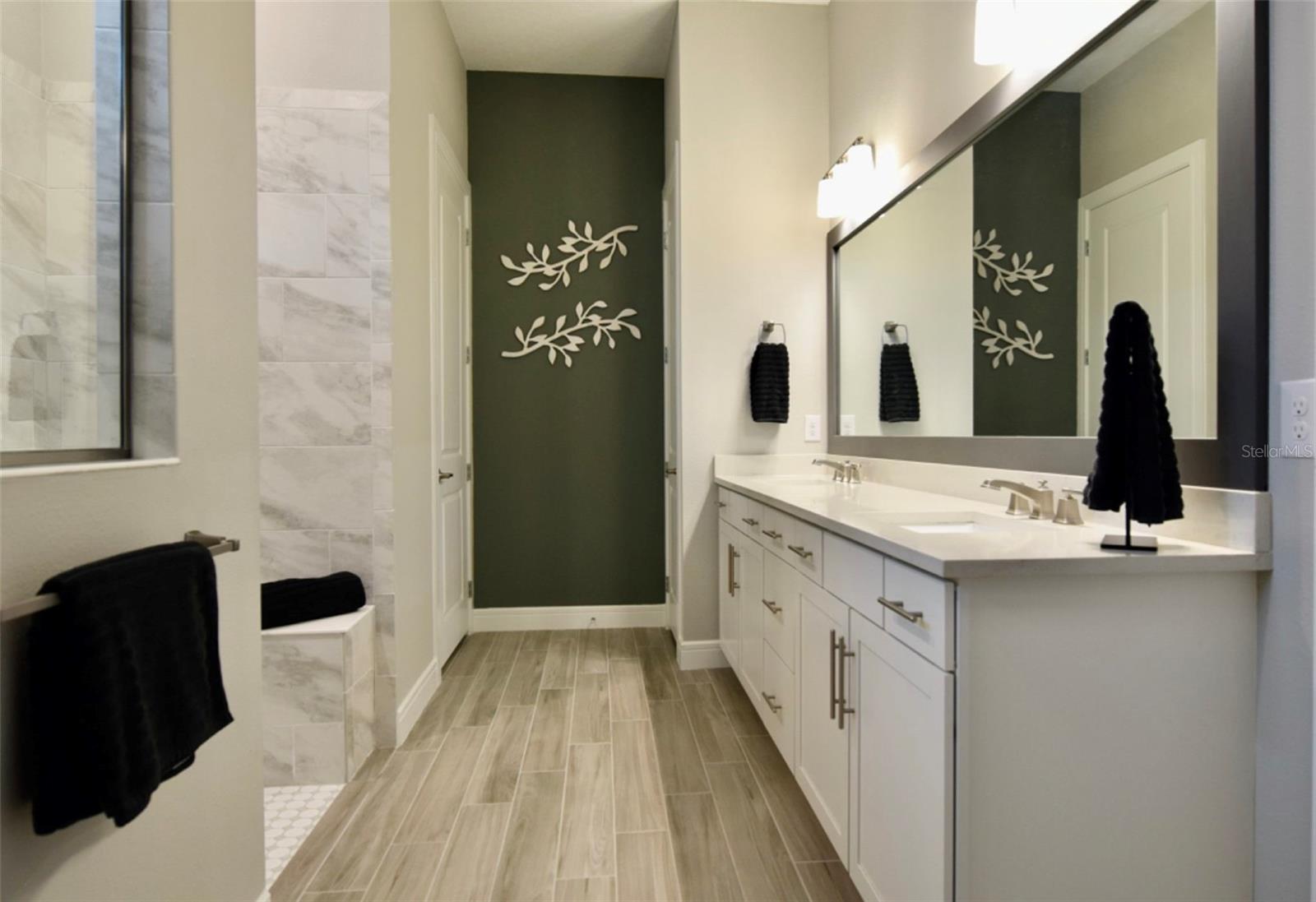 Welcome to this exquisite Stellar model home that boasts 3 bedrooms,3 bathrooms, flex room and a 3-car garage complete with a beautifully spacious paver lanai with fountain and powered hurricane shades/shields! The exterior of this home is truly captivating with its beautiful stoned garage frontage,driveway pavers,elegant landscaping and curbing,enchanting outdoor uplighting and meticulously maintained beds. As you step up to the front door,you’ll notice a professionally enclosed screened in porch and a decorative glass front door leading to an inviting open foyer. To the right,you will find a versatile flex room,that includes glass French doors and plantation shutters. The living room is a perfect space for relaxation and entertainment,featuring a tray ceiling, canned lighting, 72” ceiling fan &floor plug. The kitchen is a chef’s/baker’s dream,offering 42” cabinets with pullouts,soft-close drawers,upgraded KitchenAid stainless steel appliances,of which includes built in oven/microwave and cooktop,stunning quartz countertops,an oversized eat-at countertop island,ROS (under sink) and professionally built walk-in pantry. The guest suite bedroom is a haven of comfort for guests,boasting large windows with plantation shutters, a professionally built spacious closet and a private bathroom. The third bedroom offers privacy and features plantation shutters and closet with a full bathroom in close proximity. The owner’s suite is a tranquil retreat filled with natural light streaming through the multiple windows. The suite showcases plantation shutters, 9 speed modern ceiling fan,upgraded decorative carpet and a generously sized master closet that has been professionally designed with built in shelves and drawers.The owner’s suite bathroom is complete with a framed mirror,quartz counters,custom cabinets and a walk-in shower with a bench.The laundry room is both functional and stylish,featuring upper and lower cabinets and sink. Throughout the home, you will find additional upgrades,such as wood plank tile flooring and an upgraded Lennox pure air system that removes germs and odors from the air. The garage is equipped with 4’ extension,water softener,ceiling hung organizational rack,and the garage floor features a polyaspartic coating that provides durability and aesthetic appeal. Step outside to the covered lanai,which boasts 18x48 of caged tranquility and serene views,as this home is set against the backdrop of a preserved conservation. Picture yourself relaxing on a lounge chair under the included Grand Patio 10' cantilever umbrella,watching and listening to the nature and sound of the fountain waterfall. Within this tranquil area,you’ll find bottle palms at each corner of the lanai,motorized shields(hurricane/sun) outdoor ceiling fan, and a gas line. Enjoy peace of mind with a structural builder warranty still in effect. Del Webb Bayview is a 55+ gated community offers a wealth of amenities for your low monthly HOA fee.Amenities include a clubhouse which offers residents a fitness center,ballroom,clubs,interest groups,planned activities,and an on-site restaurant. Outdoors you will enjoy pickleball,tennis,bocce ball,shuffleboard,community garden,amphitheater,resort style zero entry heated pool,resistance pool,spa,fire pit,and even a dog park!