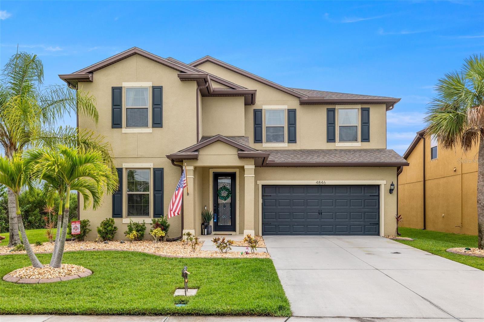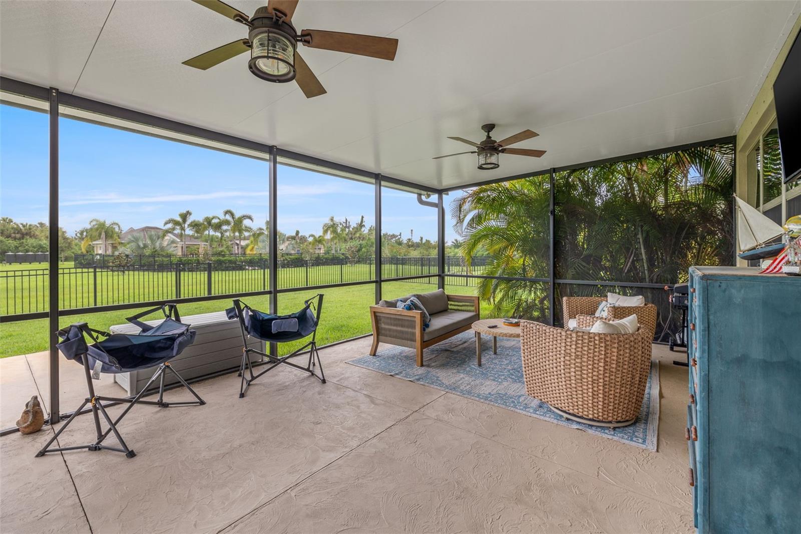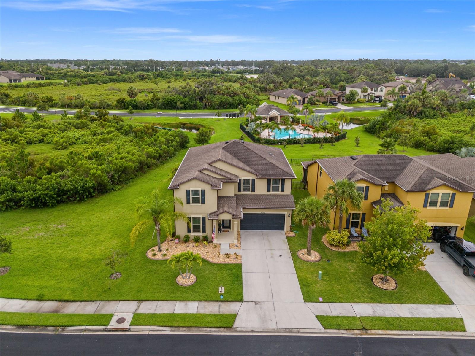 Want to live where no one can build next door to you? Did someone say designated nature preserve? Well if this sounds appealing, keep reading. Step into luxury with this meticulously maintained 4 bed/2.5 bath Sandhill model home, nestled in the gated area of Harrison Ranch. Built in 2017, this home exudes pride of ownership and offers a premium lot with minimal traffic, a large green space on one side, and no rear neighbors, ensuring privacy and tranquility. The outdoor space is a true oasis, featuring fresh landscaping, curbing around flower beds, and a custom front door. The kitchen boasts upgrades including a butler’s pantry with quartz countertops, wine refrigerator, and shiplap backsplash, as well as stainless steel appliances, granite countertops, and under cabinet lighting. The kitchen seamlessly flows into the spacious family room and lanai, perfect for hosting gatherings. The main floor also features a formal dining room and a home office with double doors. Upstairs, a large bonus room, primary suite, three spacious bedrooms, and a laundry room await. The primary suite is a retreat in itself, offering an oversized bedroom, tray ceiling, large walk-in closet, and a bonus area with laminate flooring, ideal for a home office or personal gym. The screened lanai, complete with ceiling fans and textured concrete flooring, leads to an extended patio area, perfect for outdoor grilling. The fenced backyard provides ample space and potential for a pool addition. Additional features include hurricane shutters, gutters, and an irrigation system. Residents of the gated area have access to a community pool just a short walk from the backyard, offering the convenience of a pool without the upkeep and expense. Furthermore, Harrison Ranch provides an array of amenities including a community center with a Jr Olympic swimming pool, fitness center, tennis courts, walking trails, and more. Conveniently located for an easy commute to Bradenton, Sarasota, St Petersburg, or Tampa, and just a short drive to several beaches, this home is the epitome of comfort and elegance in the desirable Harrison Ranch community.