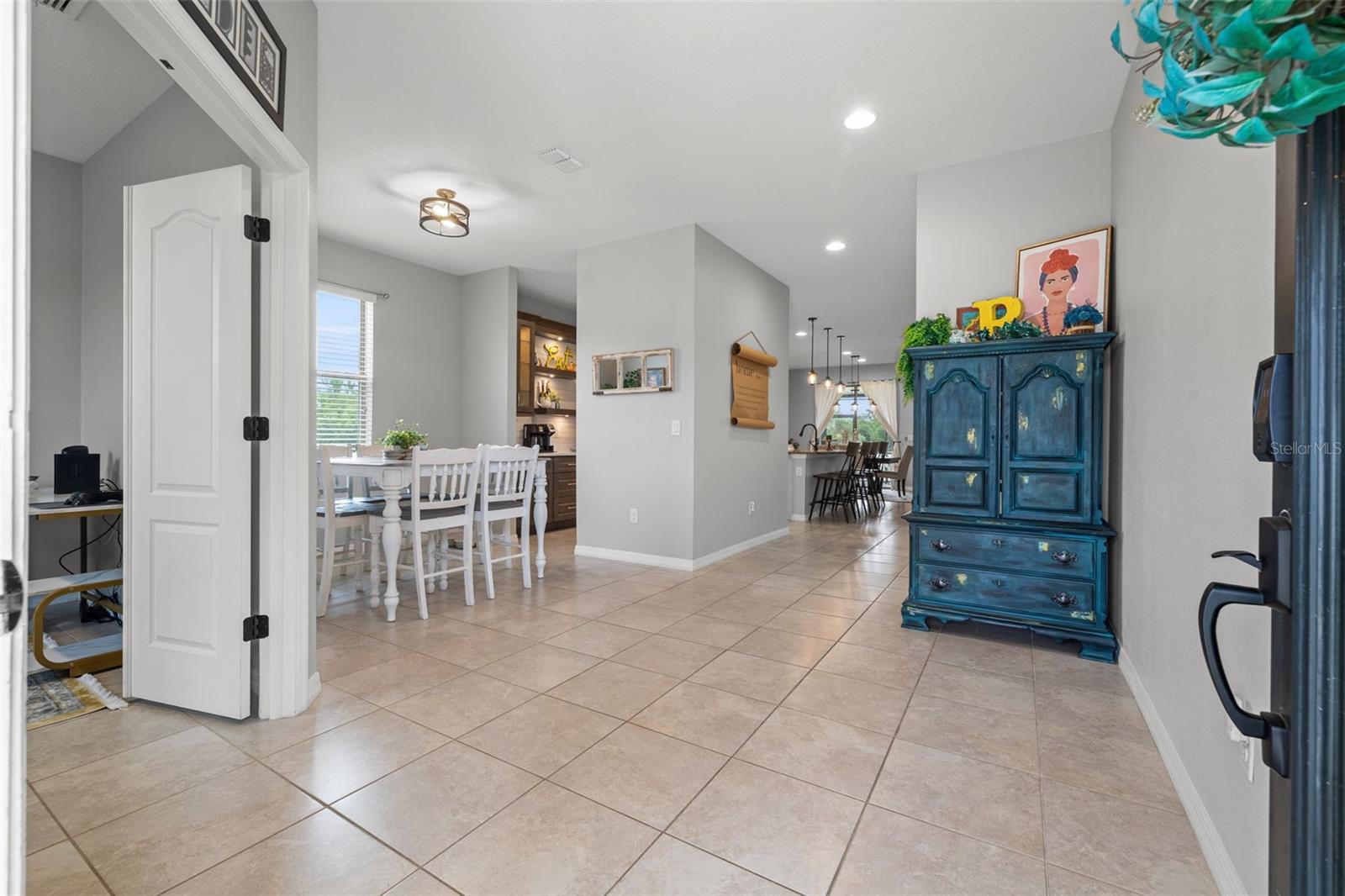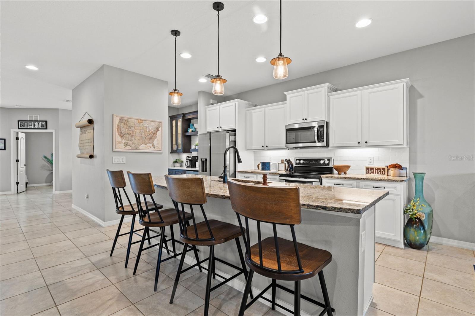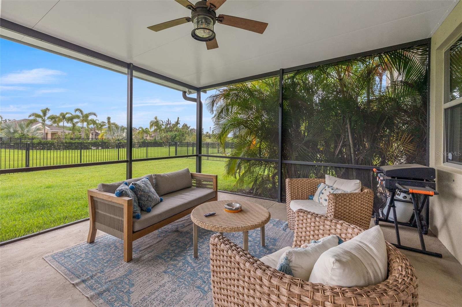 Want to live where no one can build next door to you? Did someone say designated nature preserve? Well if this sounds appealing, keep reading. Step into luxury with this meticulously maintained 4 bed/2.5 bath Sandhill model home, nestled in the gated area of Harrison Ranch. Built in 2017, this home exudes pride of ownership and offers a premium lot with minimal traffic, a large green space on one side, and no rear neighbors, ensuring privacy and tranquility. The outdoor space is a true oasis, featuring fresh landscaping, curbing around flower beds, and a custom front door. The kitchen boasts upgrades including a butler’s pantry with quartz countertops, wine refrigerator, and shiplap backsplash, as well as stainless steel appliances, granite countertops, and under cabinet lighting. The kitchen seamlessly flows into the spacious family room and lanai, perfect for hosting gatherings. The main floor also features a formal dining room and a home office with double doors. Upstairs, a large bonus room, primary suite, three spacious bedrooms, and a laundry room await. The primary suite is a retreat in itself, offering an oversized bedroom, tray ceiling, large walk-in closet, and a bonus area with laminate flooring, ideal for a home office or personal gym. The screened lanai, complete with ceiling fans and textured concrete flooring, leads to an extended patio area, perfect for outdoor grilling. The fenced backyard provides ample space and potential for a pool addition. Additional features include hurricane shutters, gutters, and an irrigation system. Residents of the gated area have access to a community pool just a short walk from the backyard, offering the convenience of a pool without the upkeep and expense. Furthermore, Harrison Ranch provides an array of amenities including a community center with a Jr Olympic swimming pool, fitness center, tennis courts, walking trails, and more. Conveniently located for an easy commute to Bradenton, Sarasota, St Petersburg, or Tampa, and just a short drive to several beaches, this home is the epitome of comfort and elegance in the desirable Harrison Ranch community.