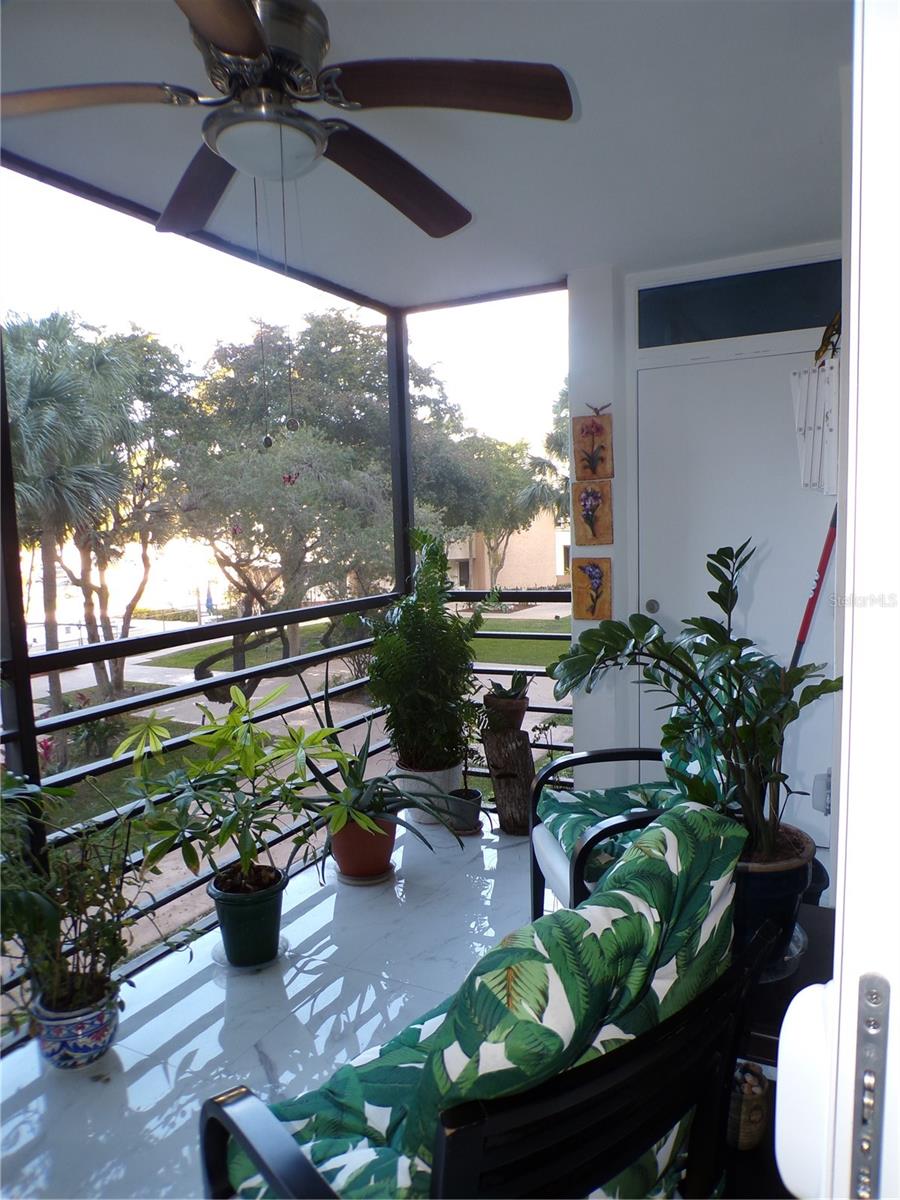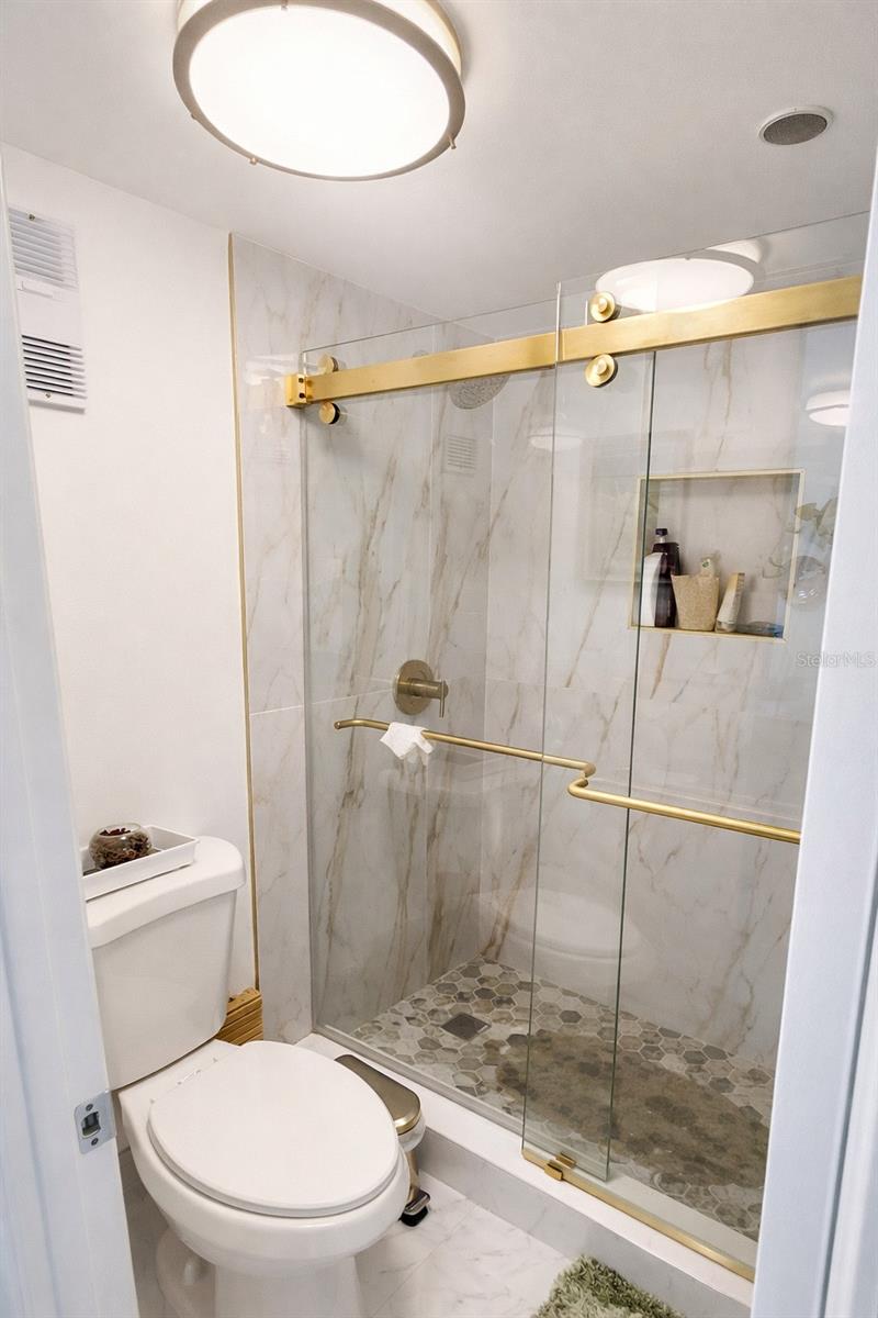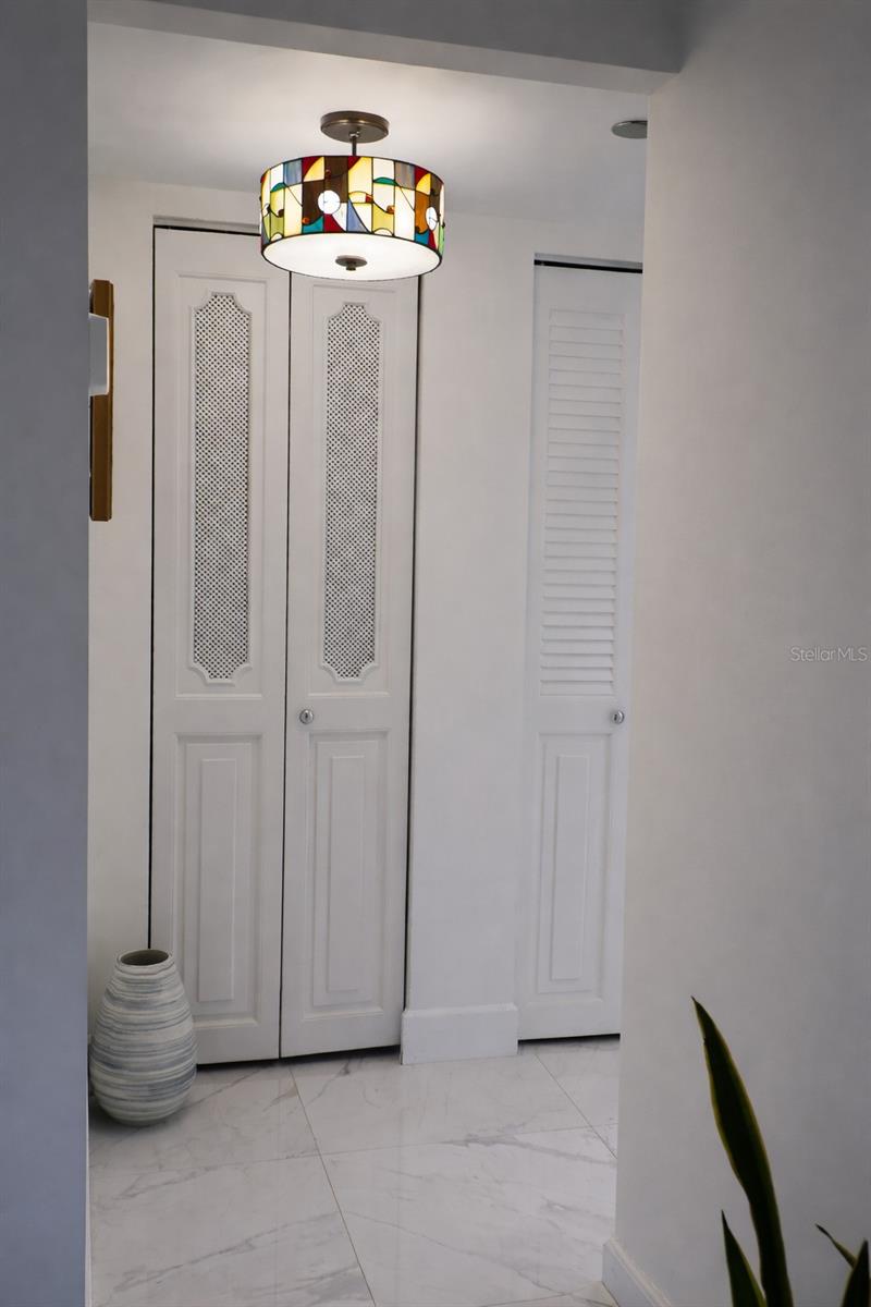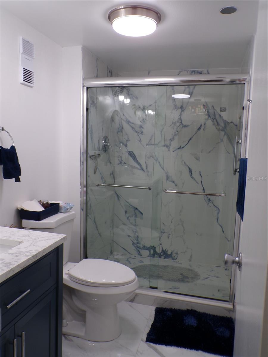 One or more photo(s) has been virtually staged. Welcome to this stunning 55+ community, fully remodeled condominium featuring two bedrooms and two bathrooms, complete with a balcony. The unit boasts brand new high-gloss ceramic tile flooring throughout, a modern kitchen equipped with new cabinets and stainless steel appliances, and both bathrooms have been updated with walk-in showers, eliminating the need for tubs. The master bathroom features a granite countertop vanity, while the master bedroom offers two spacious walk-in closets along with an additional linen closet. The hallway adjacent to the second guest bathroom includes two more closets for extra storage. All windows in the bedrooms, as well as the sliding glass door to the balcony, are designed to withstand high winds and debris, enhancing energy efficiency and sound insulation. The condominium is also equipped with an interior sprinkler system for fire safety and provides a view of the pool area. The main entrance of the building features a dedicated security lock and controlled access. Visitors are required to contact the owner for entry. Located in a gated community with 24/7 security, residents can enjoy a variety of amenities, including a courtesy bus service, Pembroke Lakes Golf Course, a clubhouse, swimming pools, an exercise room, tennis courts, and walking/jogging paths. The property is conveniently situated near Pembroke Lakes Elementary, Walter C. Young Middle School, and Charles W. Flanagan High School. This move-in-ready condo is eagerly awaiting its next owners.
