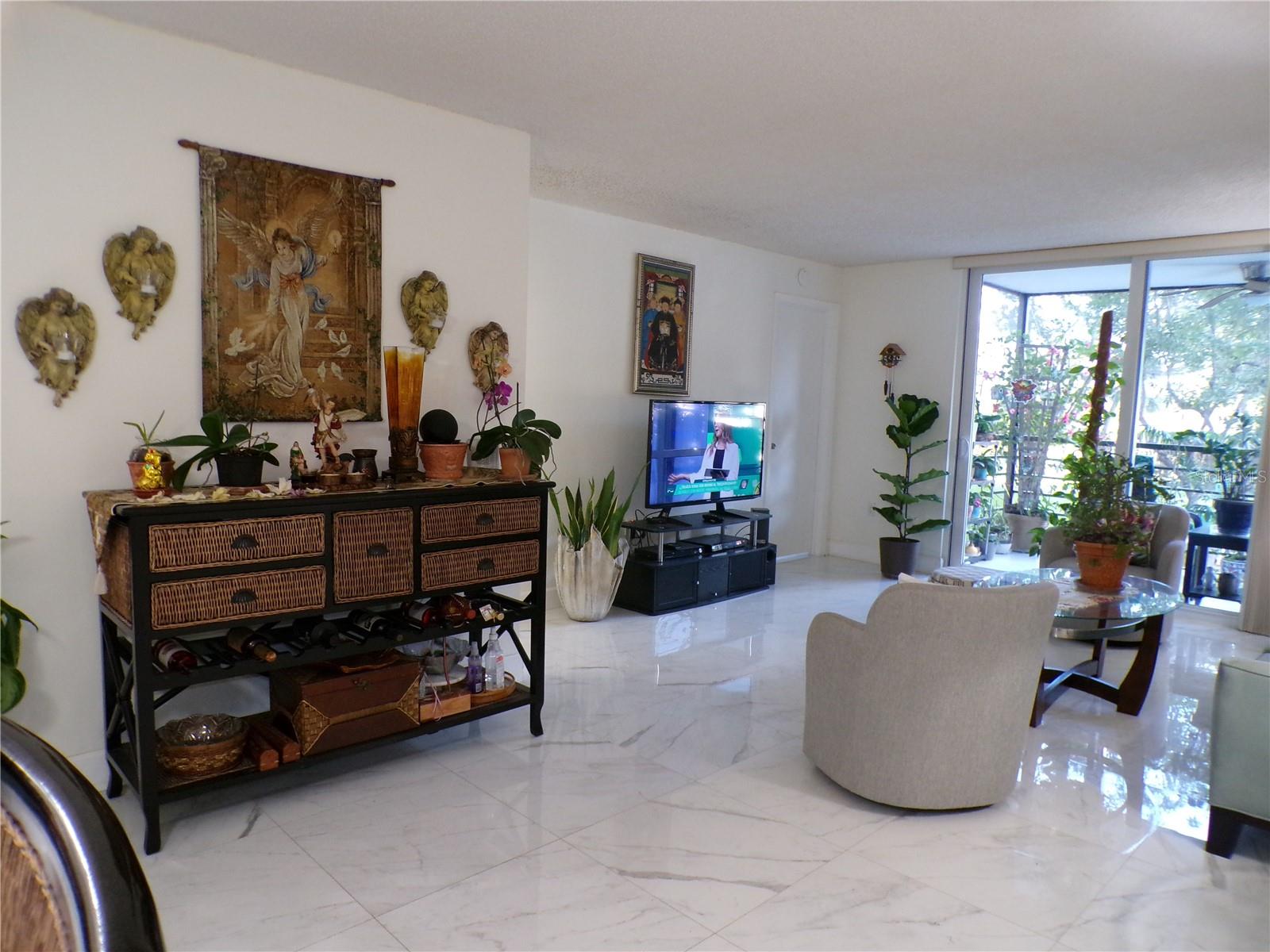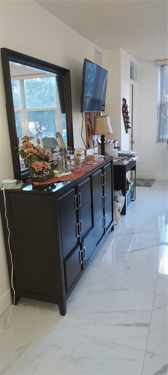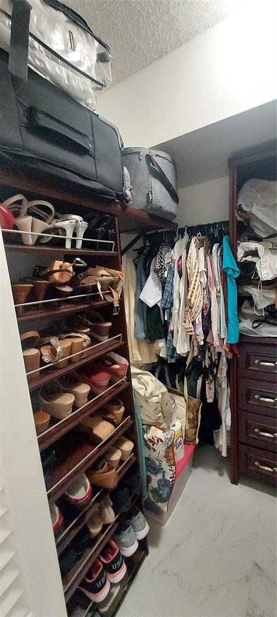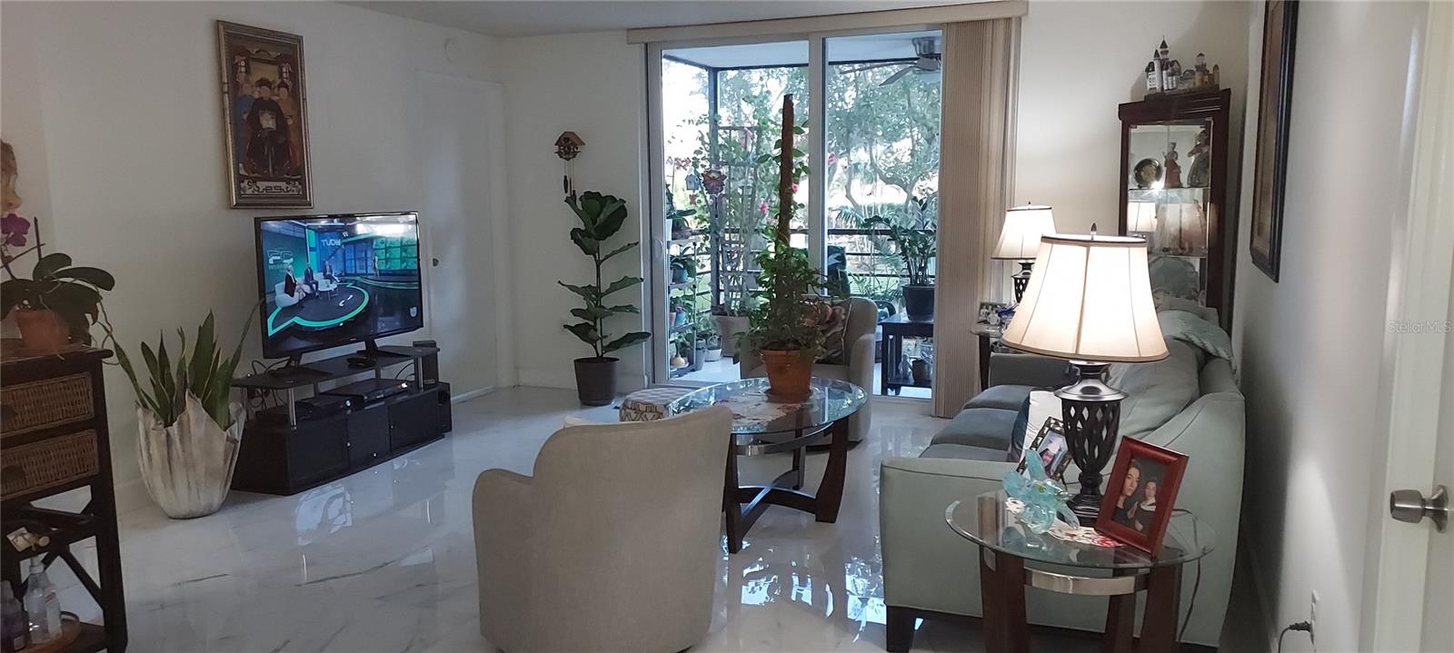 One or more photo(s) has been virtually staged. Welcome to this stunning 55+ community, fully remodeled condominium featuring two bedrooms and two bathrooms, complete with a balcony. The unit boasts brand new high-gloss ceramic tile flooring throughout, a modern kitchen equipped with new cabinets and stainless steel appliances, and both bathrooms have been updated with walk-in showers, eliminating the need for tubs. The master bathroom features a granite countertop vanity, while the master bedroom offers two spacious walk-in closets along with an additional linen closet. The hallway adjacent to the second guest bathroom includes two more closets for extra storage. All windows in the bedrooms, as well as the sliding glass door to the balcony, are designed to withstand high winds and debris, enhancing energy efficiency and sound insulation. The condominium is also equipped with an interior sprinkler system for fire safety and provides a view of the pool area. The main entrance of the building features a dedicated security lock and controlled access. Visitors are required to contact the owner for entry. Located in a gated community with 24/7 security, residents can enjoy a variety of amenities, including a courtesy bus service, Pembroke Lakes Golf Course, a clubhouse, swimming pools, an exercise room, tennis courts, and walking/jogging paths. The property is conveniently situated near Pembroke Lakes Elementary, Walter C. Young Middle School, and Charles W. Flanagan High School. This move-in-ready condo is eagerly awaiting its next owners.