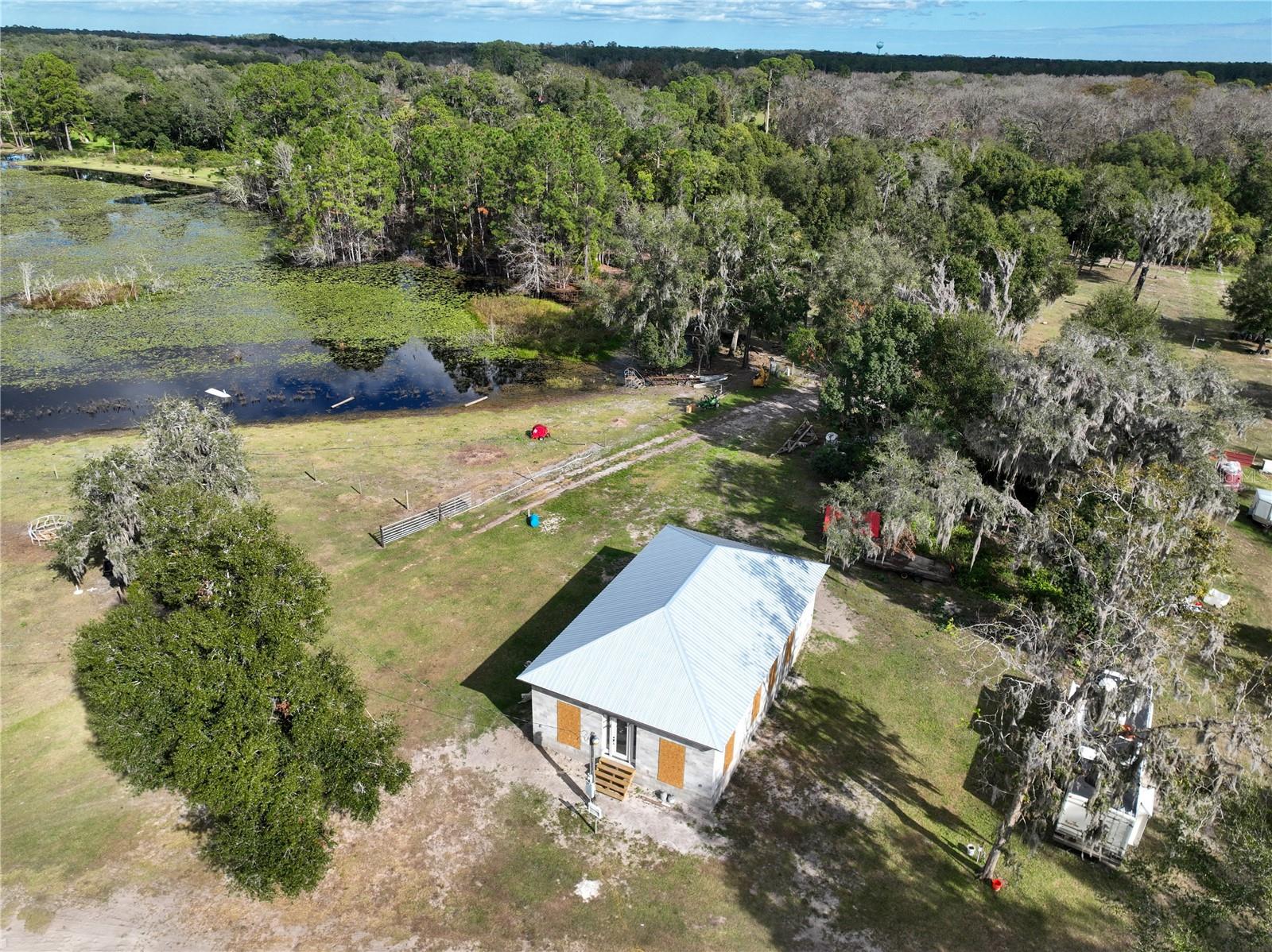 Under Construction. Discover a rare opportunity to own 19 acres of serene, versatile land with endless potential! This property boasts 11 acres fully fenced with multiple pastures, a tranquil pond, a pole barn, and a half-built, 3-bedroom, 2-bath home. Perfect for those looking to finish a dream home tailored to their style, this property is ready to become a peaceful retreat or working homestead. Across the street, an additional 8 wooded acres offers picturesque trails leading to another pond, providing an ideal setting for outdoor enthusiasts or exploring nature. Located near the Shell Harbor Boat Launch and Lake George, this property is perfect for water lovers, while the sands of Ormond Beach are just under 30 miles away. With its blend of rural charm and proximity to Florida’s stunning coastline, this property is truly one-of-a-kind. Explore the possibilities and make this unique haven yours!