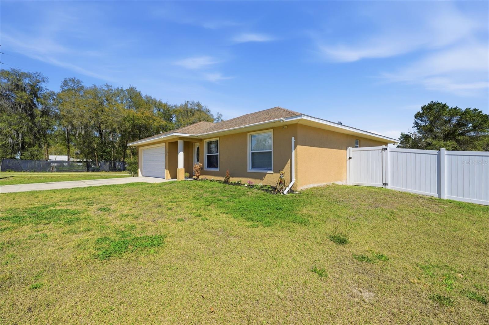 Well-maintained 3BR/2BA home with a 2-car attached garage on an oversized corner lot (over 1/2 acre) in a quiet neighborhood . Conveniently located in Pierson City Limits, near schools, shopping, and everyday amenities—ideal for anyone seeking space and location. Enjoy outdoor living on the covered patio, plus added privacy with a vinyl fence (2025). Notable upgrades include HVAC (2019), Samsung kitchen appliance package (2024), smart water heater (July 2025), and a new front door with keypad entry. Additional features include a wireless remote-controlled fan/light in the living room and washer & dryer included. May qualify for homebuyer assistance. No owner financing. Schedule your showing today!