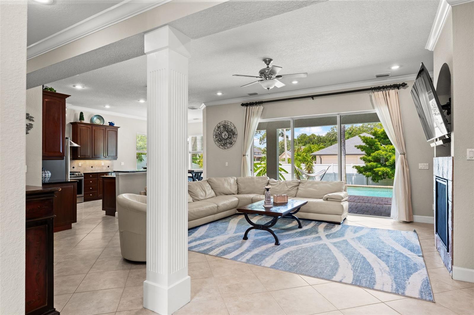 EXECUTIVE SALTWATER POOL HOME: Drive past the horse stables and enter the gated community of Heritage Reserve. As you arrive onto your brick-paved driveway expect to see little ones riding their bikes and playing basketball on evenings and weekends in this quaint gated community of 20 residences. The home's traditional architectural style is turreted with special alcoves in upstairs bedrooms, contemporary columns, volume ceilings, crown moulding, and a view of the sparkling pool upon entering the home. This property masterfully executed an open floor plan without lacking special spaces for privacy such as a dry bar, separate dining room or study, and private bathrooms. The main level features an open floor plan, spacious storage solutions, and Master Bedroom + walk-in closet + en-suite bathroom complete with a separate wet room. Granite countertops, a gas stove, and solid wood cabinetry throughout compliment high ceilings and crown molding. A view of the sparkling pool and tropical Palm Trees through triple sliding glass pocket doors greets you as soon as you enter the home. The oversized covered patio featuring resort-style drapery, a 4K TV, and plenty of space for seating is perfect for entertaining This executive estate seamlessly blends fine outdoor living with mindful interior design. Enjoy a reprieve from guests in a spacious first level Primary Suite or any of the 3 additional bedrooms upstairs; one upstairs bedroom features its own remodeled private bathroom with another remodeled full bathroom upstairs. Enjoy complete peace of mind in Heritage Reserve, an idyllic neighborhood. SPECIAL FEATURES: TESLA charger in the garage, the backyard is studded for a hot tub installation, SMART features, brick-paved driveway and extended brick-paved pool patio, a fully-fenced in backyard with Banana Trees, Pear Tree, Mango, and Jackfruit trees. Sugar-sand beaches are just 15 minutes away, 20 minute from local events, dining options, and high-brow museums in downtown St. Pete, and Tampa International Airport is just a 25 minute drive away. Walking distance to parks, equestrian trails, and horse stables. Less than 2 miles from Mainlands Golf Course and less than 5min from boat storage for Boater Enthusiasts who'd like to live High & Dry! NON-FLOOD ZONE! Buyer responsible for due diligence. Schedule your private showing!