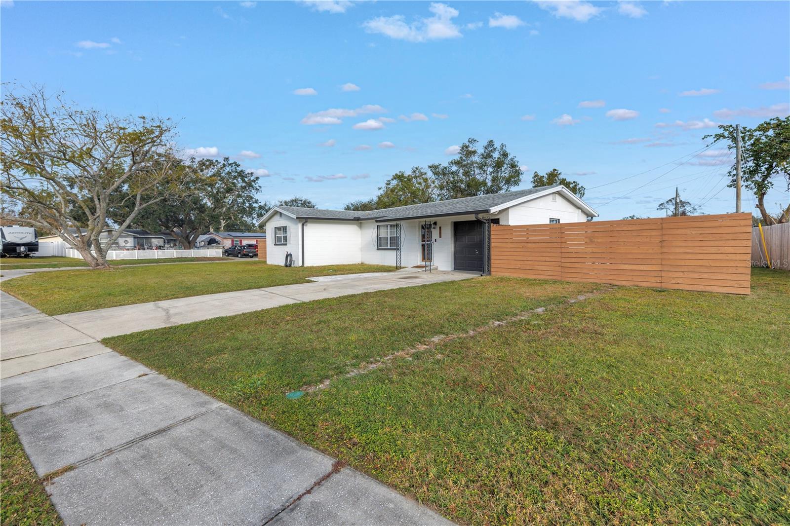 Discover this beautifully updated three-bedroom, one-bath, one-car garage home in the centrally located Greendale Estates neighborhood of Pinellas Park. With 1,020 square feet of well-designed living space and a spacious one-car garage, this home has everything you need. From the moment you step inside, you’ll notice the thoughtful updates and charming details throughout. The heart of the home is the newly renovated kitchen, featuring sleek quartz countertops, ample cabinet space, and modern finishes that make cooking and entertaining a breeze. The adjoining dining room offers a bright and airy space with sliding glass doors leading to a covered brick patio, perfect for year-round enjoying Florida’s outdoor lifestyle. The backyard is also fully fenced in, and if your dog is looking for a new yard, they will be impressed with the space! Relax in the generously sized primary bedroom, with abundant closet space and plenty of room to unwind. The home is packed with storage solutions and closet space, ensuring every item has its place. The cozy living room includes built-ins for added convenience and charm. Recent upgrades include impact windows, water heater, air conditioning, and updates to the electrical and plumbing systems in recent years, giving you peace of mind and move-in-ready comfort. Conveniently situated near stunning beaches, vibrant shopping destinations, top-rated restaurants, close to neighborhood parks and easy access to the interstate, this home offers charm and convenience in an ideal location. Don’t miss the opportunity to make this move-in-ready gem your own!