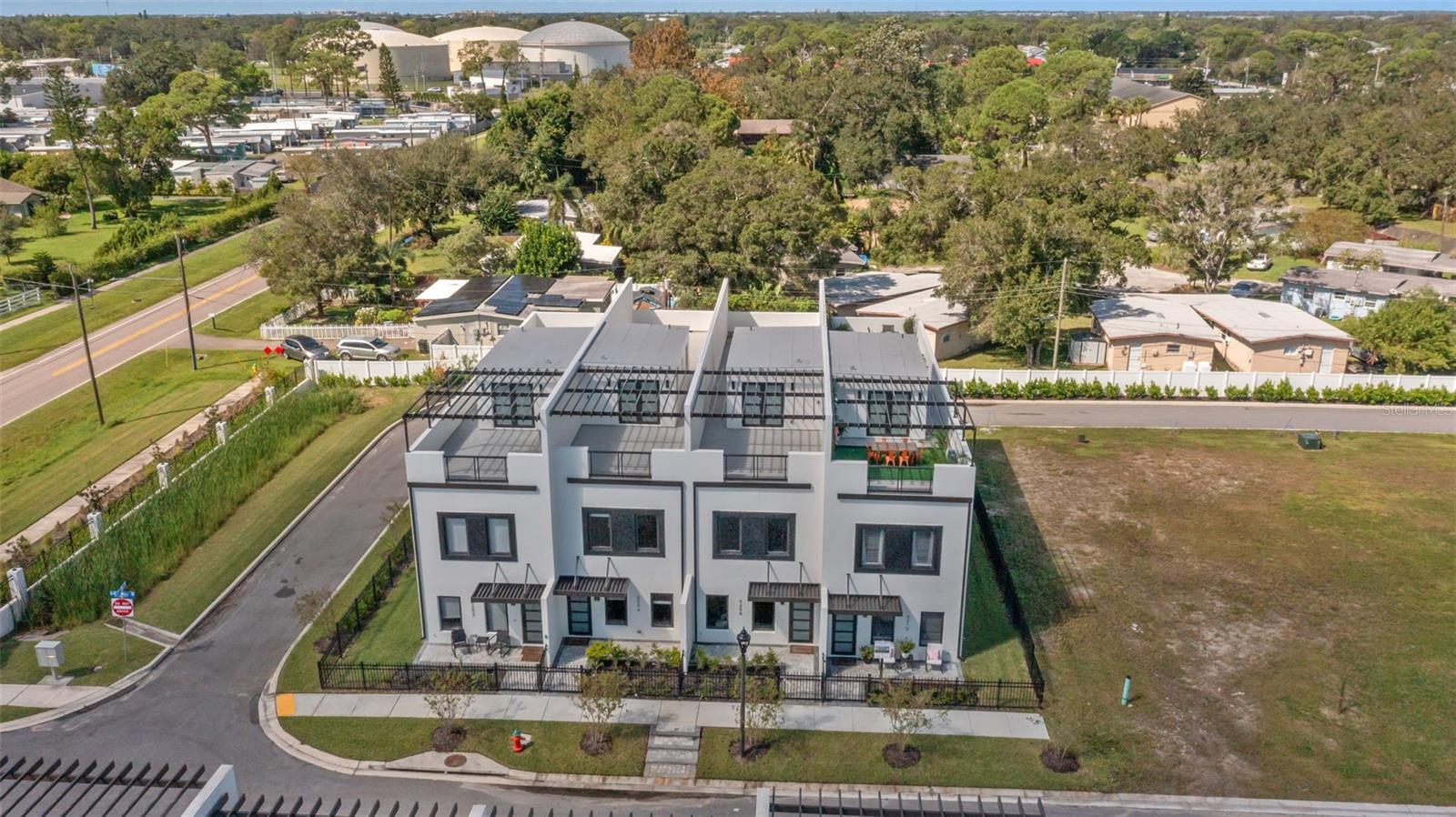 PHASE 2 OF CONSTRUCTION is schedule to begin within the new few weeks!!!! Welcome to the brand new Latitudes in the Park, where luxury living reaches new heights in the heart of Pinellas Park. This exclusive gated community sits high and dry 21 feet above sea level, SAY GOODBYE TO FLOOD INSURANCE! We are glad to announce the community pool is now COMPLETED! Th This community will feature 25 units when completed, and we only have TWO move in ready units left! Currently this is our LAST end unit available in the first phase of construction. The builders preferred lender is now offering 100% financing, for these last remaining units!! This unit features an UPGRADED appliance package, closet build outs and an outdoor kitchen on your 3rd floor patio!!! These three-story residences, complete with massive rooftop terraces, embody contemporary living, showcasing an open floor plan seamlessly fusing kitchen, dining, and living spaces. The kitchen, a culinary haven, boasts quartz countertops, solid wood cabinets, and a large island, effortlessly blending style with functionality, distinguished by 10-foot ceiling heights. The primary bedroom is on the second floor and features a huge walk-in closet, an en-suite bathroom adorned with high-level finishes, including a generous walk-in shower and dual vanities. Two additional bedroom are located on the second floor along with generous size laundry room and half bathroom. Ascend to the third floor, where the bonus loft leads to your rooftop terrace a haven with two sitting areas, water, and electric connections for a potential outdoor kitchen. Each townhome includes a 2 car garage and private driveway in the back. Embrace MAINTENANCE FREE living in this community where the community will pressure clean the buildings for you, water the lawn, mow the yards, maintain the landscaping and paint the buildings for you. You'll feel safe in this solid 3 story all concrete block construction, with ESW hurricane impact-rated windows and doors. Homeowners will be given a 1 year free gym members at the the BRAND NEW UFC gym located 2 streets away! The gym is set to open early July! To enhance the appeal, the builder extends a generous 2-10 warranty. Latitudes in the Park immerses you in a thriving community. Pinellas Park is an emerging arts hub with galleries, the Pinellas Arts Village, monthly block parties, a local performing arts center, and an array of cafes, shops, and dining experiences. The neighborhood's friendly atmosphere, small businesses, green spaces, and beach community vibe offer exceptional value in the Tampa Bay area. Enjoy proximity to award-winning beaches, nature trails, museums, universities, and major airports. Nearby St. Petersburg and Tampa provide access to championship sports teams, concert venues, theme parks, and a diverse range of dining and shopping options. For an added plus Massey brewery has confirmed they are breaking ground right down the road, along with a new downtown area Are you ready to call Latitudes in the Park your new home?
