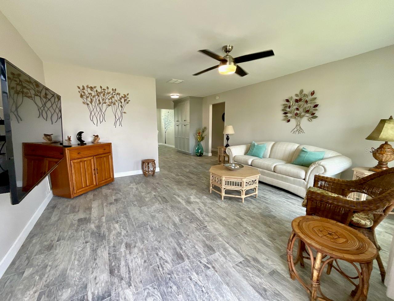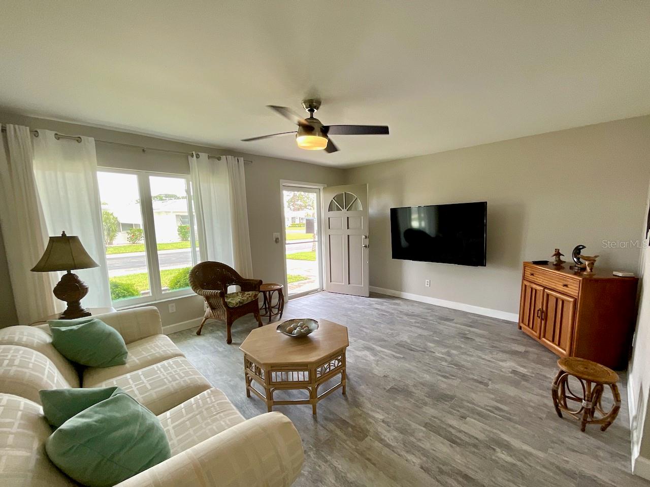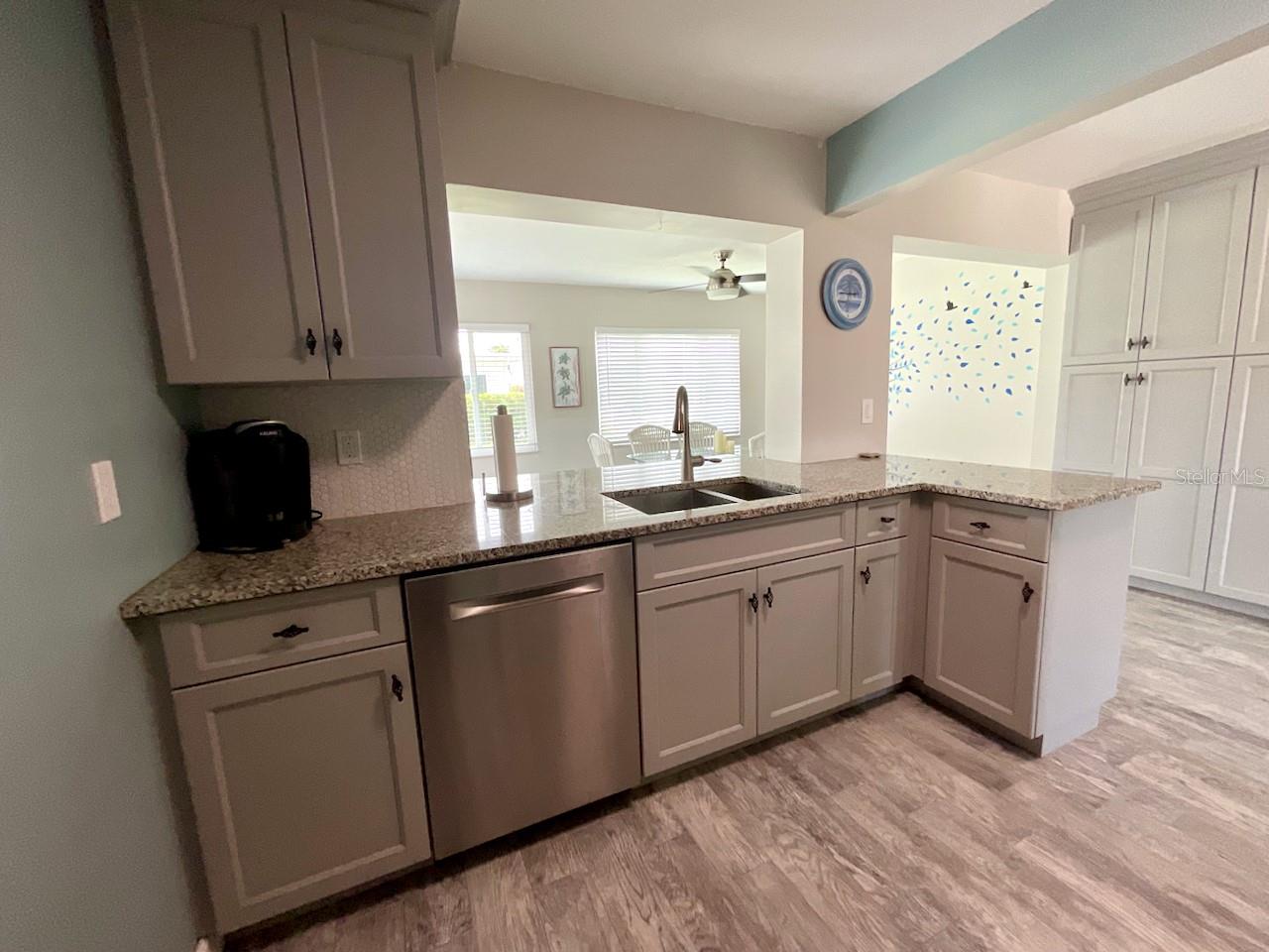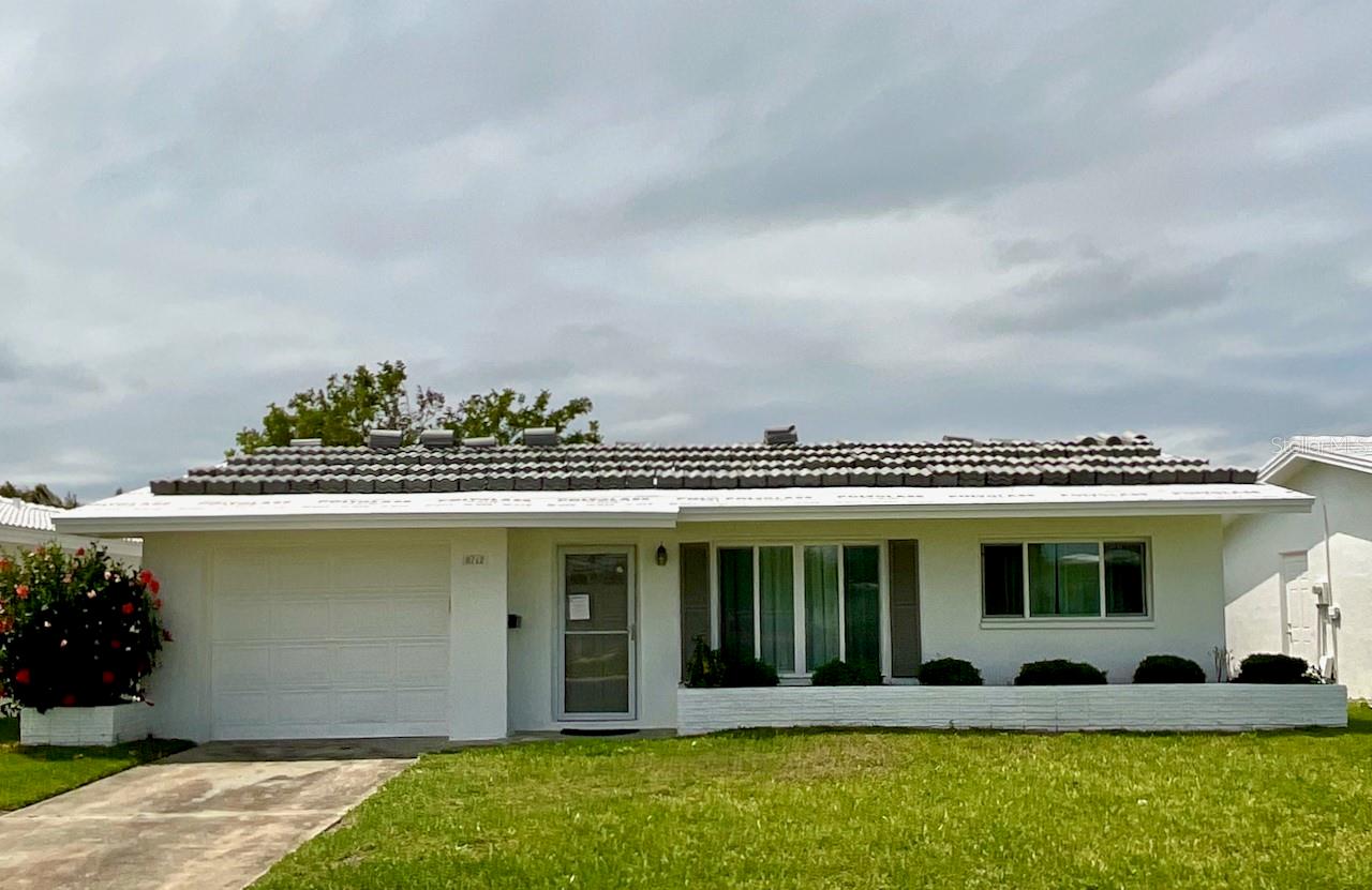 This 2 Bedroom, 1 Bath, 1 Car Garage home with 1044 Sq. Ft. is located in the desirable 55+ community of Mainlands of Tamara. As you enter, you’ll be greeted by porcelain tile flooring that flows throughout the whole house including the two bedrooms. Double-paned, low-E windows in this home help reduce your energy costs and no popcorn ceilings. The roof is being replaced by the Association at this time and will be completed in a few days. The kitchen has modern, stainless-steel appliances, granite counter tops and updated cabinets, as well as, a custom made pantry/storage cabinet for additional small appliances. A convenient laundry/utility room has a washer, dryer and a folding table is just a door away off the kitchen. The family room is designed for versatility, offering space for dining and a cozy office nook, all anchored by a breakfast/service bar that invites social gatherings. The family room’s door to an enclosed patio with a gate is ideal for barbeques and chillin’ with friends. The bathroom has been updated with a step-in shower, comfort commode, and vanity. The air-conditioner was replaced in 2021. Mainlands Unit 4 clubhouse has a heated pool, a library, and a variety of social activities such as dances, card games, and shuffleboard tournaments! This golf-cart friendly community is located just minutes away from the Mainlands Public Golf Course, Mayor Park, airports, and downtown St. Petersburg. Don’t miss this opportunity to join Mainlands community that celebrates life and leisure. Call today to schedule your private showing!