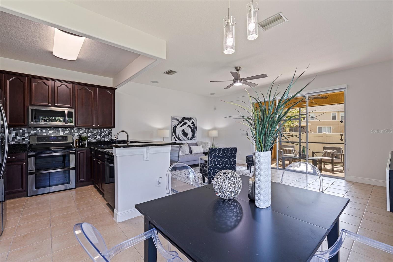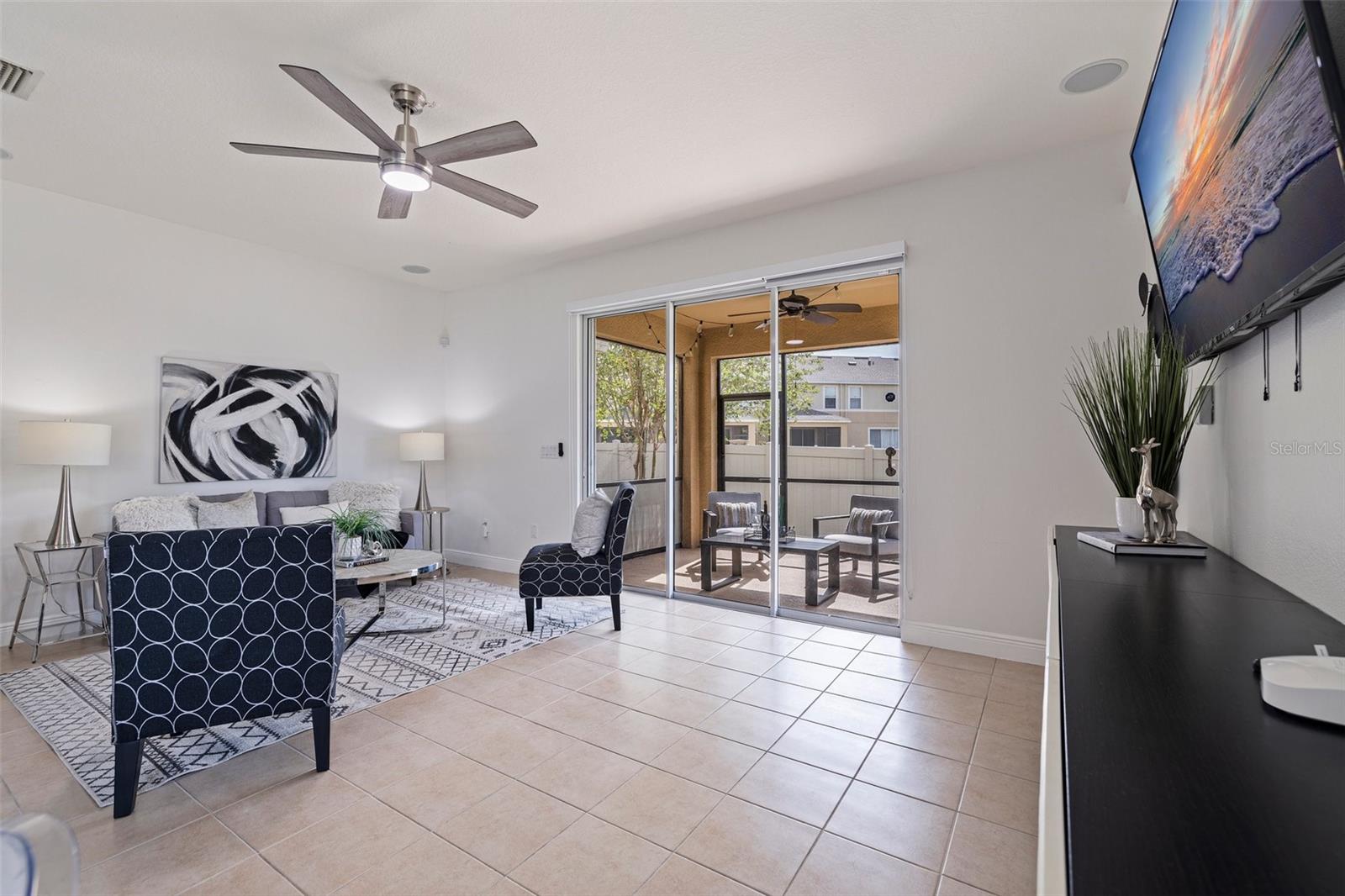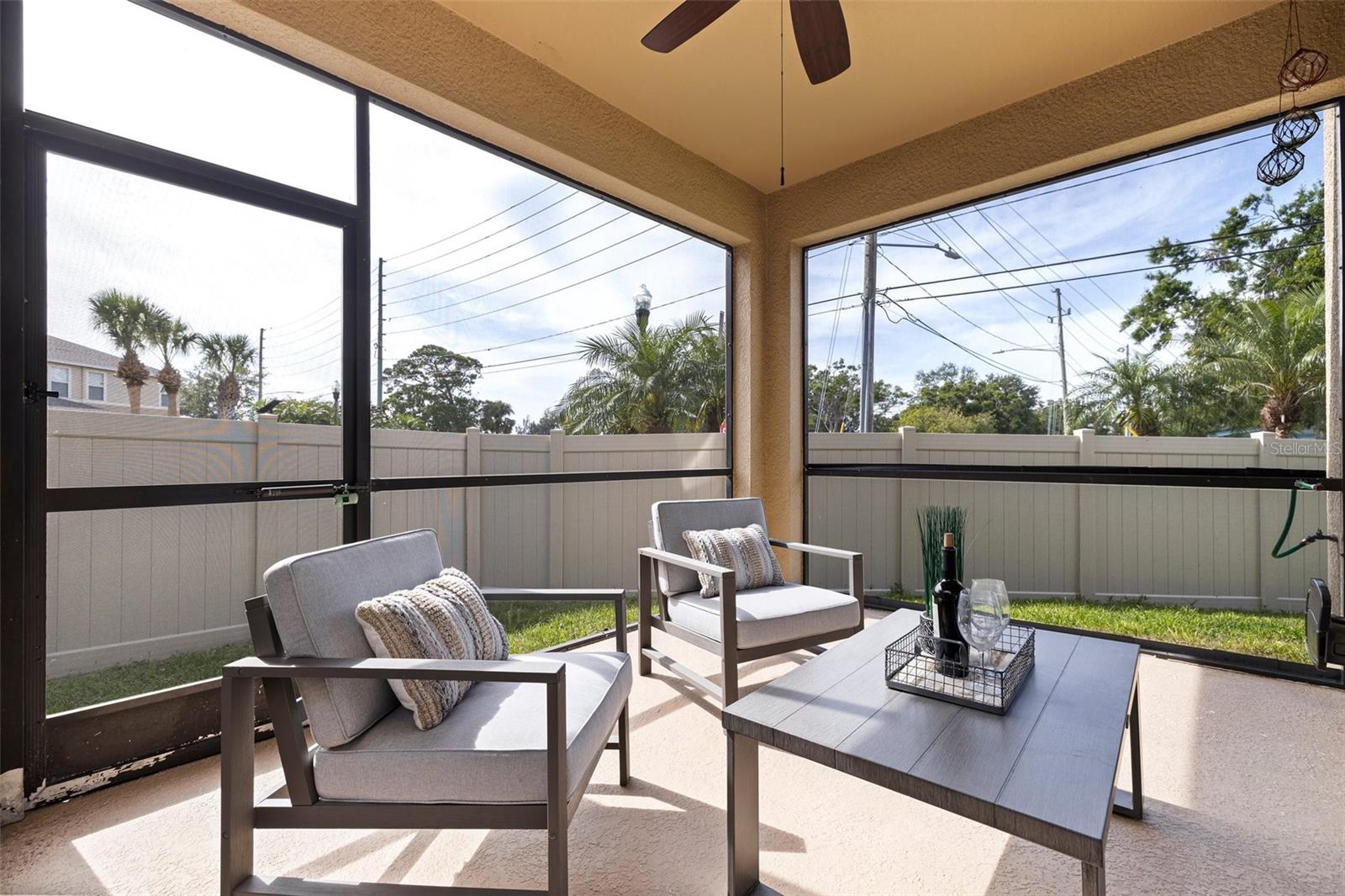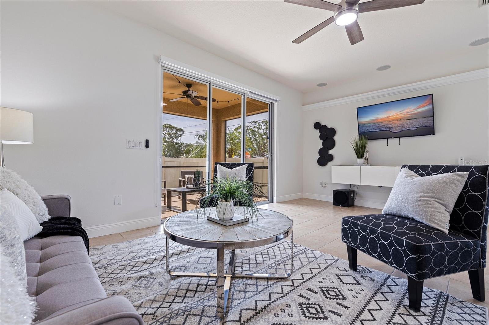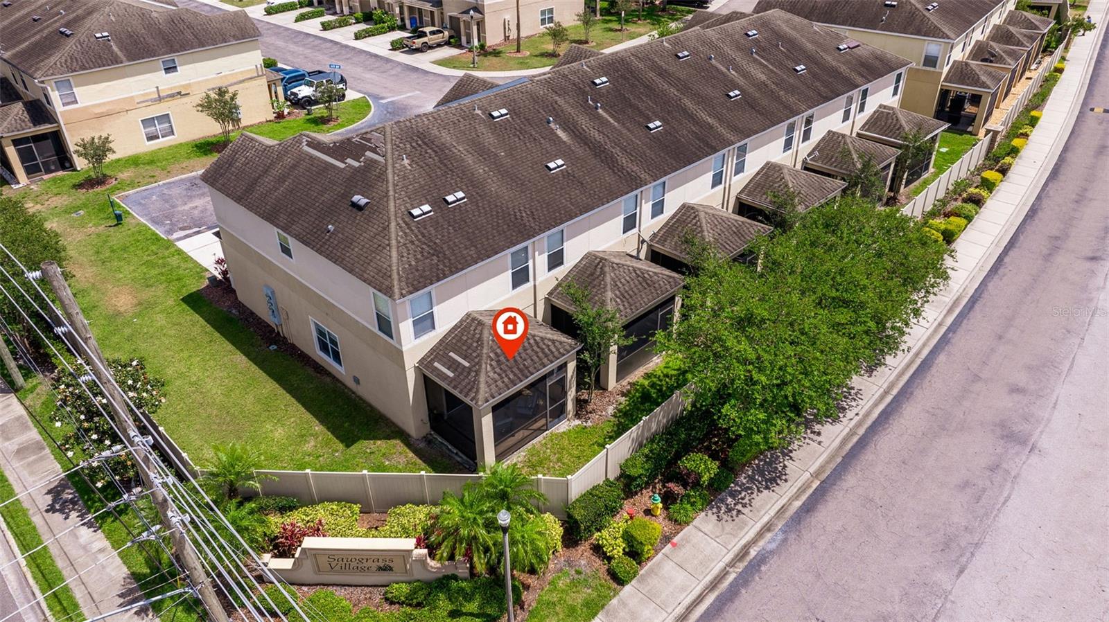 VALUE: No flood zone! VALUE: Low monthly HOA! VALUE: Renovated and updated, end-unit, concrete block construction townhome in the quaint conveniently-located Sawgrass Village community. Amenities include green spaces, clubhouse, dog park, and community pool. The kitchen has been updated with newer stainless appliances with a double oven, granite counters and a backsplash. Modern light fixtures added throughout. This 3 bed, 2.5 bath townhome has an attached one car garage, a covered screened rear patio, and custom window treatments. The first floor is composed of an ample kitchen with pantry, living/dining combo, and an updated half bath all with tile flooring. The stairs and second floor carpet was replaced with a wood plank flooring. The spacious primary bedroom is oversized with an ensuite renovated and modern primary bathroom and walk-in closet. The other two bedrooms are located on the second floor with ample closet space along with a updated second full bathroom. The second floor is rounded out by a laundry room with storage space. The mounted, floating cabinet in the living room, decorative shelving, TV rack, sound system and Ring cameras transfer at close of escrow. Additionally metal storm shutters will transfer at closing to add extra protection to the unit as well as lower your insurance premium. The building roof replacement will be completed in May 2025. No known special assessments for this unit or community as the current monthly fee includes escrow reserves for capital improvements.