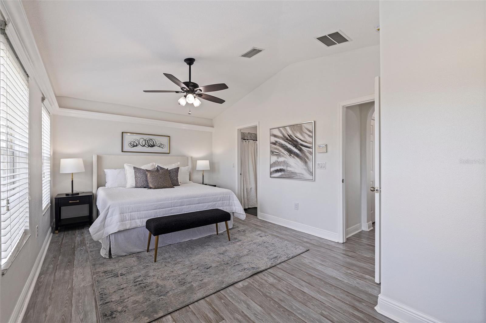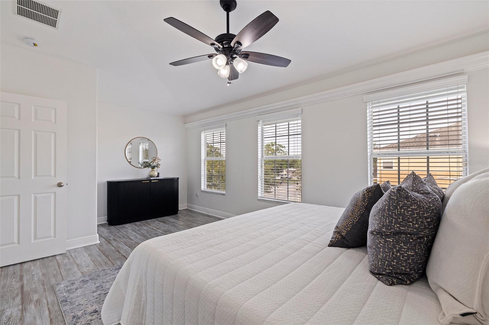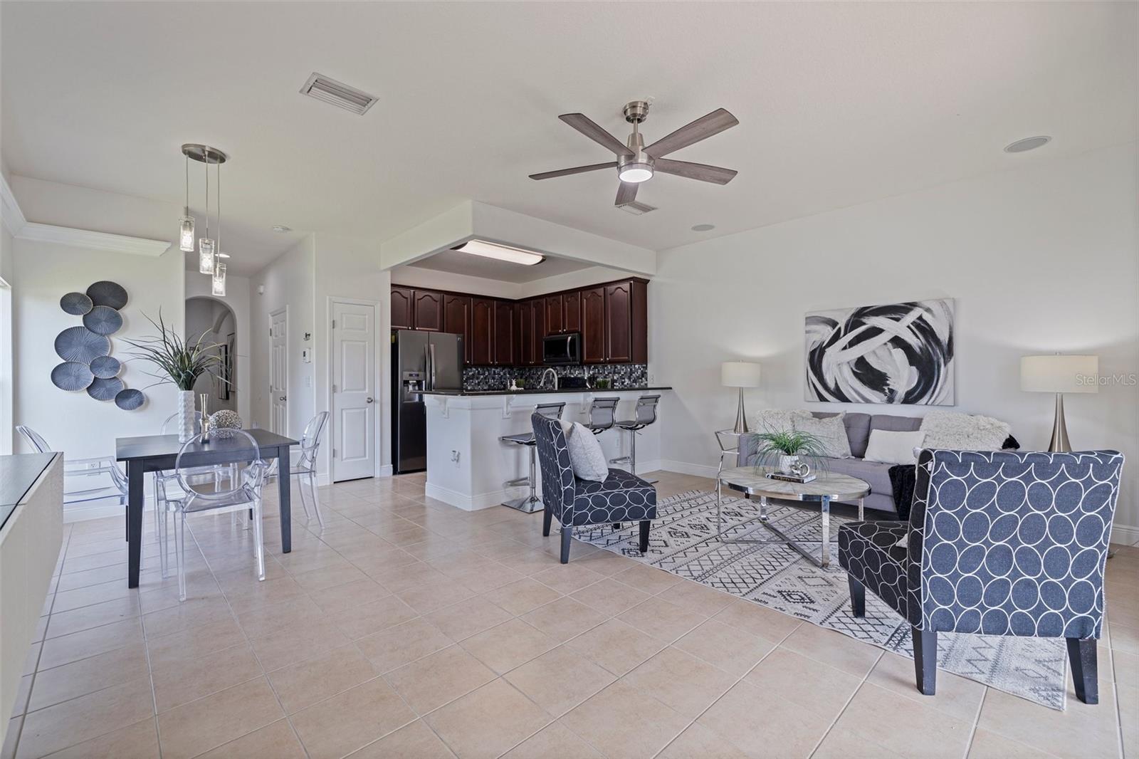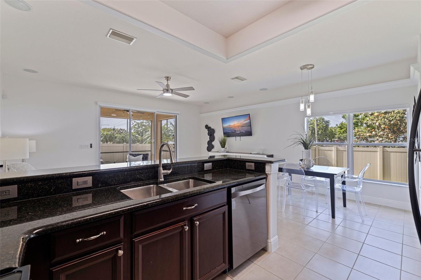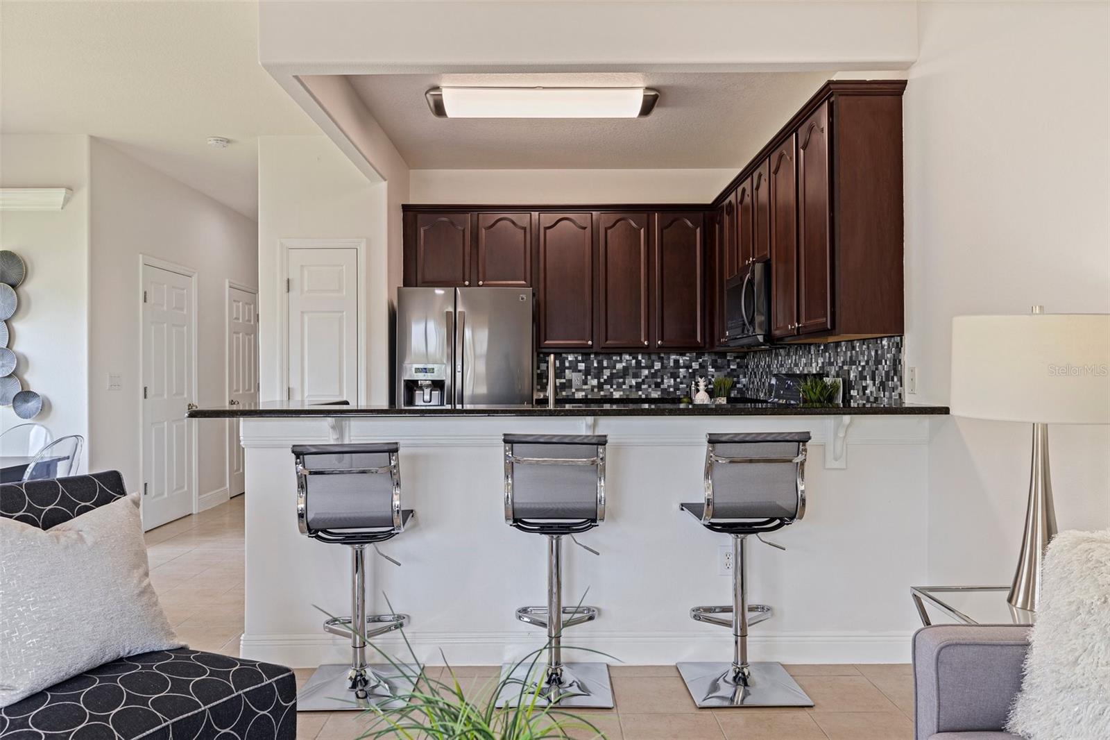 VALUE: No flood zone! VALUE: Low monthly HOA! VALUE: Renovated and updated, end-unit, concrete block construction townhome in the quaint conveniently-located Sawgrass Village community. Amenities include green spaces, clubhouse, dog park, and community pool. The kitchen has been updated with newer stainless appliances with a double oven, granite counters and a backsplash. Modern light fixtures added throughout. This 3 bed, 2.5 bath townhome has an attached one car garage, a covered screened rear patio, and custom window treatments. The first floor is composed of an ample kitchen with pantry, living/dining combo, and an updated half bath all with tile flooring. The stairs and second floor carpet was replaced with a wood plank flooring. The spacious primary bedroom is oversized with an ensuite renovated and modern primary bathroom and walk-in closet. The other two bedrooms are located on the second floor with ample closet space along with a updated second full bathroom. The second floor is rounded out by a laundry room with storage space. The mounted, floating cabinet in the living room, decorative shelving, TV rack, sound system and Ring cameras transfer at close of escrow. Additionally metal storm shutters will transfer at closing to add extra protection to the unit as well as lower your insurance premium. The building roof replacement will be completed in May 2025. No known special assessments for this unit or community as the current monthly fee includes escrow reserves for capital improvements.