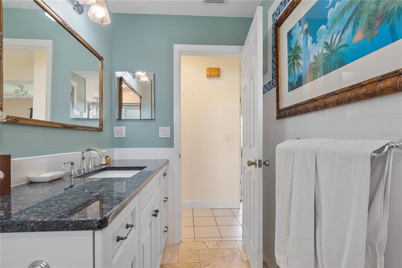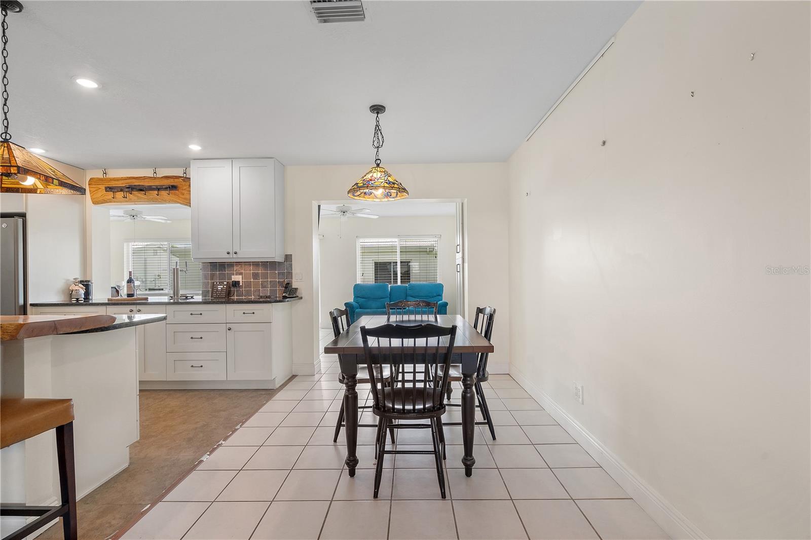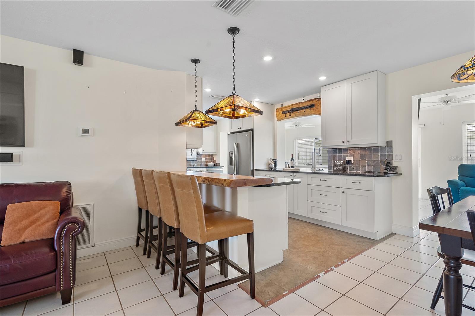 This stylish, comfortable gem is designed for easy living and great times. The heart of the home is a stunning, oversized kitchen featuring gleaming granite countertops, a warm live-edge wood breakfast bar, and a matching pot rack that adds the perfect touch of character. The open layout connects the kitchen to the living room, dining area, and spacious bonus/family room complete with a built-in keg refrigerator making it ideal for both everyday living and entertaining. You’ll find two beautifully updated bathrooms with granite counters, and the second bedroom even includes a convenient Murphy bed—perfect for guests. Outside, the home shines with great curb appeal thanks to a paver driveway leading to the garage, which is already wired for electric car charging. A separate laundry room adds everyday convenience, and hurricane-rated windows provide peace of mind. Located in The Mainlands in Pinellas Park, a highly desirable 55+ community, where you’ll enjoy resort-style living with a golf course, sparkling pools, and a full calendar of fun, active events.