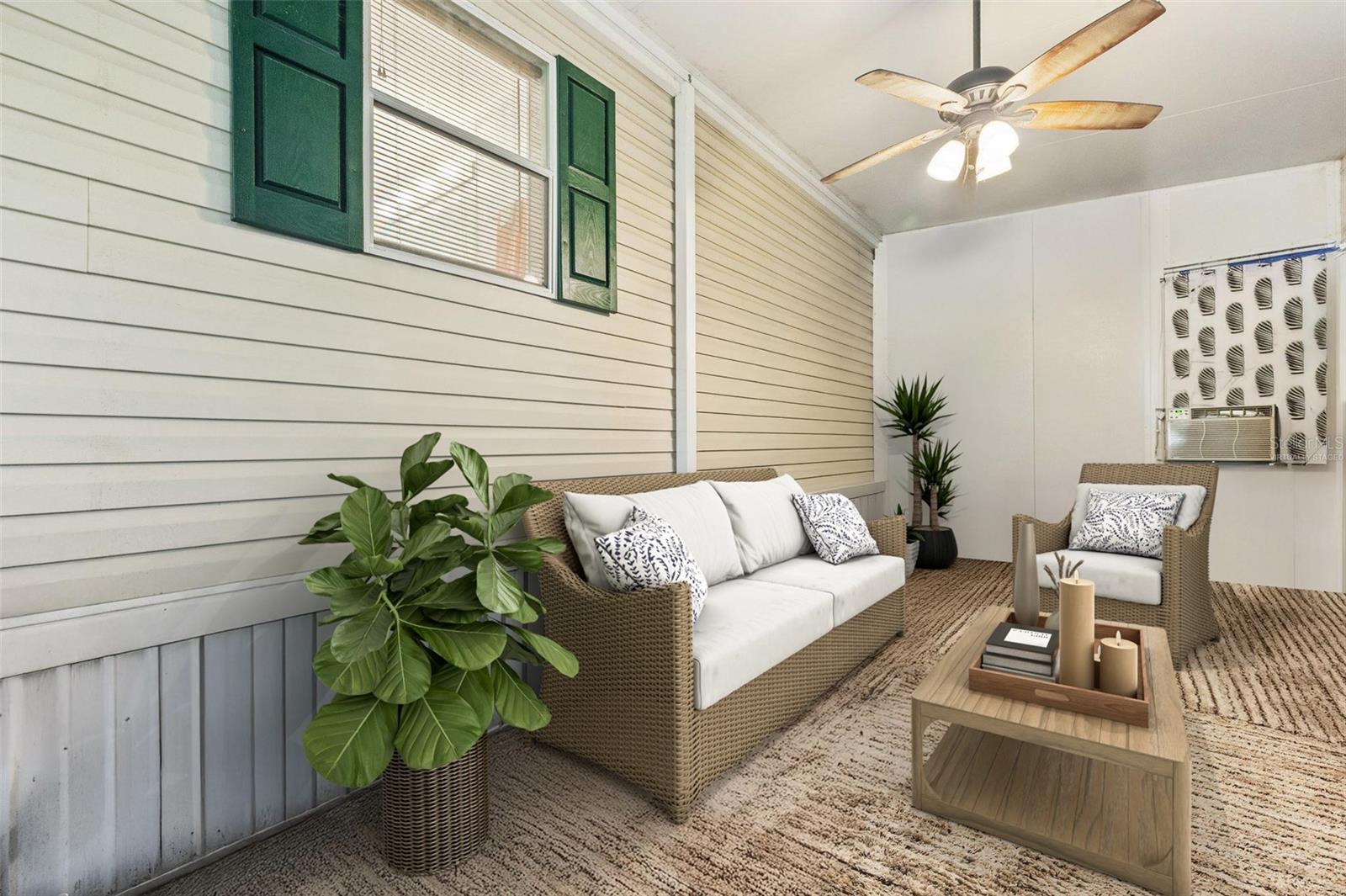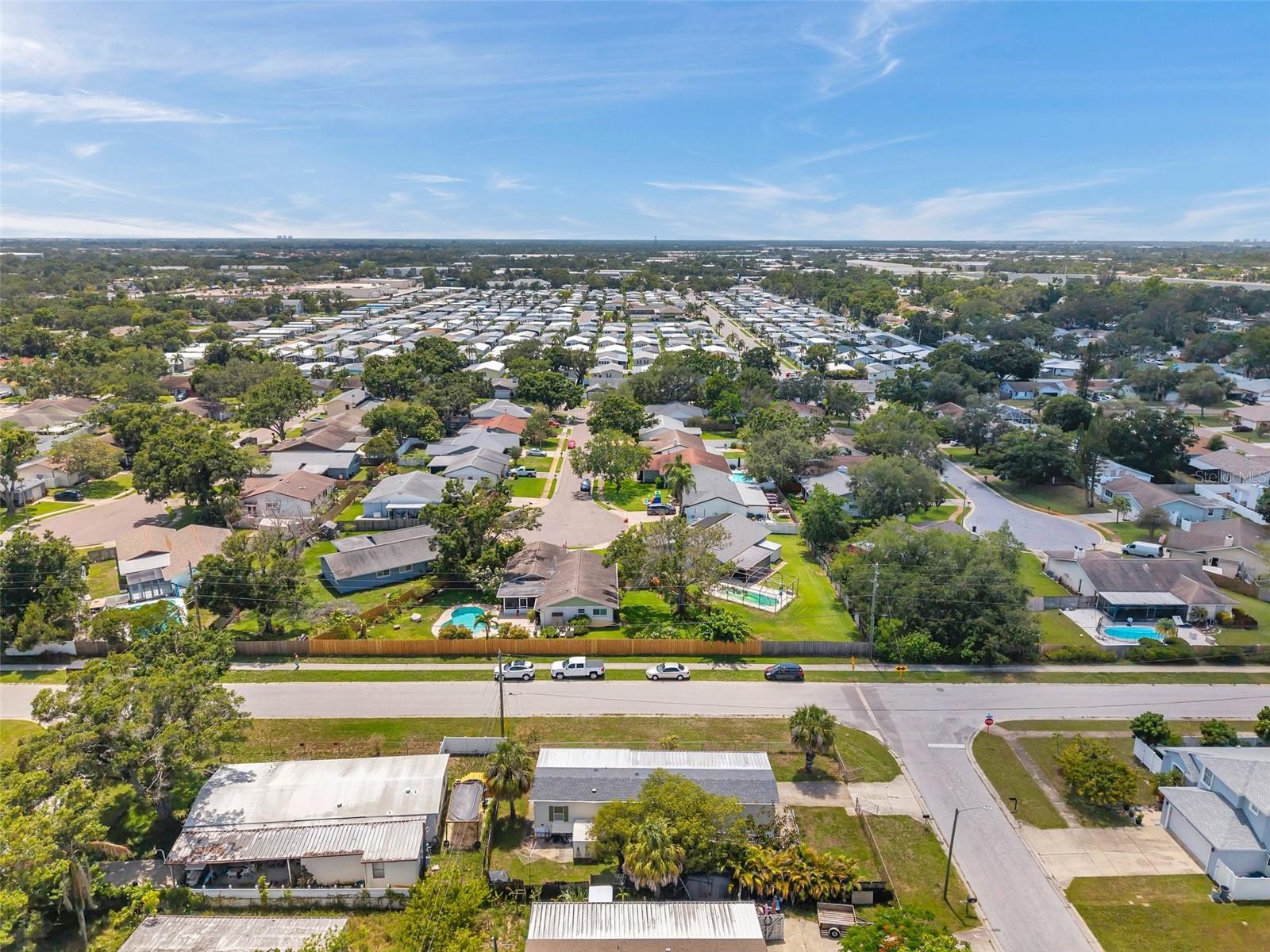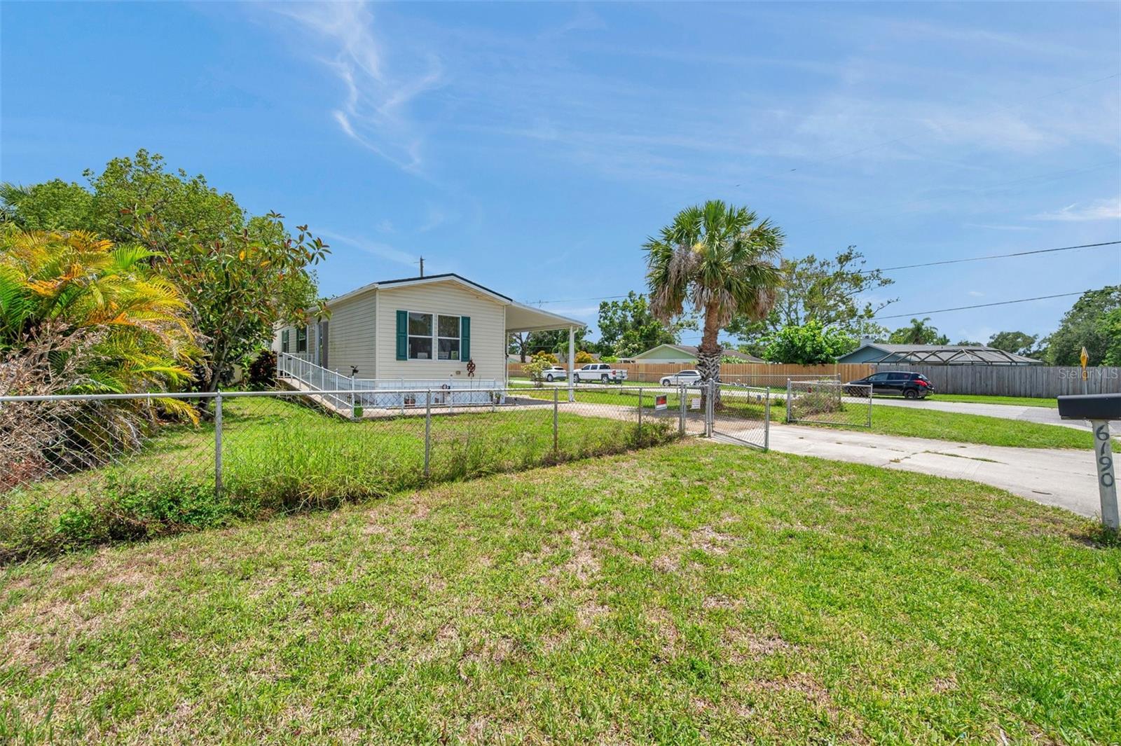 One or more photo(s) has been virtually staged. This charming 2-bedroom, 1-bathroom manufactured home sits on a spacious, oversized corner lot and offers the perfect blend of comfort, convenience, and affordability—with no HOA to worry about! Built in 2001, the home has been lovingly maintained and includes several key upgrades, including a new roof, recently replaced water heater, dishwasher, and washer, plus a 6-year-old AC system for peace of mind. The functional layout features a sunny Florida room with upgraded storm windows and its own AC, a dedicated indoor laundry room, and an open-concept kitchen, dining, and living area. The living room is cozy but flows seamlessly into the kitchen, making the most of the square footage. The kitchen boasts plenty of cabinet and counter space, perfect for everyday cooking. Step outside and enjoy the fully fenced yard with irrigation system, ideal for pets, gardening, or weekend projects. The property also includes a powered shed, perfect for storage or hobbies. The corner lot offers great curb appeal, extra parking space, and added privacy. With no HOA or lot rent, this is a rare opportunity for affordable homeownership in a central Pinellas County location. Whether you're a first-time buyer, downsizing, or looking for a low-maintenance winter retreat—this home is full of potential!