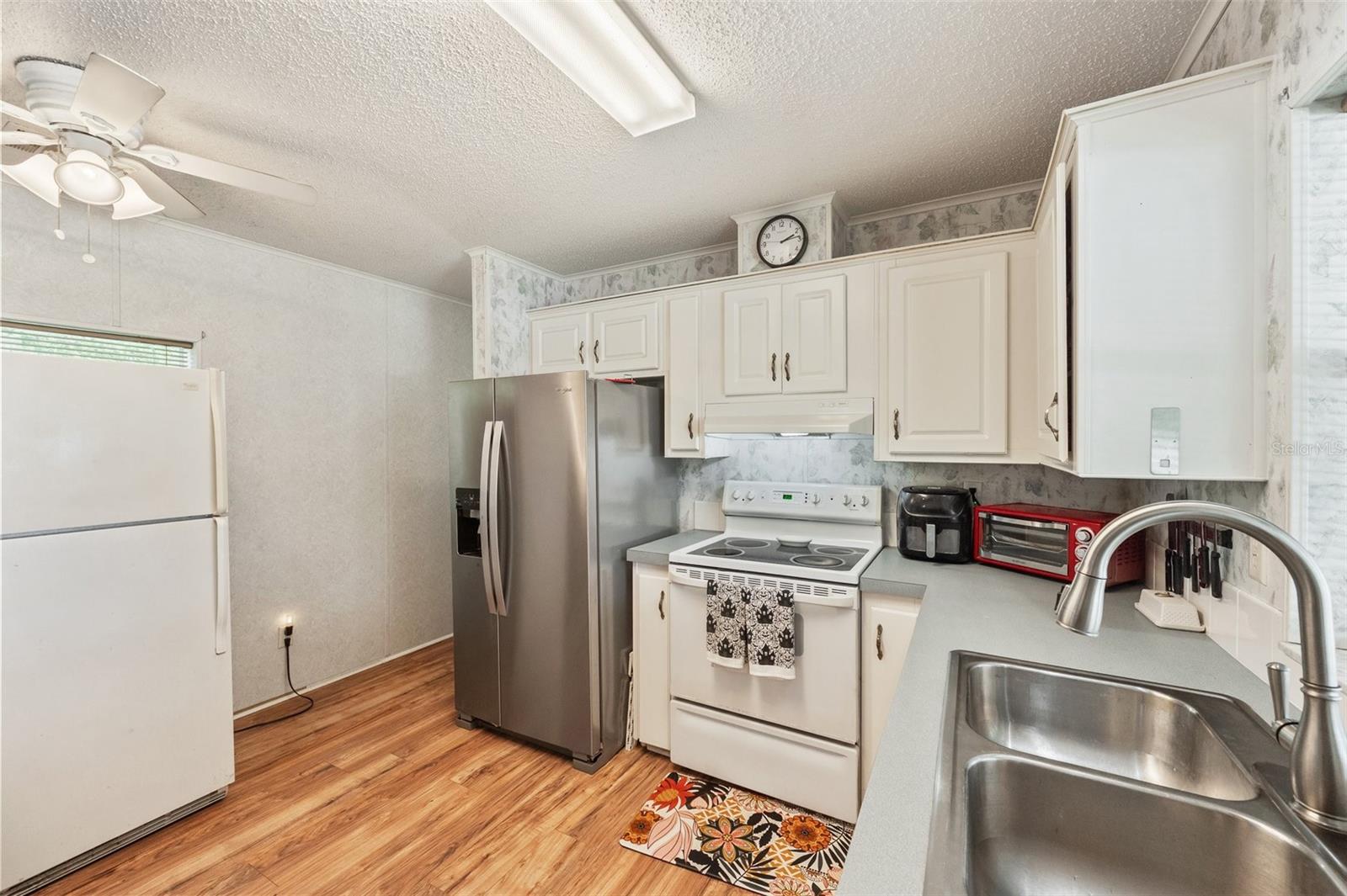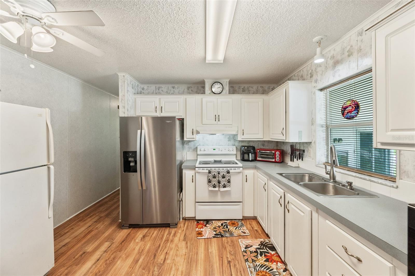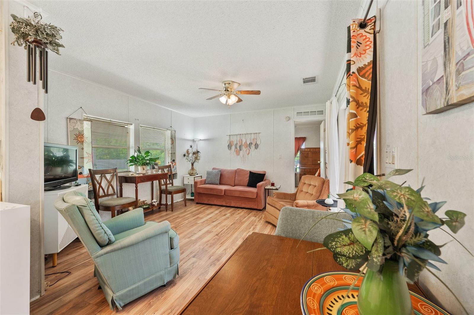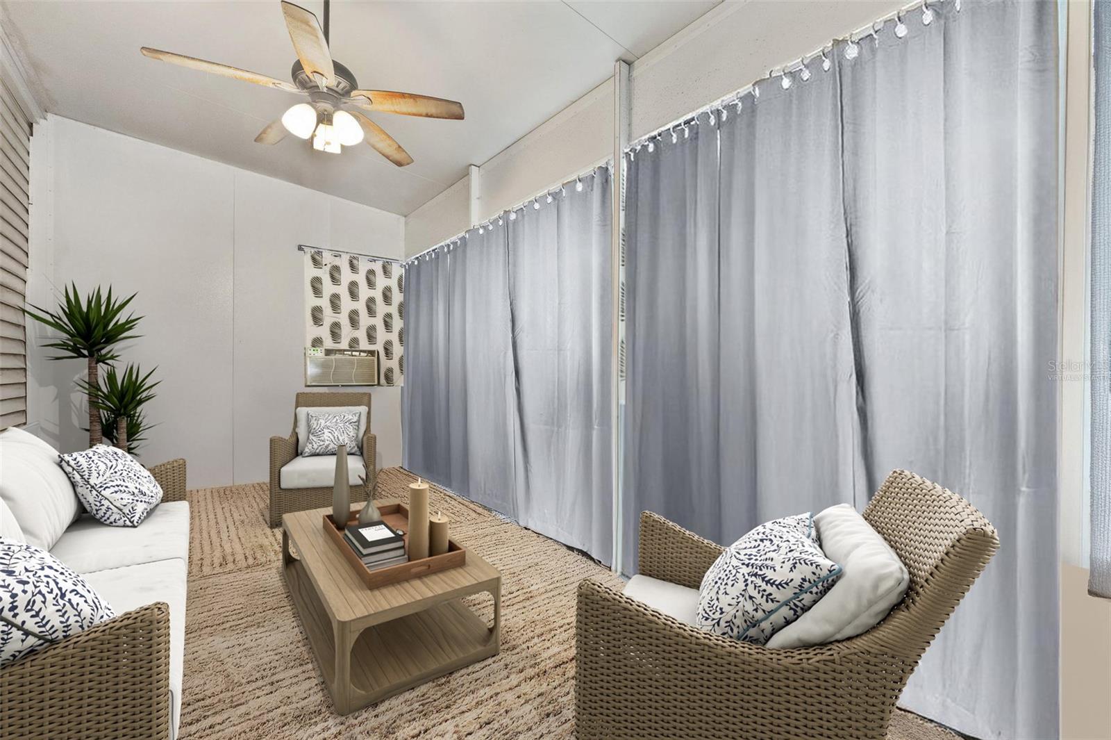 One or more photo(s) has been virtually staged. This charming 2-bedroom, 1-bathroom manufactured home sits on a spacious, oversized corner lot and offers the perfect blend of comfort, convenience, and affordability—with no HOA to worry about! Built in 2001, the home has been lovingly maintained and includes several key upgrades, including a new roof, recently replaced water heater, dishwasher, and washer, plus a 6-year-old AC system for peace of mind. The functional layout features a sunny Florida room with upgraded storm windows and its own AC, a dedicated indoor laundry room, and an open-concept kitchen, dining, and living area. The living room is cozy but flows seamlessly into the kitchen, making the most of the square footage. The kitchen boasts plenty of cabinet and counter space, perfect for everyday cooking. Step outside and enjoy the fully fenced yard with irrigation system, ideal for pets, gardening, or weekend projects. The property also includes a powered shed, perfect for storage or hobbies. The corner lot offers great curb appeal, extra parking space, and added privacy. With no HOA or lot rent, this is a rare opportunity for affordable homeownership in a central Pinellas County location. Whether you're a first-time buyer, downsizing, or looking for a low-maintenance winter retreat—this home is full of potential!