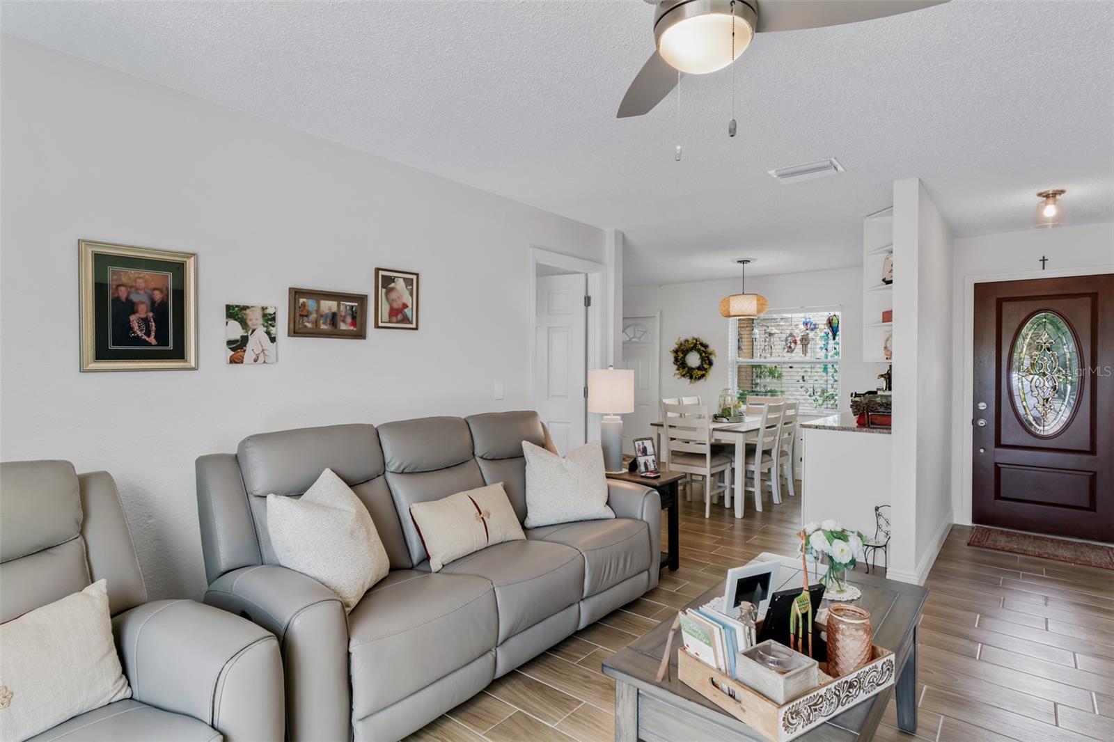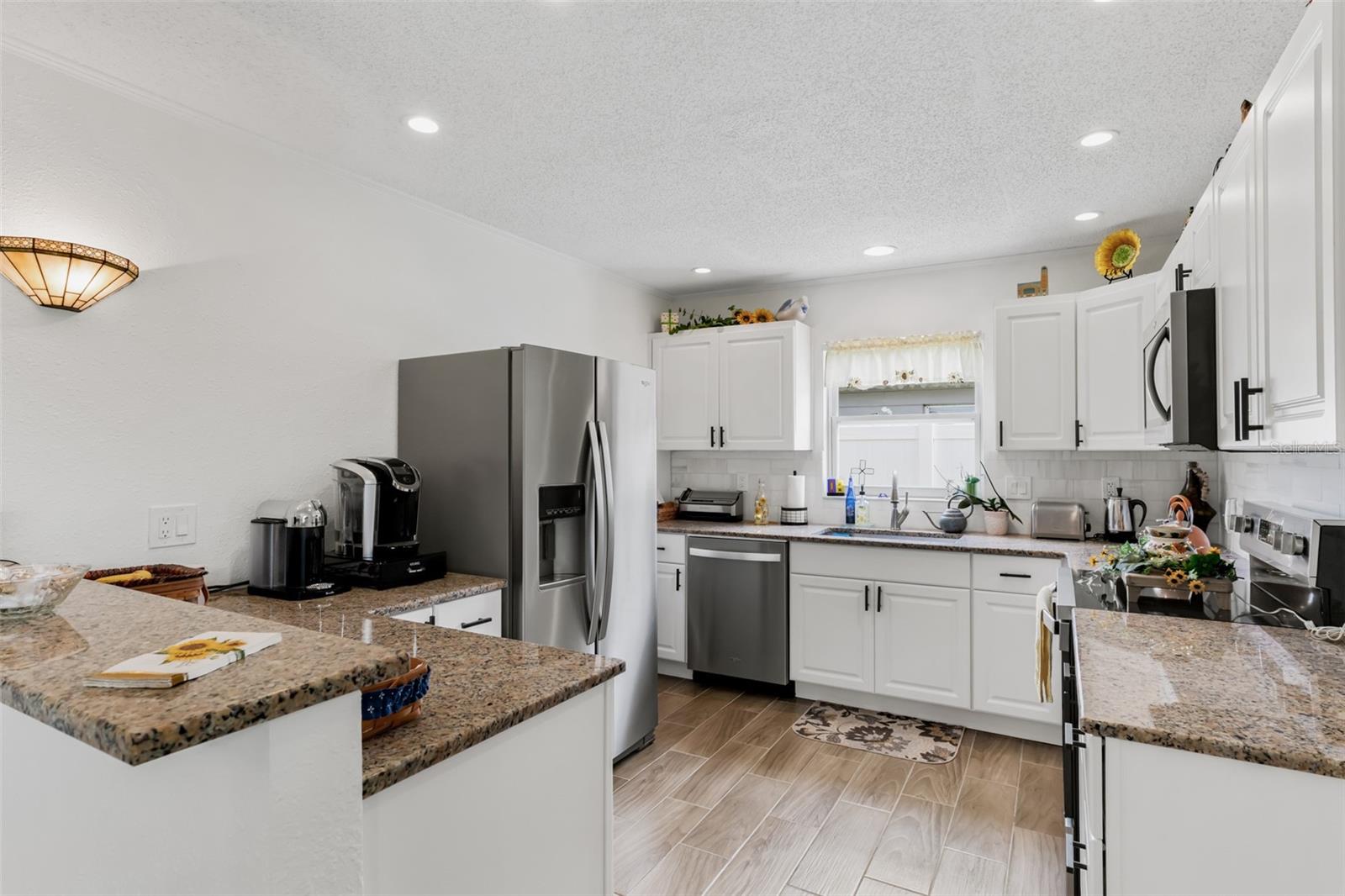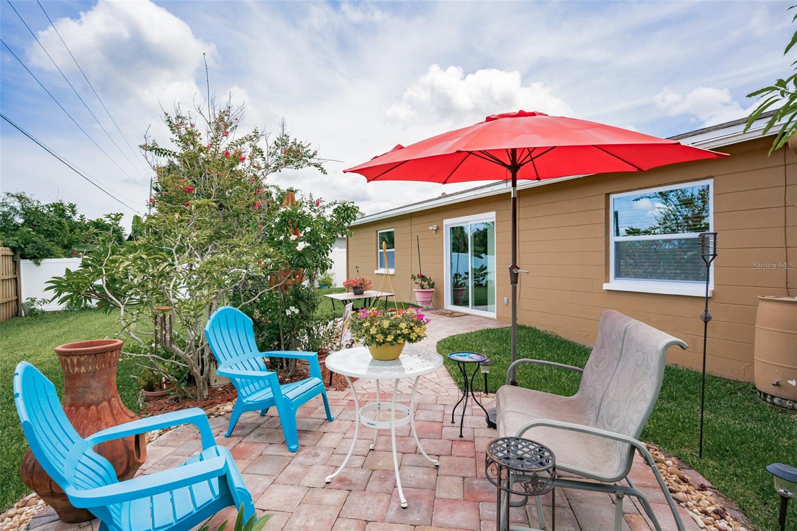 WE HAVE A NEW PRICE, YOU WILL LOVE THIS HOME, Welcome to this beautiful and charming home! This home is like "NEW" and the owner intended to leave nothing undone! Approaching the front door, you are greeted by an inviting walkway of pavers - leading you to a whimsical, welcoming porch. Some guests say – it’s mesmerizing. Once inside you will see the spacious and open kitchen featuring “all NEW” stainless-steel appliances, white cabinetry with plenty of cabinet space, granite counters, and beautiful marble backsplash suitable for either casual or elegant entertaining. The adjacent dining area includes a wall-attached cabinet with glass door shelving, enhancing its beauty and entertaining possibilities. The luxurious master bedroom with a walk-in closet and en-suite bath with elegant shower doors will surely be a pleasure. This split plan includes two additional bedrooms and a full bath. These spaces add privacy & comfort to the home for your family and guests. Located in that hallway are two closets, for linens & additional storage. The new hurricane impact windows provide security and quietness from the outside environment. From the main entry at the rear of the living area is a new hurricane sliding door with a beautiful Bali Verticell Shade. This slider leads you out to an enchanted patio with pavers and, large fenced-in backyard. Here you will experience peace and calmness surrounded by nature. The well-manicured lawn may cause an "Ahh! Nice" reaction. Hurricane reinforcement on the garage door provides an additional element of sturdiness. In the garage you will also find a NEW washer & dryer. This gem-of-a-home is located on a cul-de-sac in one of Pinellas Park's most charming and convenient neighborhoods. All of this is within 25 miles of Tampa International Airport and 9 miles to our award-winning gorgeous sandy beaches. It is also close to local parks, shopping, dining, and the vibrant cities of St. Petersburg and Tampa. This is a must-see, move-in-ready home. It is a dream home for first time buyers, second home, or retirement.