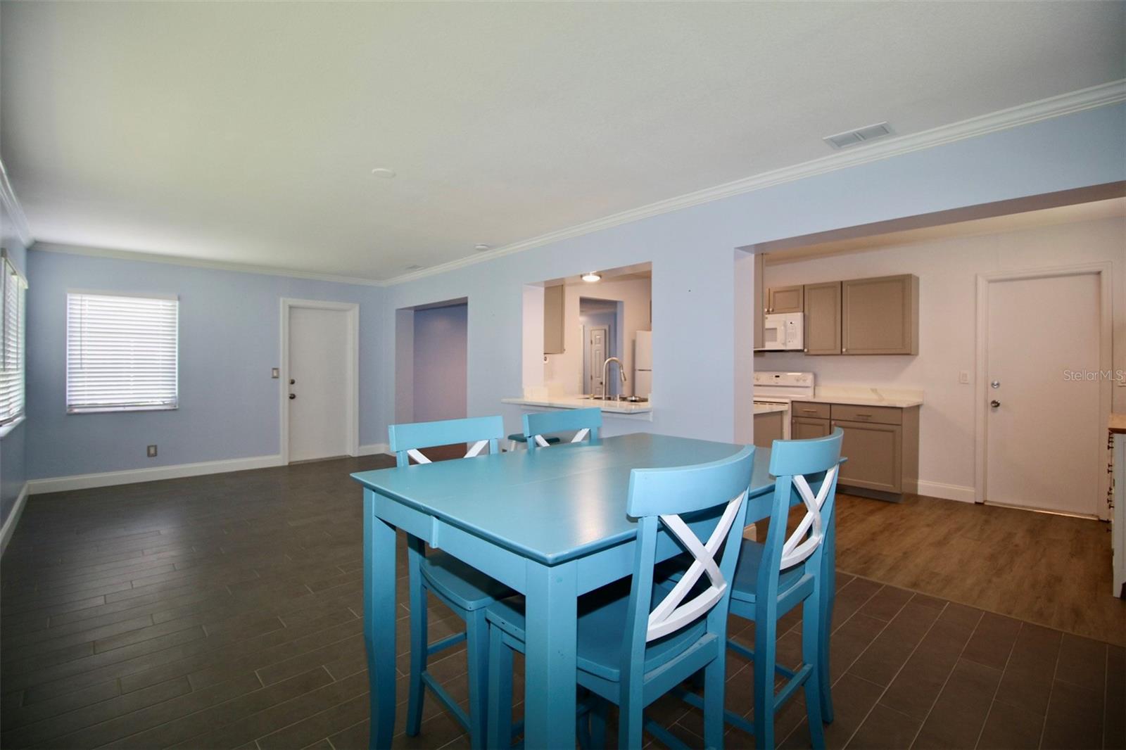 **MAINLANDS OF TAMARAC BY THE GULF SHOWPLACE** Beautifully renovated 2-bedroom, 2 full bath open floorplan built to entertain all of your family and friends. Featuring new crown molding, 6 panel interior doors with nickel plated doorknobs, durable tile and luxury vinyl plank flooring, window blinds and freshly textured ceiling throughout. Gorgeous Chef's kitchen with brand new quartz countertops, breakfast bar, cabinets, deep stainless-steel waterfall workstation kitchen sink with automatic glass rinser and separate serving counter with lots of pantry space. Kitchen overlooks the huge family room with lots of natural light and back patio access. Primary bedroom has a large walk-in closet with organized closet system and updated private bath with round vessel sink and quartz vanity, LED anti-fog mirror, low step in tile surround shower and heavy-duty custom glass shower door. Second bedroom also has a walk-in closet with organized storage system. Updated guest bath has a tub/shower combo with surround tile and again heavy-duty roller custom glass door, quartz countertop vanity, brilliant ceramic hexagon tile flooring and LED anti-fog mirror. New 2024 Rheem AC system and water heater. Solid Block home with tile roof that is maintained by the HOA. Oversized one car garage with new automatic door opener, full size stackable LG washer and dryer, utility sink, steel side door and attic pull down stairs access. Covered front porch. High and dry flood zone X. Spectacular landscaped yard with irrigation system and rear patio outdoor living area. Wonderful opportunity to be the new owner in one of Pinellas Counties Elite 55+ active resident and golf cart friendly communities with a low monthly fee of only $450.00! Tropical Florida Lifestyle Living offering a short walk to the sparkling in ground pool, shuffleboard courts, clubhouse and endless scheduled activities. HOA includes the roof, exterior painting and maintenance, lawn service, cable tv, internet, water, sewer and trash. Easy access to Tampa, Clearwater, St. Petersburg, all major highways, interstates and Our World-Famous Sugar Sand Beaches! Call and schedule your private showing and make this your Florida Staycation home today!