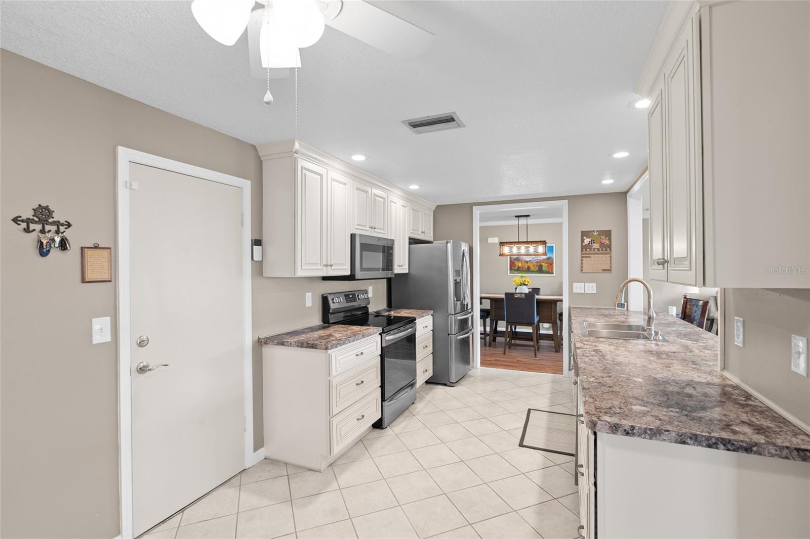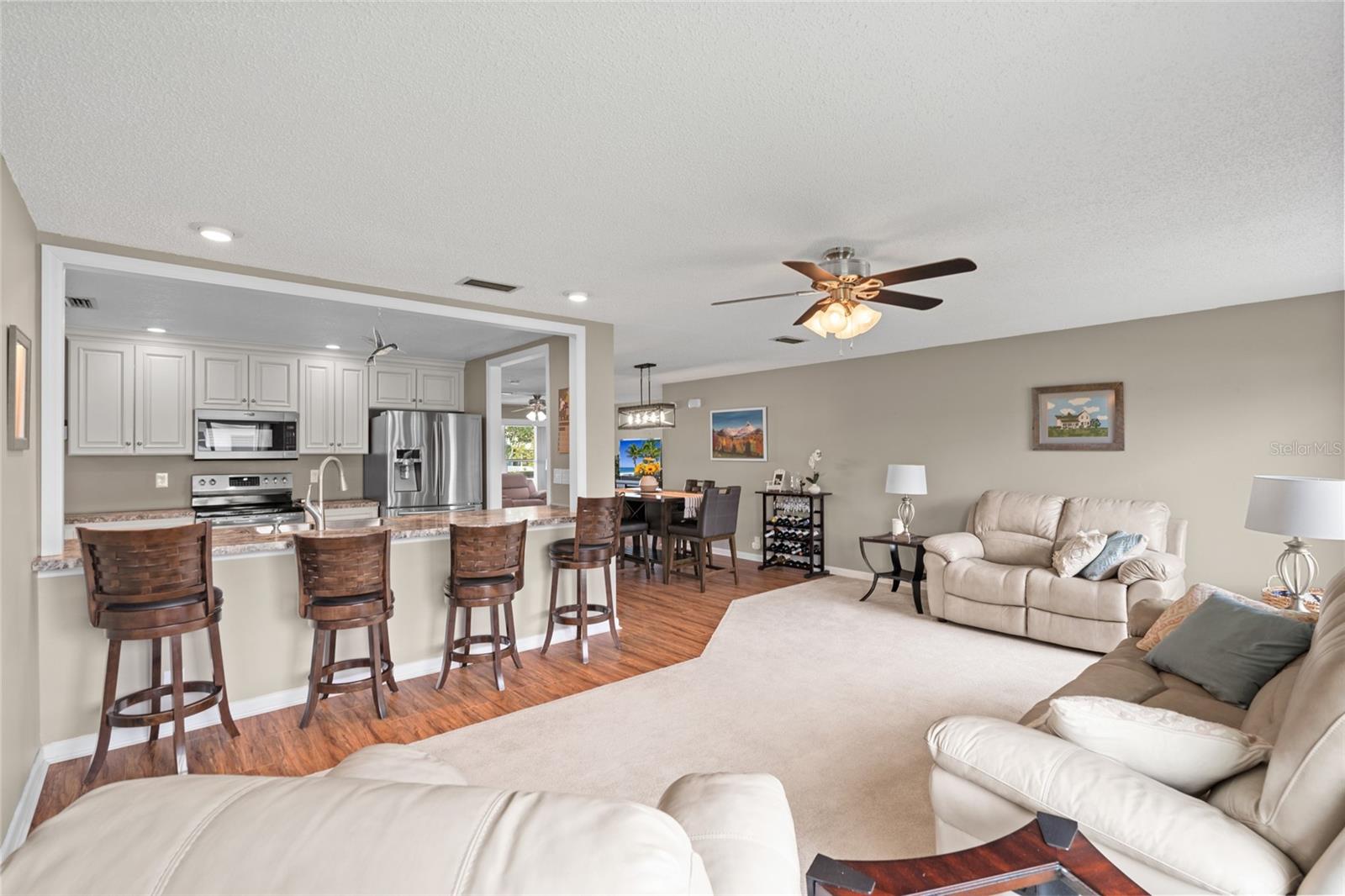 From the moment you arrive, you will fall in love with the charm of this meticulously maintained home. Nestled in the premier active golf community of Mainlands this property is the perfect combination of condo living in a home. When you enter the door you will be greeted with an open and bright floor plan with beautiful plank flooring. The spacious living room is great for reading a book ,catching up on your favorite show or entertaining your family and friends. The updated kitchen will not disappoint and is ready for the chef in the family to cook some great meals. The kitchen boasts many updates like stainless steel appliances, recessed lighting, 2 extra large pantries that are on both sides of a roll out island with even more storage. The pass thru has a larger opening to keep with the open concept and a counter bar for entertaining. Also has a bonus room off the kitchen that can be used for an office, reading nook, dining area and more. Both bathrooms have been recently updated. The primary bedroom has a walk-in closet and en-suite. Other features of this immaculate home are updated windows, hurricane in front and double pane throughout, windows have the fabric hurricane protection, reinforced and insulated garage door, ample storage throughout, 2 car garage HVAC 2018 and more. This active 55+ community has many socials, heated pool, clubhouse, shuffleboard, golf sidewalks and is pet friendly. Located near shopping, dining, medical facilities and the beautiful Gulf beaches. Are you ready for maintenance free living the Florida way. Do not miss out on owning your own little piece of paradise.