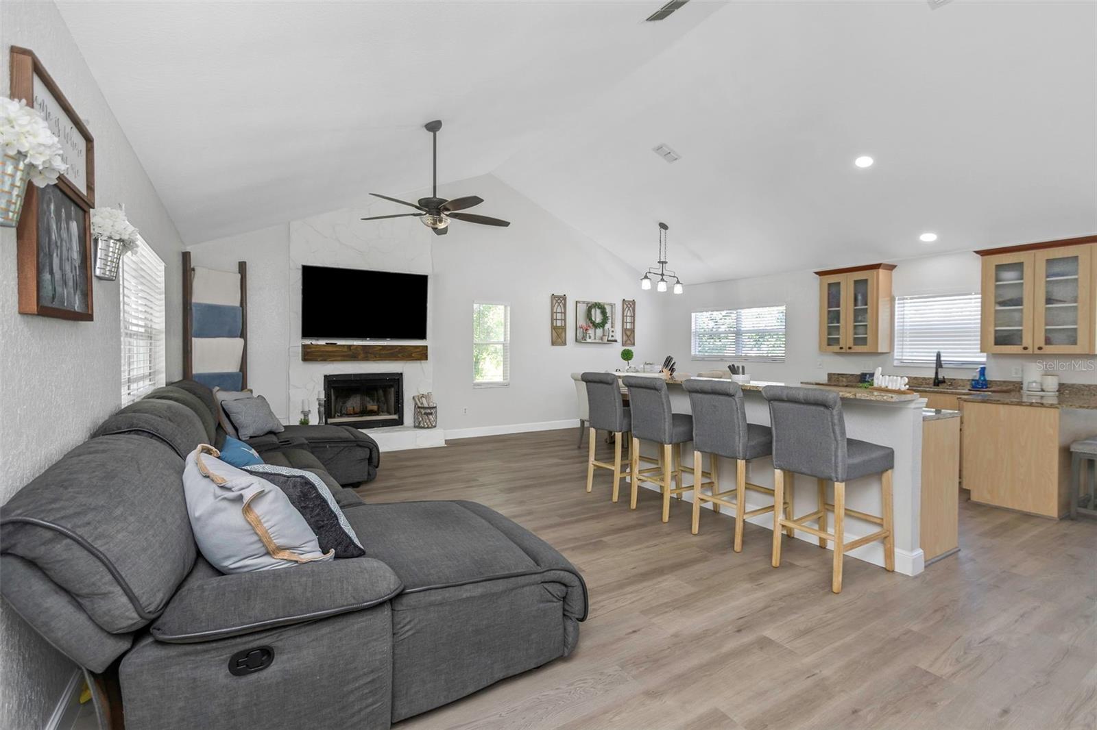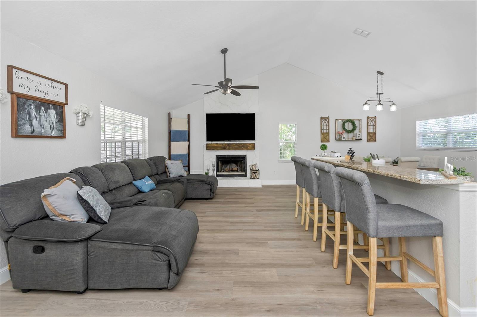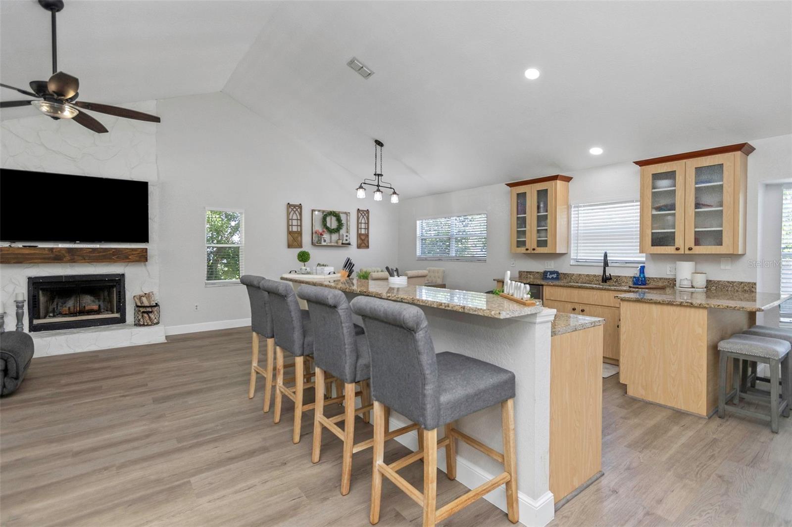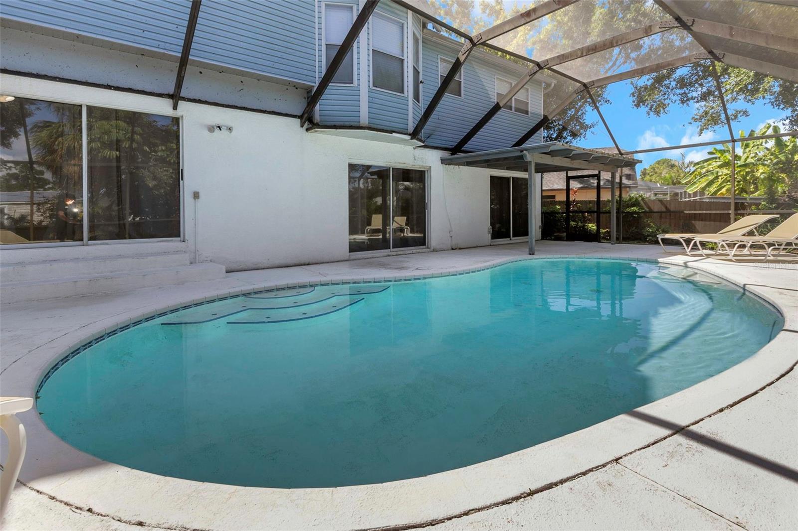Welcome to this beautifully maintained 4-bedroom, 3-bath pool home with a bonus room and private mother-in-law suite, offering flexible living in the heart of Pinellas County. Priced, well, below appraisal, completed in May 2025. Located high and dry in a NON-flood zone with underground power lines, this home sits on a shady cul-de-sac in a quiet, centrally located neighborhood, perfect for families seeking space and comfort while staying close to everything Pinellas County has to offer. Step inside to a bright, open floor plan with vaulted ceilings and abundant natural light, ideal for family gatherings and entertaining. The kitchen features stainless steel appliances, ample cabinetry, and a breakfast bar for casual dining, while a cozy wood-burning fireplace adds warmth and character to the living space. Many recent upgrades include: • New roof (2020) • New HVAC (2019) • Upgraded electrical panel (2021) • Saltwater pool pump (2024) The primary suite offers a walk-in closet and en-suite bath, while two additional bedrooms provide comfortable space for family or guests. The private mother-in-law suite is perfect for multigenerational living or extended stays, featuring its own bedroom, living area, full bathroom, kitchenette, and private entrance for independence and convenience. A bonus room provides flexibility for a home office, game room, or hobby space with easy access to the pool area. Step outside to enjoy Florida living year-round in your screen-enclosed saltwater pool and spacious patio, perfect for relaxing, entertaining, or weekend BBQs. The fenced backyard offers privacy and space for pets, while the 2-car garage provides secure parking and additional storage. This move-in-ready home truly combines flexibility, comfort, and the Florida lifestyle you’ve been looking for.