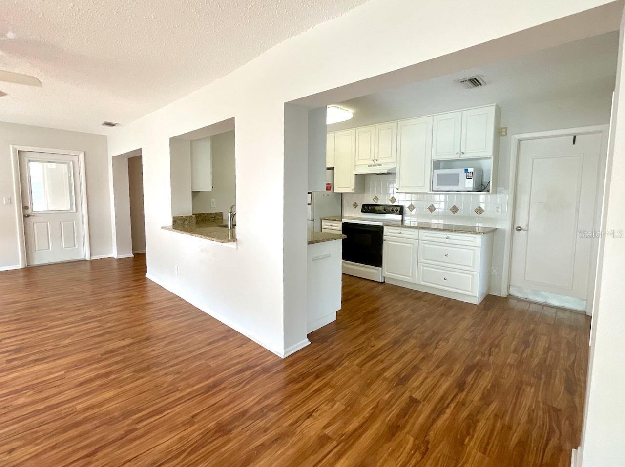 Here it is! That rare home with 3 bedrooms, 2 bath, and 2 car garage deluxe Drayton model, with 1517 sq ft, in the desirable 55+ golf cart community of Mainlands of Tamarac by the Gulf. This home is located on a corner lot at the end the street on a quiet cul-de-sac. There is a 2-car driveway with an extra space on the side for your golf cart. Entering the home, you will notice deluxe luxury vinyl flooring throughout and tile in the baths. The kitchen has updated soft close cabinets, granite counter tops, and a large pantry cabinet with pull out drawers. There are additional open shelves for added storage. The large family room is perfect for entertaining with a door to the enclosed, covered, screened lanai. The enclosed lanai has attached a 12 x 15 outside, open-air patio complete with outdoor sink. At the opposite end of the family room is a bedroom with a built-in desk and closet. The hallway off the living room leads you to the guest and the primary bedroom. Both bedrooms have walk-in closets. The guest bath and the primary bath have been beautifully updated with step-in showers. There is an additional closet in the hallway for extra storage. This home has impact windows and had no water intrusion issues from Helene or Milton. The whole house vacuum had ease to cleaning. In the garage there is loft storage plus a stacked washer and dryer. The air-conditioner was replaced in 2020. Unit 4 residents enjoy access to a clubhouse with a heated pool, a library, and a variety of social activities such as dances, card games, and shuffleboard. Conveniently located just minutes away from the Mainlands Public Golf Course, Mayor Park, airports and downtown St. Petersburg. This unique property is just waiting for you. Call today to schedule your showing!