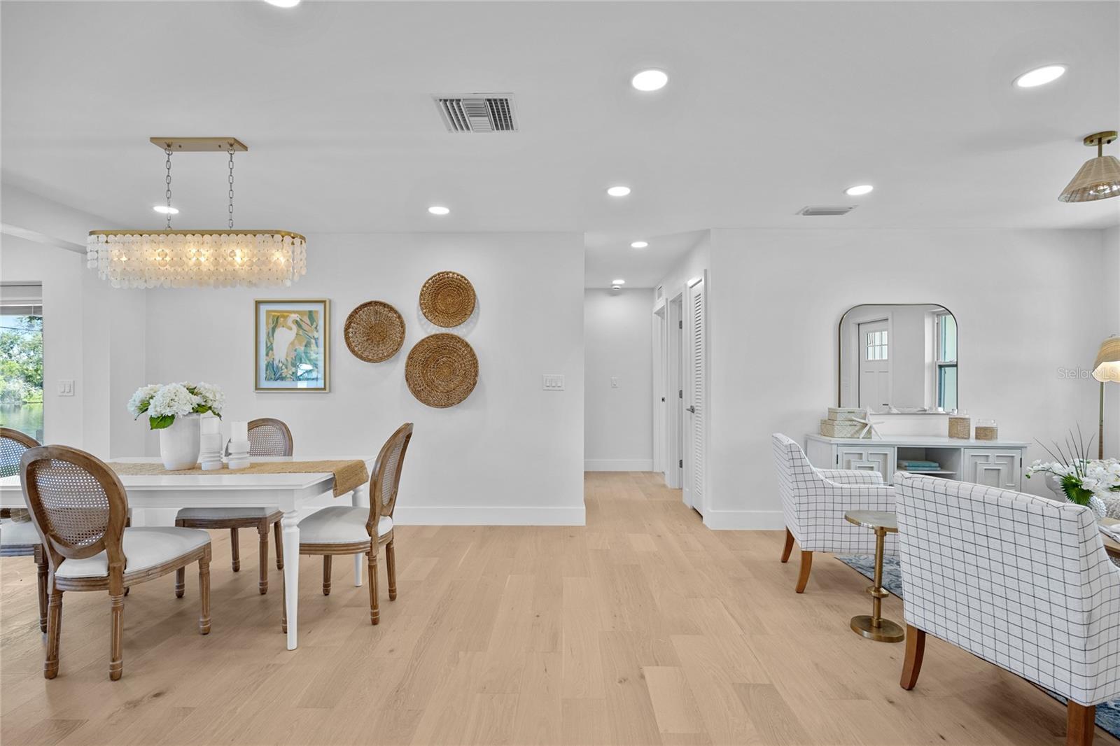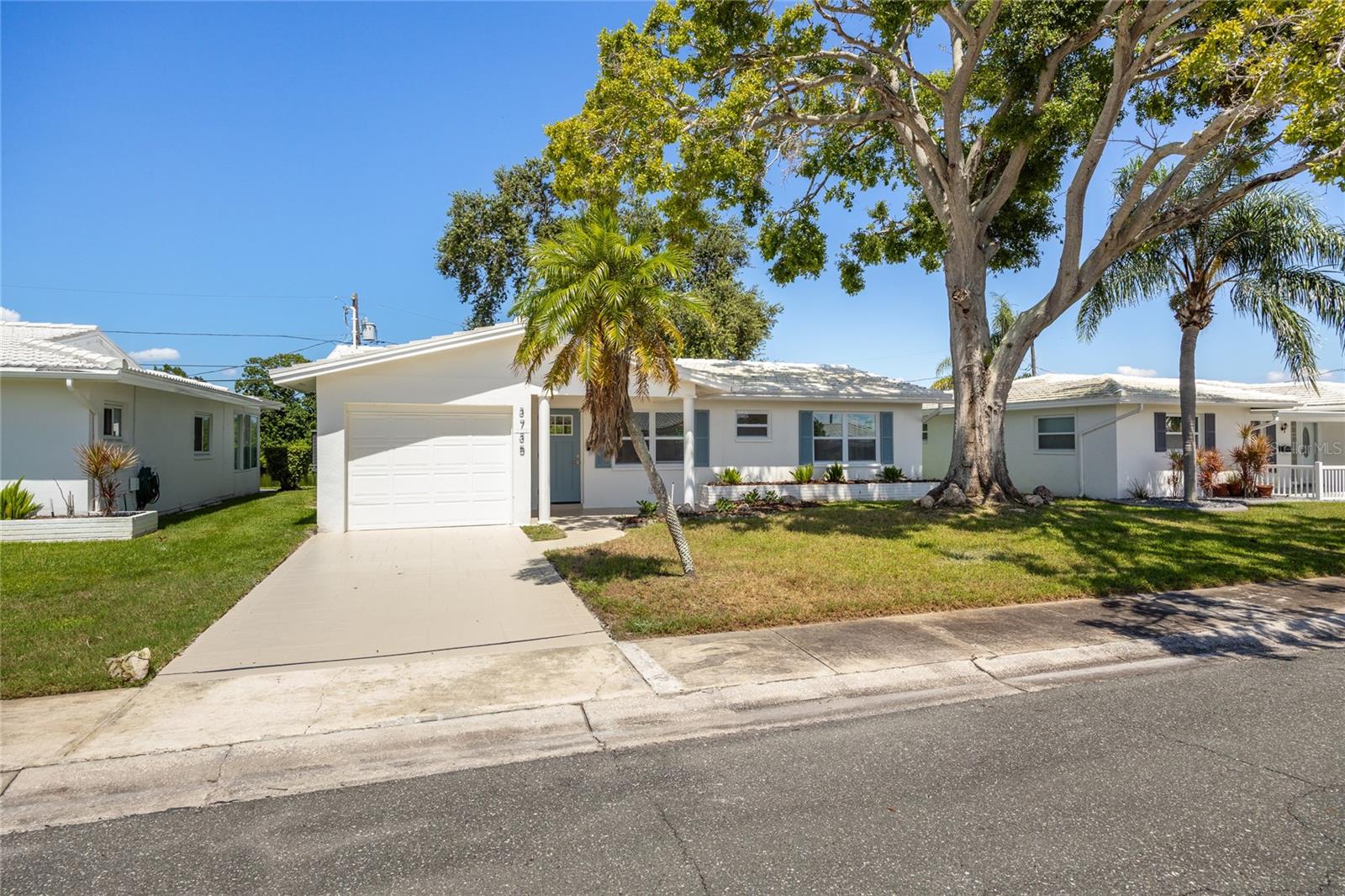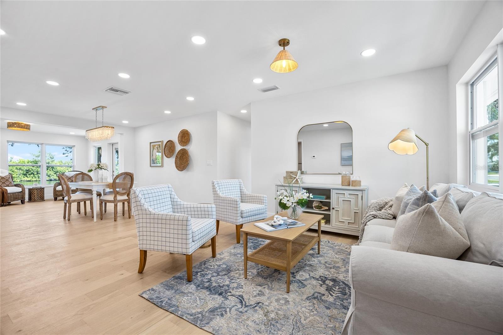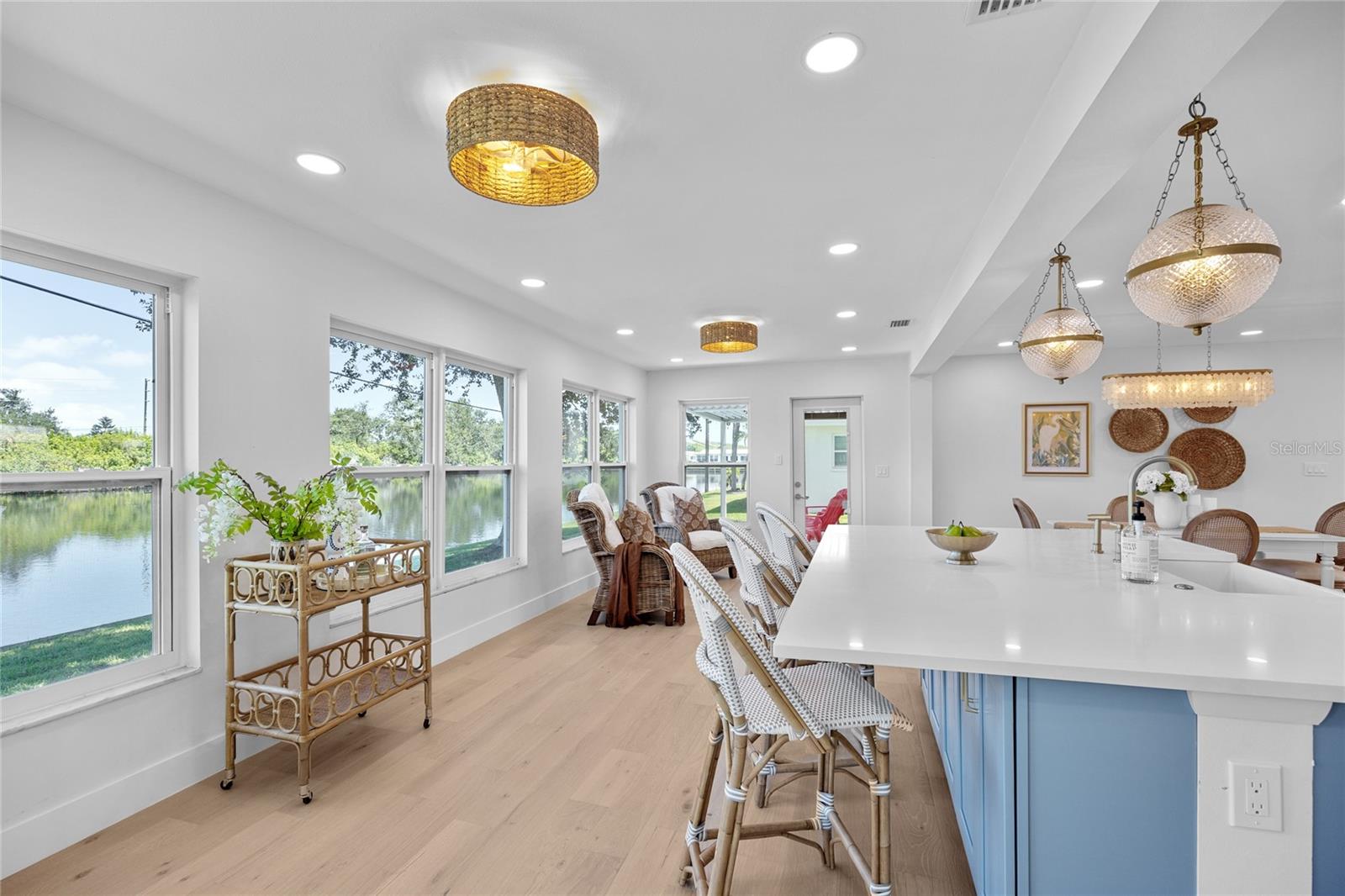 FULLY RENOVATED LAKEFRONT PARADISE IN THE MAINLANDS GOLF COMMUNITY - YOUR DREAM RETIREMENT HOME AWAITS - INTRODUCING THE “HIATT” DESIGN COLLECTION | Discover refined retirement living in this completely transformed waterfront home in the prestigious Mainlands, an exclusive 55+ community in Pinellas Park. This extraordinary property represents the pinnacle of worry-free Florida living with an impressive $240,000 in premium renovations/upgrades - every detail has been meticulously reimagined for the discerning buyer. CHEF'S DREAM KITCHEN, featuring a stunning open-concept design with a custom island created by installing engineered structural beams, crisp white cabinetry, an elegant blue subway tile backsplash, premium quartz countertops, and top-of-the-line stainless steel appliances. The sophisticated color palette of coastal blues and warm golds creates an inviting atmosphere perfect for entertaining. SPA-INSPIRED BATHROOM & MASTER SUITE showcase luxurious marble countertops, dual vanities, exquisite patterned tile work, brushed gold fixtures, a spectacular walk-in master shower that rivals any high-end resort and a newly created WALK IN closet. SEAMLESS INDOOR-OUTDOOR LIVING with beautiful water views, impact windows and doors throughout, and gorgeous engineered hardwood flooring that flows effortlessly from room to room. The thoughtfully curated lighting design includes statement chandeliers and under-cabinet illumination, creating perfect ambiance day or night. COMPLETELY MOVE-IN READY with every system updated including new HVAC including new ductwork, tankless water heater, electrical service, plumbing, and impact-rated windows. The exterior features new stamped concrete driveway, a louvered pergola for shade to enjoy dining outdoors, and professional landscaping. THE MAINLANDS LIFESTYLE offers the ultimate in carefree living with resort-style amenities (heated pools, golf club, social activities daily, and shuffleboard courts), social activities, and the peace of mind that comes with a well-established 55+ community. This unit is in Unit #3 which provides you ease of maintenance with roof replacement and painting being handled by the association for you as part of your association dues. It truly is a one-of-a-kind property just perfect for anyone looking for sophistication and high-end finishes. Located in Pinellas Park with easy access to Tampa Bay's pristine beaches, world-class dining, and cultural attractions. This is more than a home - it's your passport to the sophisticated, maintenance-free retirement lifestyle you've earned. Don't miss this rare opportunity to own a completely renovated waterfront property in one of Florida's most desirable active adult communities.