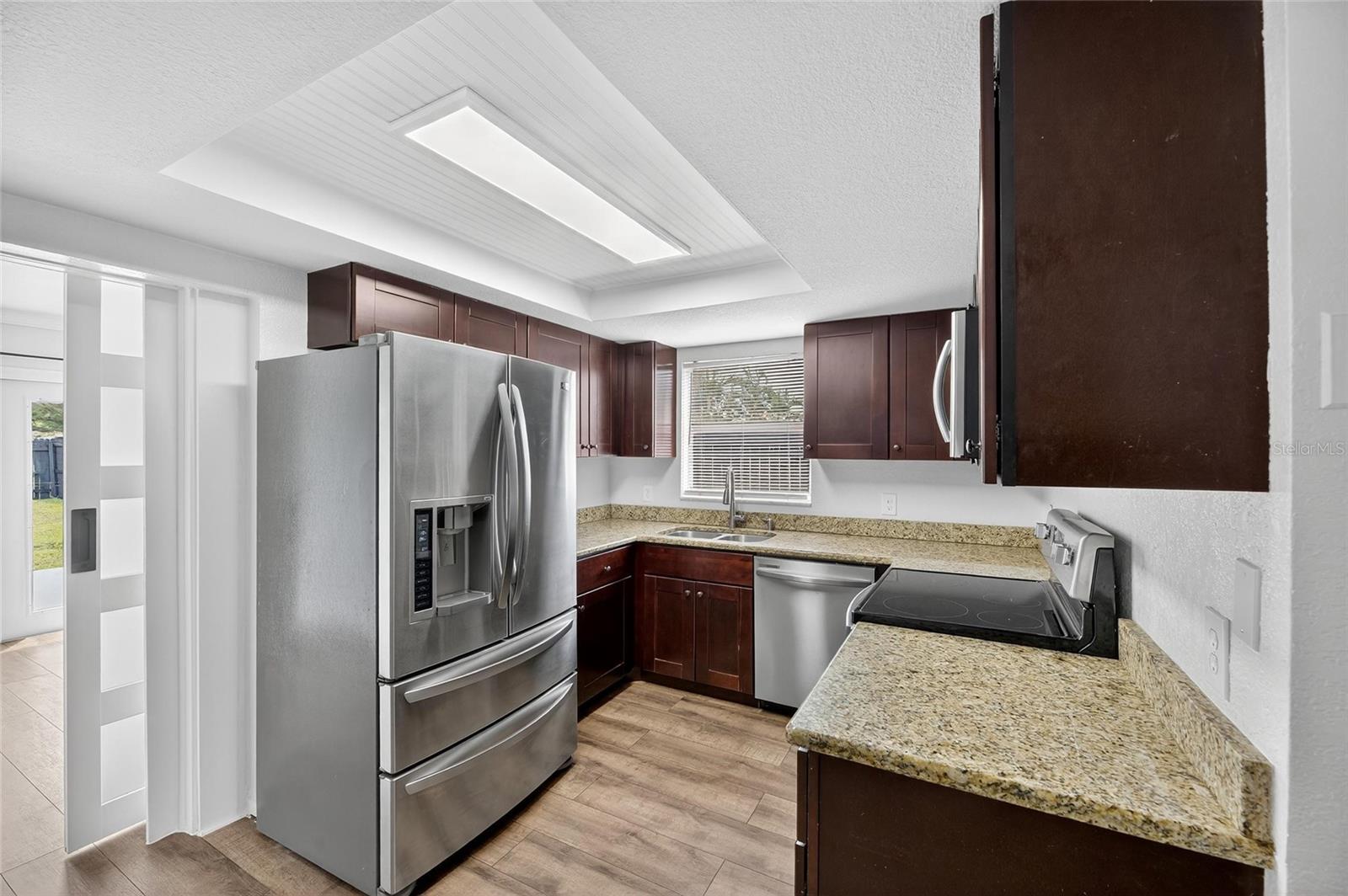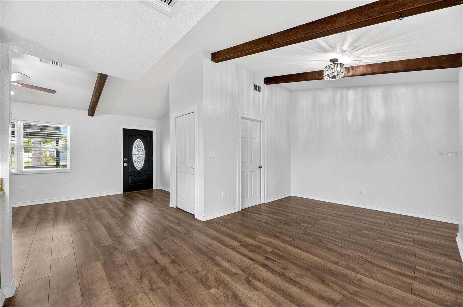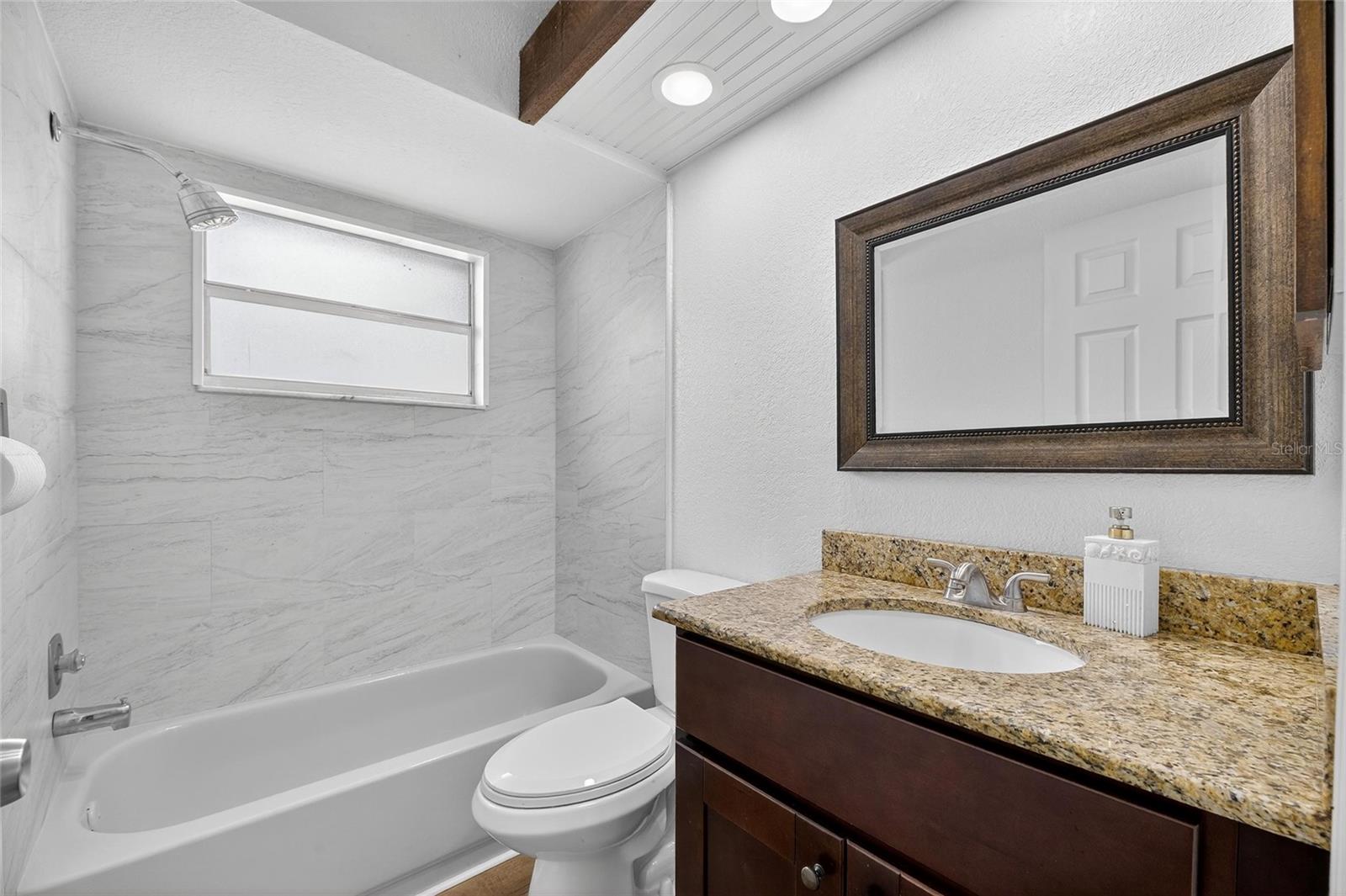 Looking for charm, space, and modern updates? You just found it! Welcome to this beautifully updated 3-bedroom, 2-bath block home with a 2-car garage, tucked away on a quiet cul-de-sac in the desirable Grand Arcade community of Pinellas Park. Inside, vaulted ceilings, crown molding, and fresh paint create a bright and inviting floor plan. The updated kitchen features granite countertops, and stainless steel appliances. The bonus room provides flexible space—perfect as a home office, guest area, or game room. (Currently not under central AC but easily adaptable if desired.) Key updates include a roof replaced in 2021, new laminate flooring, and updated bathrooms. Outside, the large fenced backyard is a true highlight—complete with no neighbors on the right side for added privacy and plenty of space to add a pool or design your own outdoor retreat. Conveniently located near shopping, dining, schools, and just a short drive to the Gulf beaches, this home is move-in ready and waiting for its next owner to enjoy the Florida lifestyle.
