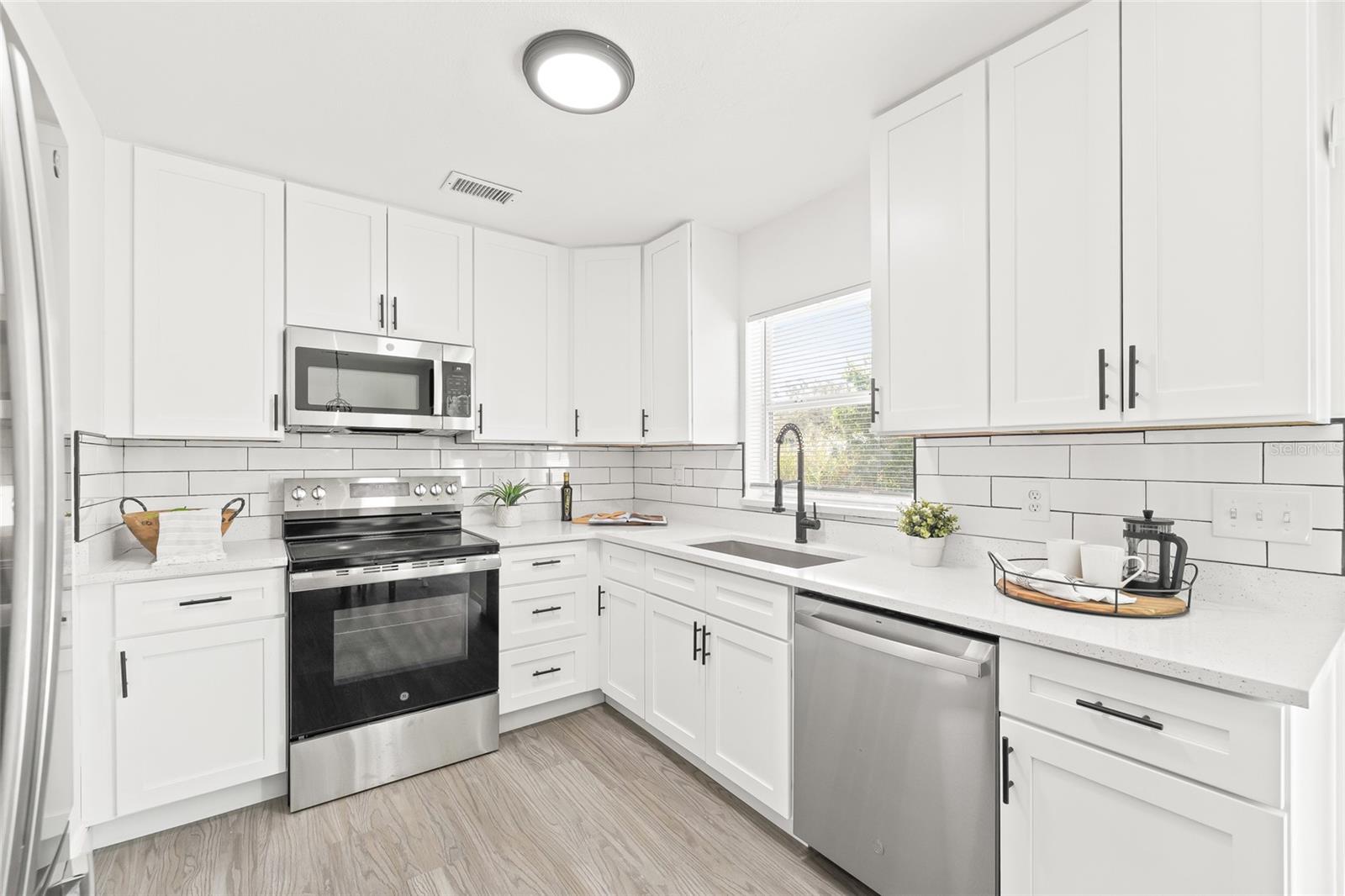 Welcome to this delightful 3-bedroom, 2-bathroom home in the heart of Pinellas Park, located in the desirable X500 flood zone—no flood insurance needed! As you walk up to this inviting home, you’re greeted by charming curb appeal and a cozy front entrance. Step inside to an open-concept floor plan where the living and dining areas flow seamlessly into the kitchen. The kitchen is equipped with stainless steel appliances, including a refrigerator, microwave, range, and dishwasher—perfect for entertaining or preparing everyday meals. You'll find two well-sized guest bedrooms and a full guest bathroom, offering comfort and flexibility for family, visitors, or a home office. The primary bedroom is filled with natural light and features an ensuite bathroom for added privacy. The one-car garage includes washer and dryer hookups and offers additional storage options. Step outside to a spacious, fully fenced backyard—ideal for hosting weekend BBQs, letting pets roam freely, or simply enjoying Florida’s beautiful weather. Enjoy peace of mind with key updates already done for you: roof (2019), HVAC (2022), and water heater (2025). All of this just 20 minutes to vibrant Downtown St. Petersburg, 25 minutes to the beautiful Gulf beaches, and close to shopping, dining, and major highways. Don’t miss your opportunity to own this move-in-ready gem in a fantastic central location!