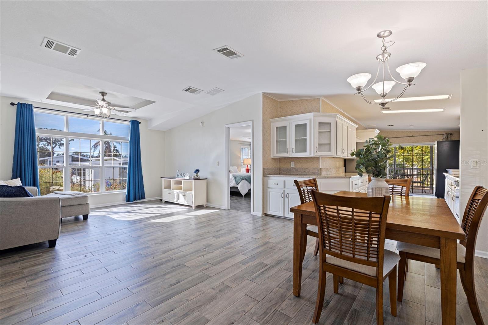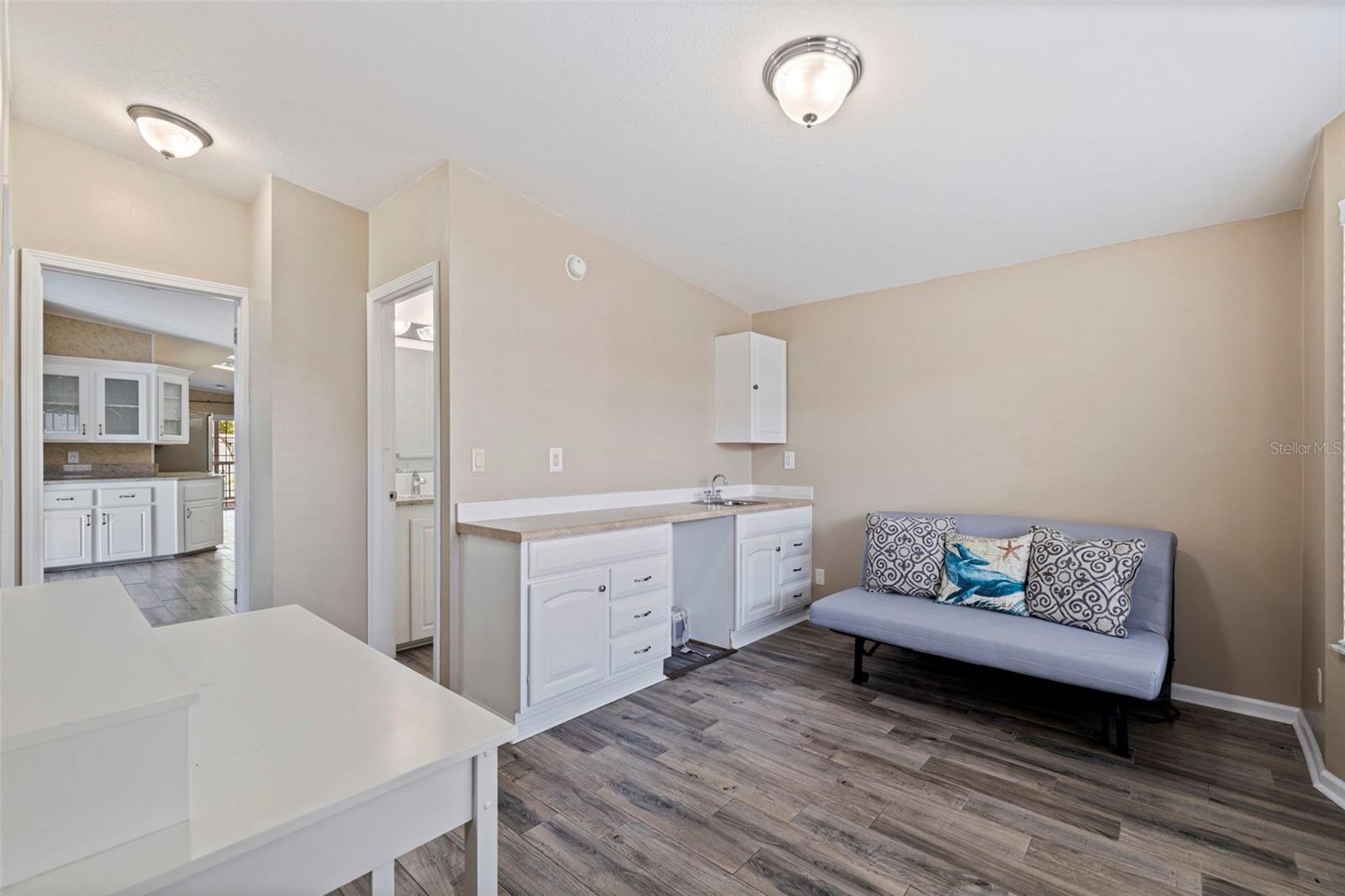 Double the lot = double the perks! Two pets welcome instead of one, extra parking, room for four residents, and a rare $110,000 in land-share value baked right in! Welcome home to one of the most unique finds in this vibrant 55+ resident-owned community! This spacious 2008 build sits on a coveted double lot with plenty of parking for guests and even your golf cart. Step inside and you’ll love the bright, open layout with high ceilings, modern flooring, and an updated kitchen complete with granite countertops, stainless steel appliances, a combo washer/dryer, and a built-in wine fridge ready for happy hour. The real showstopper is the private mother-in-law suite which is complete with its own entrance, full bath, and wet bar. This suite would be perfect for a caretaker, visiting family, or anyone wanting their own cozy retreat. The primary suite feels like a true getaway with three walk-in closets, a garden tub, separate shower, and access to the screened deck where morning coffee or evening breezes await. Enjoy peace of mind with a newer double roof (2023) and central air (2017), plus all the perks of maintenance-free living in a fun, 5-star community. Residents here enjoy resort-style amenities designed for both relaxation and fun! Take a dip in one of two heated pools (one for adults only), unwind in the indoor sauna or large hot tub, or stay active with water aerobics, fitness classes, and well-equipped exercise facilities. The community clubhouse offers a library stocked with books, games, puzzles, and videos, along with billiards, ping-pong, and lighted shuffleboard courts. There are also multi-sport courts with league play for shuffleboard, bocce ball, horseshoes, and even a golf practice area. With frequent dances, social clubs, an active volunteer network, and resident leagues for golf, bowling, and poker, there’s always something happening. The community is clean, safe, and beautifully maintained, with night safety patrols for added peace of mind, and this unit is located in an X flood zone which means no flood insurance is required! Conveniently located near US-19 for easy access to beaches, shopping, dining, golf, and medical care. Golf carts encouraged! CASH ONLY. Furniture conveys! Just bring your beach towel & flip flops. schedule a private showing, today!