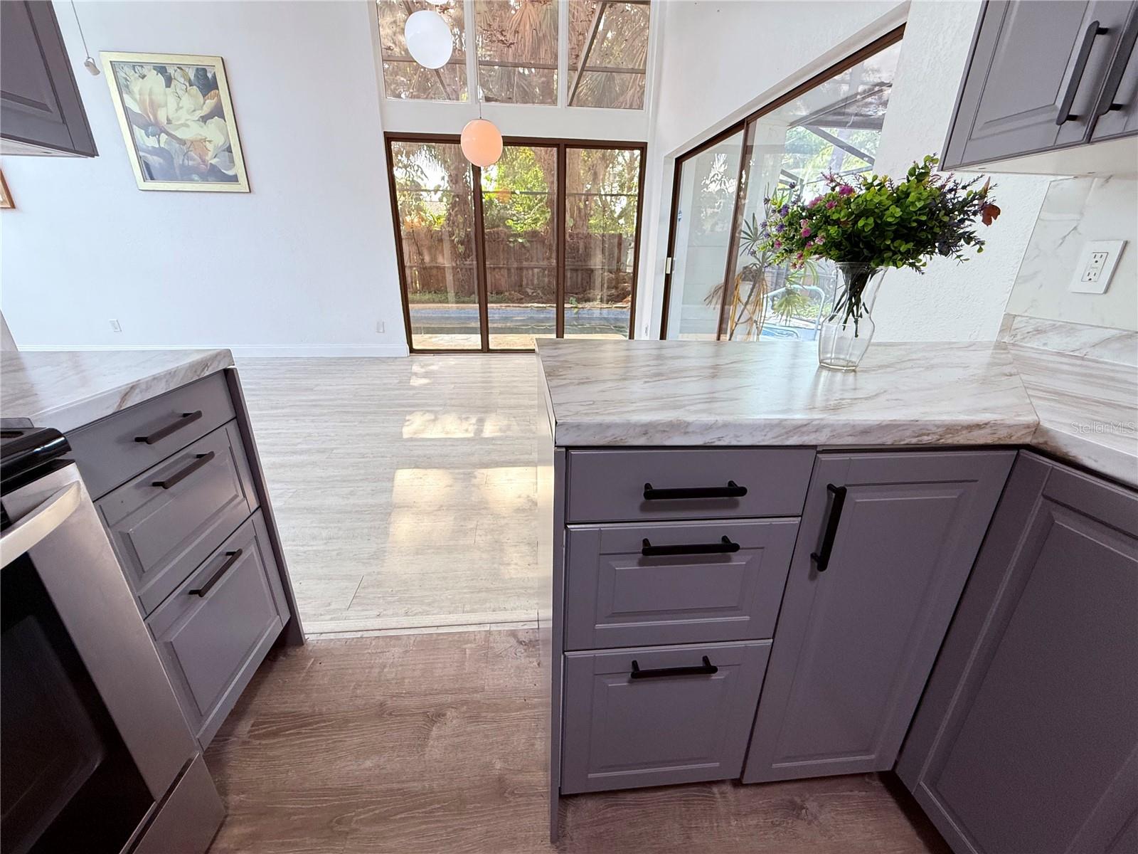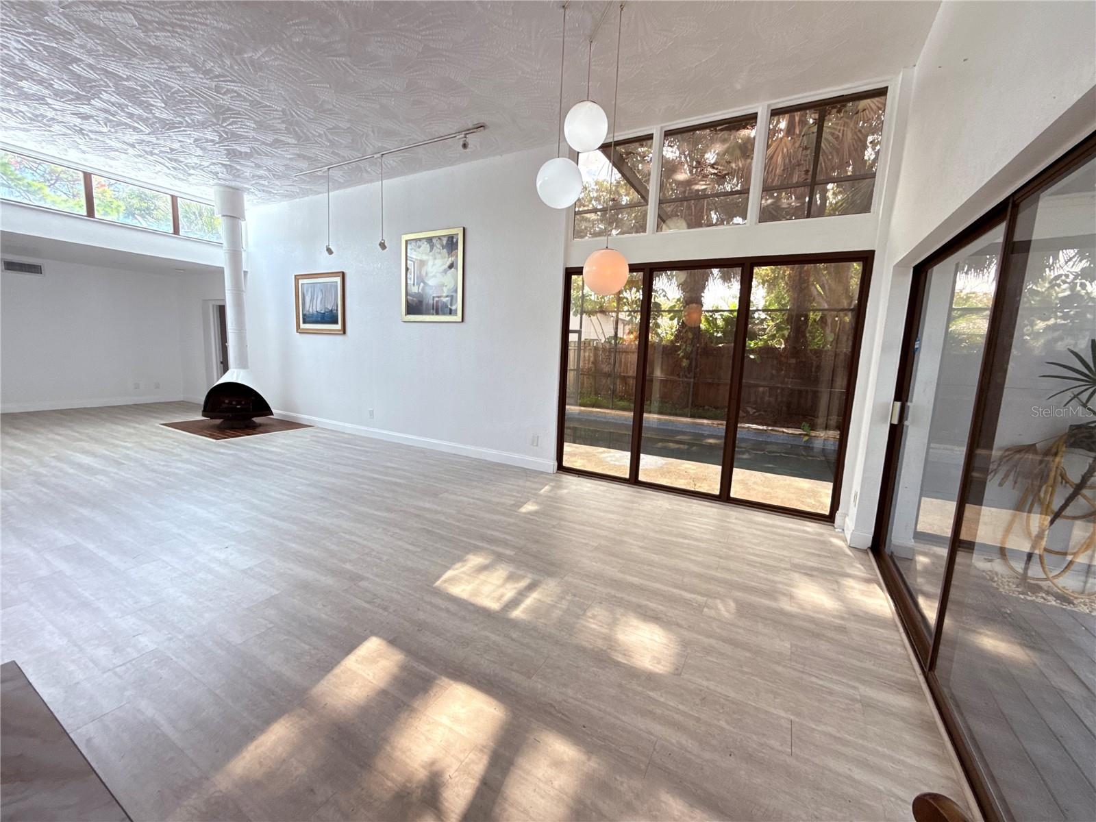 Step inside this Frank Lloyd Wright–inspired mid-century modern retreat and you instantly feel it! This home is unlike any other in Pinellas County. Tucked away on a fully fenced corner lot, this 5-bedroom (3 en-suite) 4-bath home has been thoughtfully designed and newly renovated while preserving the clean lines, and warm organic textures that define its iconic design. Frank Lloyd Wright–inspired homes are known for blurring the line between indoors and outdoors. This home has the 12-foot interior atrium, clerestory windows, long structural lines, and an organic flow that creates a perfect space for creativity and calm. At the center of the home- a dramatic 12-foot indoor atrium with stone-style walls and live trees, bringing natural light and greenery right into the heart of the house. Just beyond, a sprawling 37-foot living room showcases soaring ceilings, and a striking floor-to-ceiling fireplace that anchors the expansive living room. Frank Lloyd Wrights’ inspired clerestory windows, and dual sliding doors that open to the covered patio, pool, and deck, creating a seamless indoor–outdoor flow that’s perfect for everyday living and entertaining. Be it no surprise, this home was previously owned by a published author! This home’s design is known to have long served as a space for inspiration, creativity, and quiet retreat The fully remodeled kitchen features a sleek galley layout with modern cabinetry, solid-surface counters, and direct connection to the main living area, so you’re always part of the conversation. The layout is interestingly planned with: three true en-suite primary bedrooms which offer private retreats for multi-generational living, guests, or long-term visitors. Outside, the screened pool enclosure is wrapped in lush landscaping, palms, and privacy fencing, with plenty of room to lounge, grill, and study. A circular drive and mature trees give the home a striking mid-century presence from the street. Practical perks include luxury flooring throughout most of the home, modernized finishes, and the peace of mind of being high-and-dry in a non-flood zone, with the property reported as staying untouched through recent storms. Centrally located just off US-19, you’re minutes to shopping and dining, about 15 minutes to downtown St. Pete, and a short drive to the Gulf beaches - all while enjoying a one-of-a-kind architectural gem that feels like your own private sanctuary. You have been waiting for truly unique, this is the home!