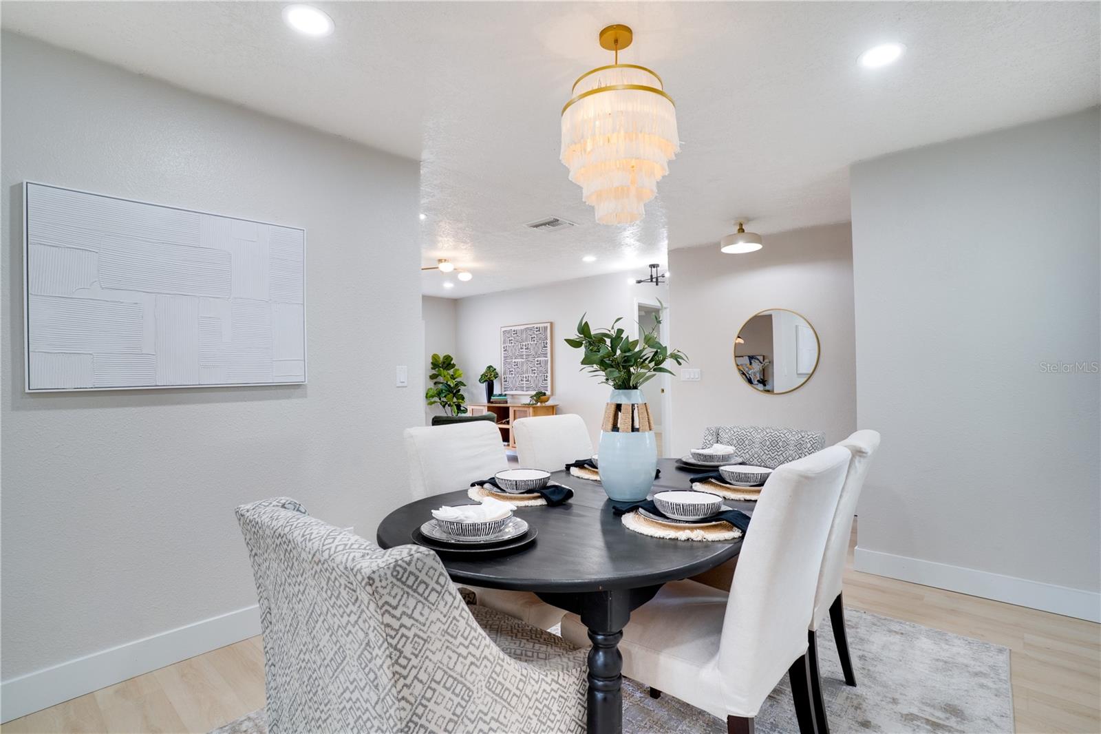 This beautifully finished 3-bedroom, 2-bath, 2-car garage single-family home in Pinellas Park offers a functional layout and stylish design throughout, featuring fresh interior and exterior paint, LVP flooring throughout, and modern bathrooms and kitchen. The spacious open-concept kitchen and dining area is a true centerpiece, showcasing stone countertops, stainless steel appliances, an eye-catching tile backsplash, recessed lighting, a peninsula with bar seating, and abundant cabinet and counter space. The split-bedroom floor plan provides added privacy, with the primary suite offering a walk-in closet and an en-suite bath complete with a tiled walk-in shower. An enclosed lanai overlooks the large backyard, perfect for relaxing or entertaining. Centrally located in the heart of Pinellas County, this home is close to parks, beaches, shopping, dining, entertainment, and downtown St. Petersburg. Schedule your private showing today and see everything this home has to offer.
