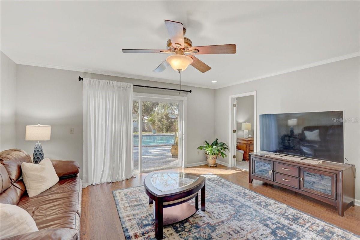 Exceptional Pool Home with all of the boxes checked! This beautifully maintained home sits on an oversized, private lot featuring a 32-ft boat/RV pad and a fully fenced backyard—perfect for both everyday enjoyment and entertaining. Recent improvements include a NEW ROOF (12/2025), AC system (10/2020), NEW kitchen appliances (2025), and new carpet in the bedrooms (2025), offering peace of mind for years to come. The inviting foyer opens to an open floor plan with Pergo flooring in the living room and front area of the home, creating a warm and welcoming space. The spacious custom kitchen features 42” maple cabinetry, pantry storage, and a generous eat-in dining area, making it ideal for hosting gatherings. The primary and guest baths have been refreshed with recent paint. Energy-efficient windows and a sliding glass door leads to the pool and huge backyard, where you’ll love entertaining family and friends. The pool area offers plenty of room for seating and relaxation, complemented by modern pavers and privacy fencing—your own private backyard retreat. Additional highlights include an oversized two-car garage plus a detached 10x15 shed/workshop on its own foundation with electric, ideal for hobbies, storage, or a home workshop. Convenient location close to shopping, beautiful Gulf beaches, and perfect for commuting to work or play! Call for a tour today