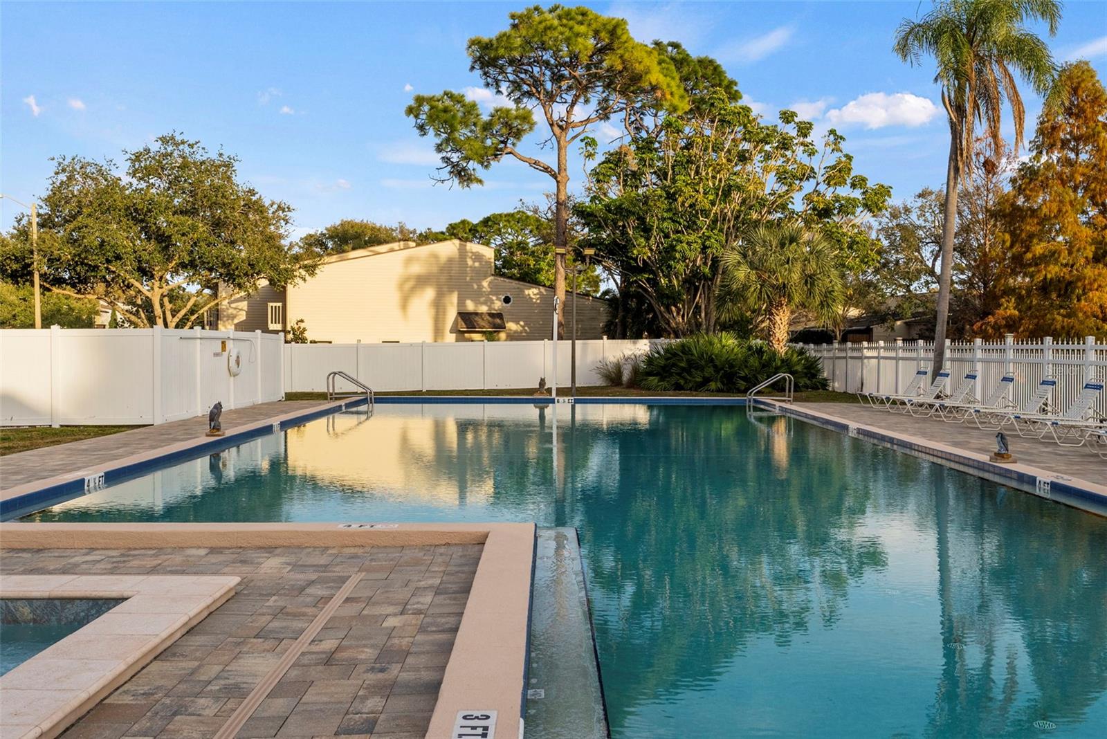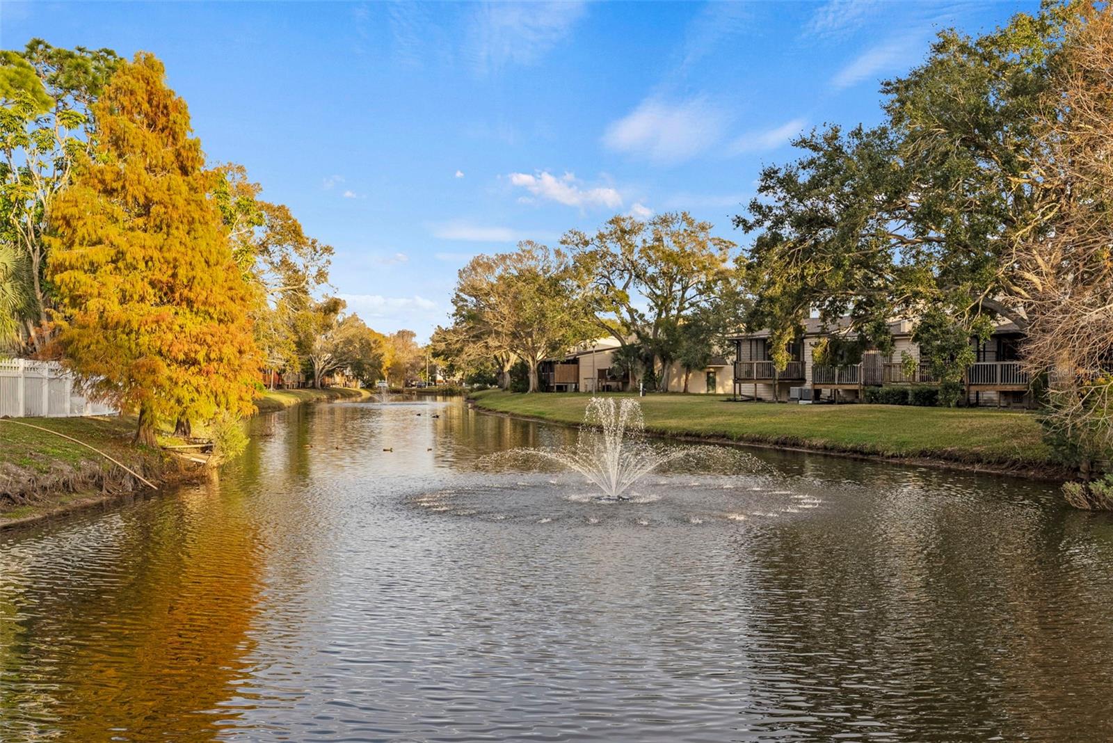 Supremely and centrally located in Pinellas County - whether heading to the beaches or downtown St. Pete, this 3 bedroom, 2 bath, 2 car garage is a RARE FIND under $300K! At 1620 SF of interior living space PLUS a fabulous screened porch overlooking neighborhood pond with water fountains and lovely mature landscaping, this home feels even more roomy - especially with the vaulted ceilings. Tri-level floor plan is very comfortable, open and functional - from first level foyer, large utility / laundry room and 2 car garage, to second level open kitchen / family room (with pretty walk out screened porch), to third level with generous primary suite and two large secondary bedrooms that include balconies and a shared second bathroom. Kitchen is nicely updated with newer and abundant cabinetry and granite countertops. Community is pet friendly and primary resident focused - must own for 2 years prior to being able to lease. Beautiful pool and neighborhood pond, lots of sidewalks.. a lovely neighborhood to call HOME!